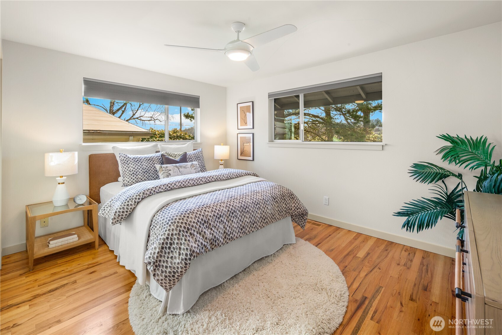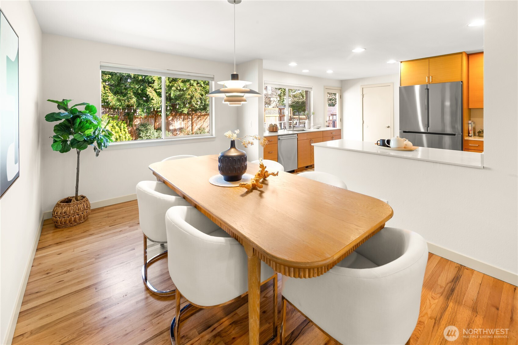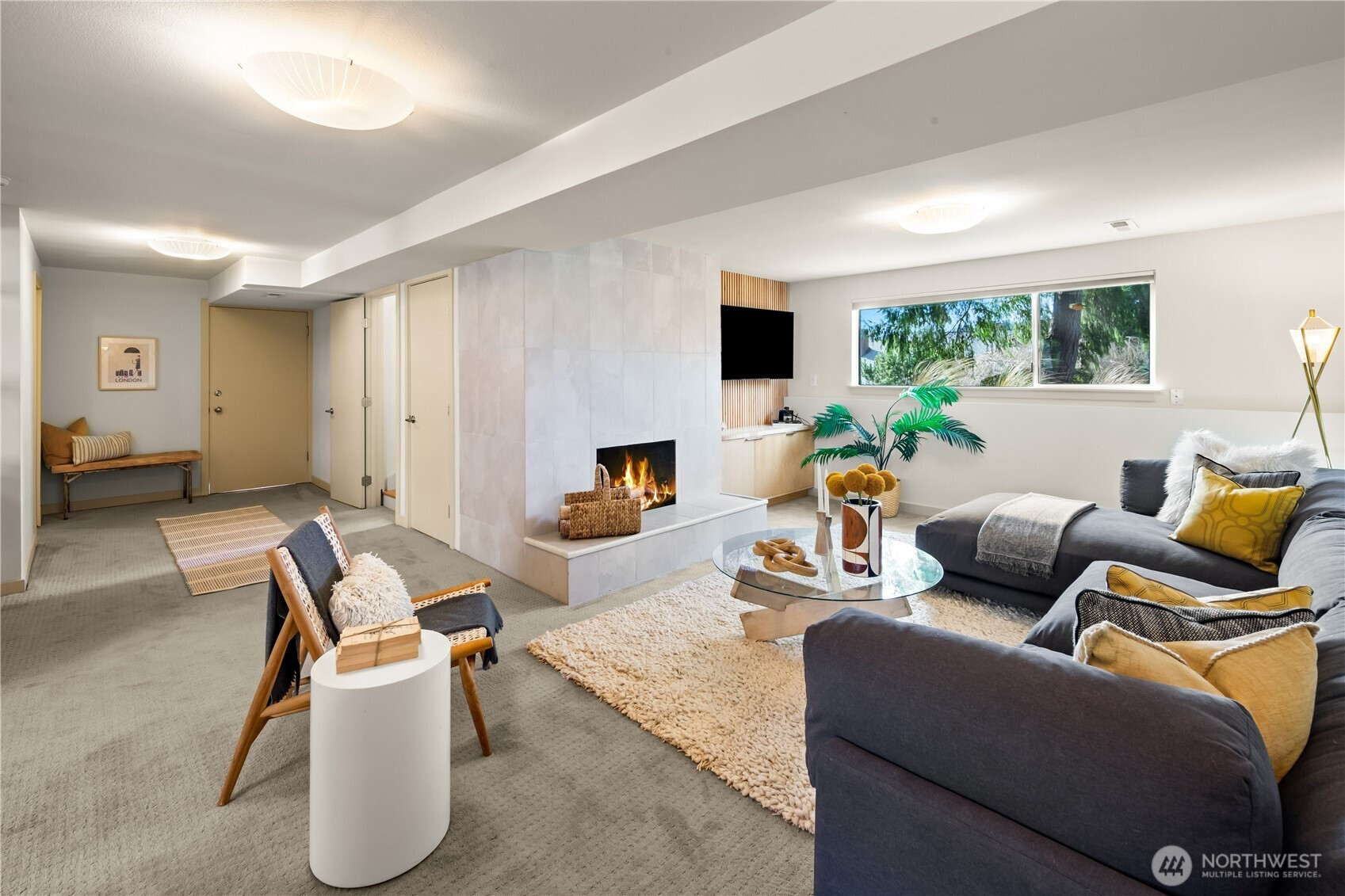 Up a new driveway and tucked behind mature landscaping, this Mid-Century modern home makes a stylish first impression before you even step inside. A dramatic, light-filled split-level entry opens to welcoming living spaces, where hardwood floors, a West-facing picture window, and an original stone fireplace create a focal point for gathering or unwinding. A flowing layout winds through the kitchen, tastefully updated with modern flat-panel cabinetry, new stainless-steel Bosch appliances, and a walk-in pantry, and leads to three bedrooms with generous windows and two updated baths, including ensuite in the primary. Out back, the newly renovated yard features a spacious Timbertech deck, patio, garden shed, and a fenced yard with Dreamturf for making the most of PNW outdoor living. The lower-level features full-size windows and was custom-built for remote work and bonus living/guest quarters, featuring a large flex room with a built-in desk and custom, solid maple storage by local company Creoworks, plus a full bathroom with laundry and direct access to the attached garage. With an oversized 2-car garage, Tesla charger, and room to live comfortably across both levels, this home offers a compelling blend of thoughtful design and functionality, along with easy access to both urban amenities and multiple nearby parks, playgrounds, dog parks, and the beach. Near local favorites like Olympia Coffee, Mioposto, and Bright Spot Cafe. A must see!