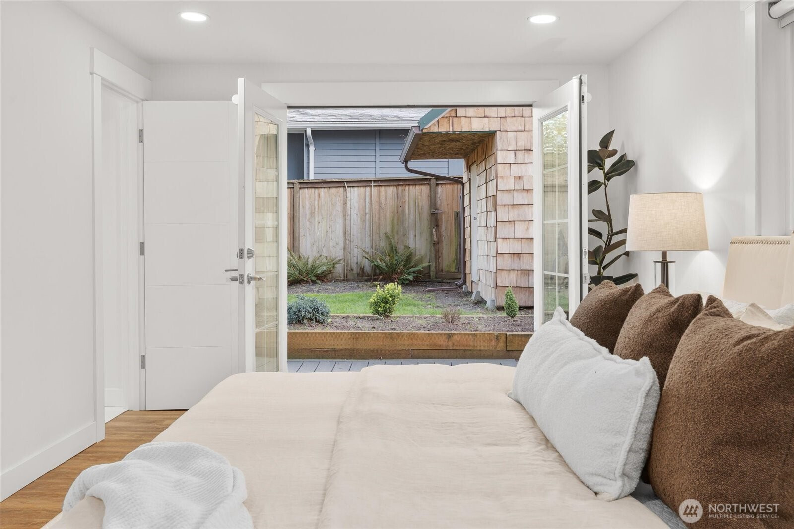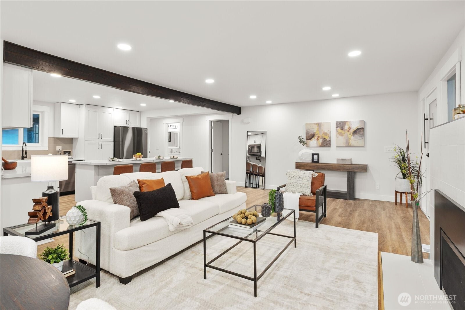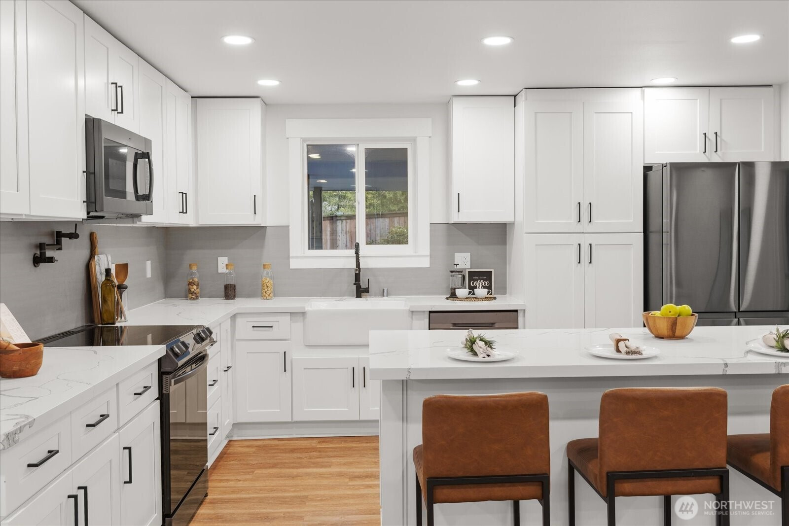 Tucked into the quiet Meadowbrook neighborhood, this fully updated rambler offers refined one-level living with a layout that lives large. The spacious great room flows seamlessly from the open kitchen, while a cozy gas fireplace anchors the living area. The sleek kitchen pairs black stainless steel appliances with a generous quartz island offering breakfast bar seating, all complemented by abundant cabinetry. Stylish new flooring gives the home a clean, modern feel. The three bedrooms are well-positioned throughout the home, offering privacy and room to unwind. The spacious primary suite, with French doors leading out to a wrap-around Trex deck, is the perfect spot for morning coffee. The beautiful bathrooms are elevated with designer tilework and oversized rain showerheads, creating a spa-like experience. Outside, the fully fenced yard offers plenty of space to play, garden, or relax. From summer BBQs on the expansive deck to cozy evenings around the fire pit, this outdoor space is made to be enjoyed year-round. Upgrades include custom closet systems throughout the home, EV Charger, a low-maintenance metal roof and 2 large sheds offering plenty of storage. Enjoy peaceful walks around the 10-acre Meadowbrook Pond just across the street, your own serene escape right in the city.