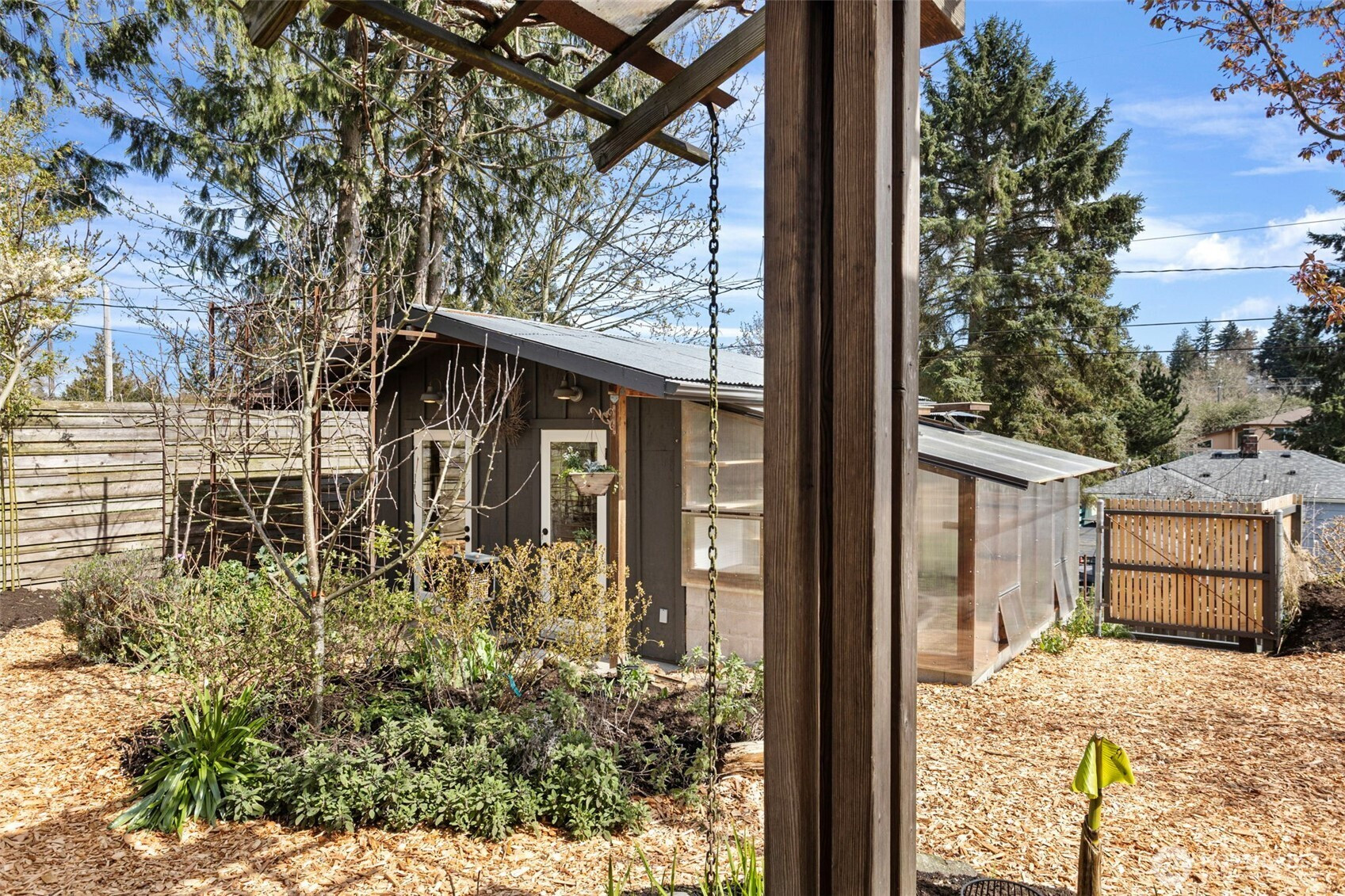 Welcome to your urban oasis nestled in the Genesee neighborhood of West Seattle. This thoughtfully designed home allows you to enjoy tranquil spaces by integrating the interior and exterior with ease and great flow. Open concept chef's kitchen has large counter space with bar seating and beautiful tile work. Custom metal and woodwork shelving and built-ins throughout home provide excellent storage and use of space. Bathroom has large soaking tub and modern tiles. Fresh interior and exterior paint, refinished hardwoods and double pane windows. French doors open to your large covered deck, perfect for entertaining and enjoying year round. Private and lush garden with fruit trees, herb garden and ornamental plantings. Separate studio space provides flexibility as a guest room or home office. Greenhouse with calibrated venting is a gardener's dream. Detached 1 car garage with alley access. Heat pump w/AC for added comfort. Close proximity to WS amenities, parks, schools, and transit. This home is truly special and a rare opportunity to own this custom gem. Stop by today!