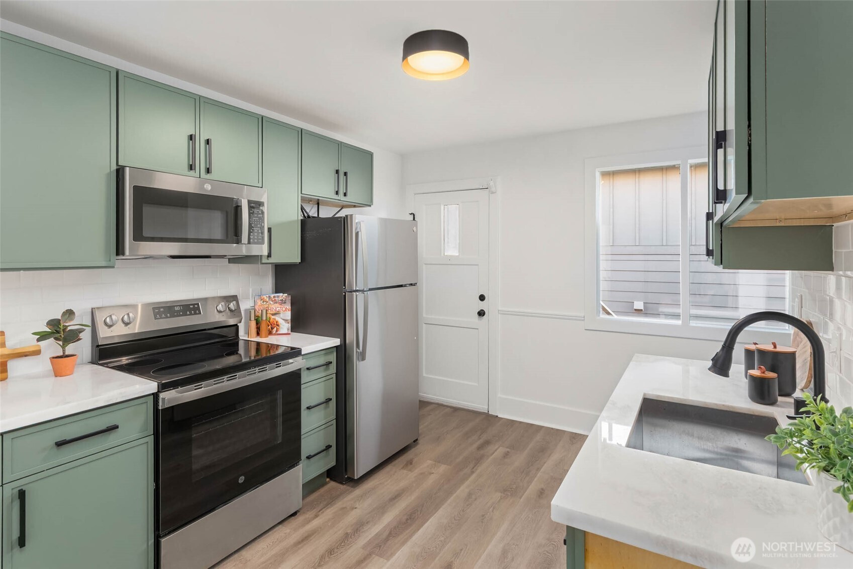 Classic brick English cottage in the heart of Brighton. Full of charm and character, this beautifully updated home blends timeless details with modern style. The remodeled kitchen shines with quartz counters and stainless appliances, opening to a cozy dining room and separate living area. Main floor features a bedroom and bath with original vintage touches and a spacious walk-in closet. Upstairs offers an additional bedroom and flex space with built-ins. Wonderful ADU opportunity with the unfinished daylight basement that has a separate entrance, a 3/4 bathroom, a bedroom, work shop and laundry area. Enjoy off-street tandem parking and a location just minutes to light rail, parks, and shopping!