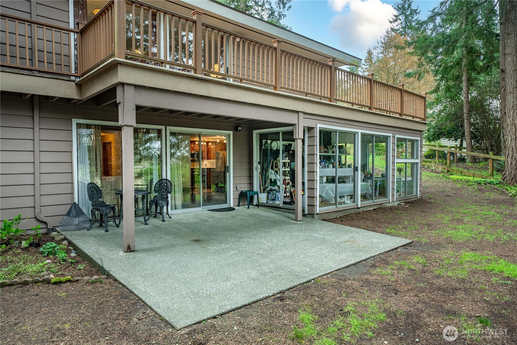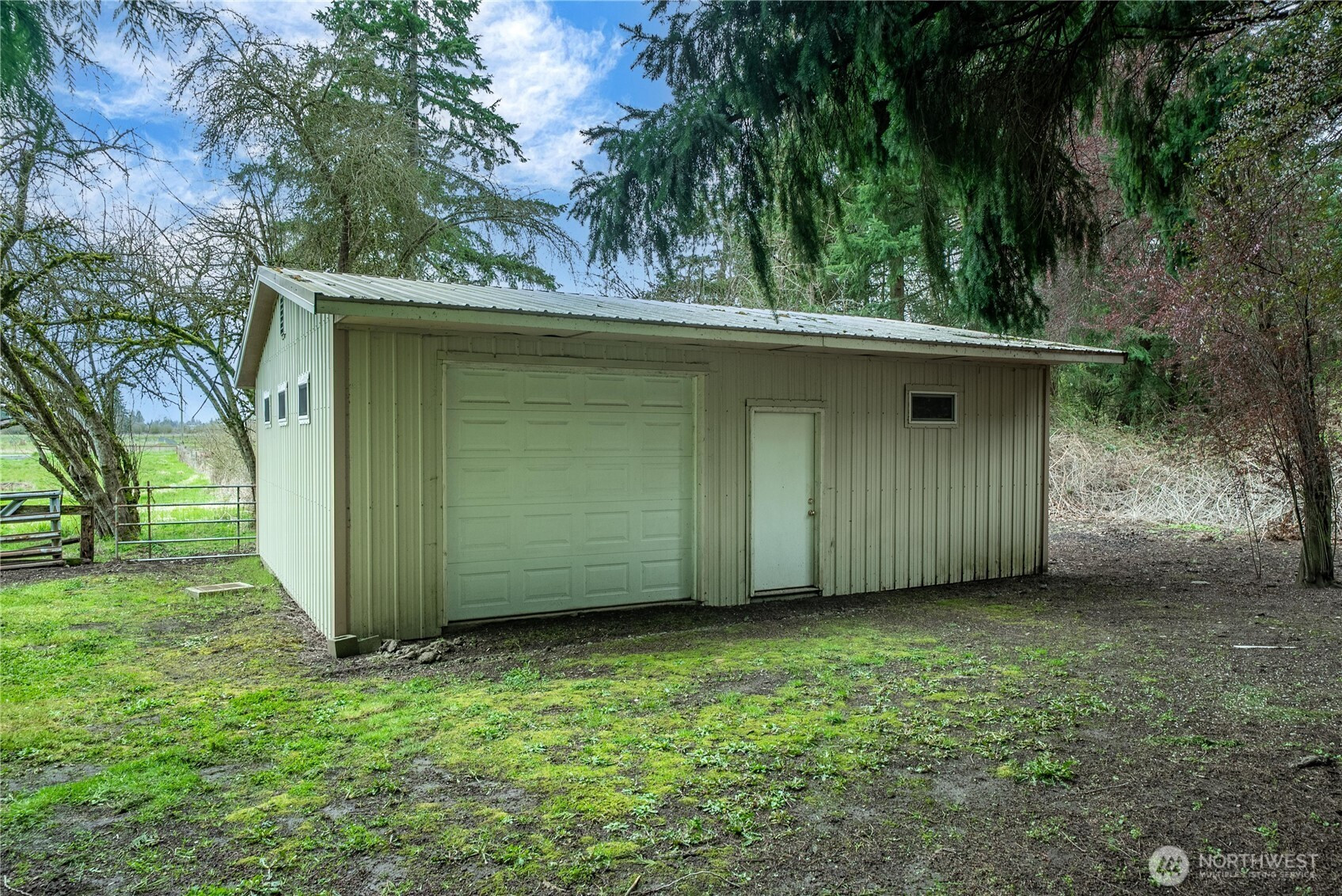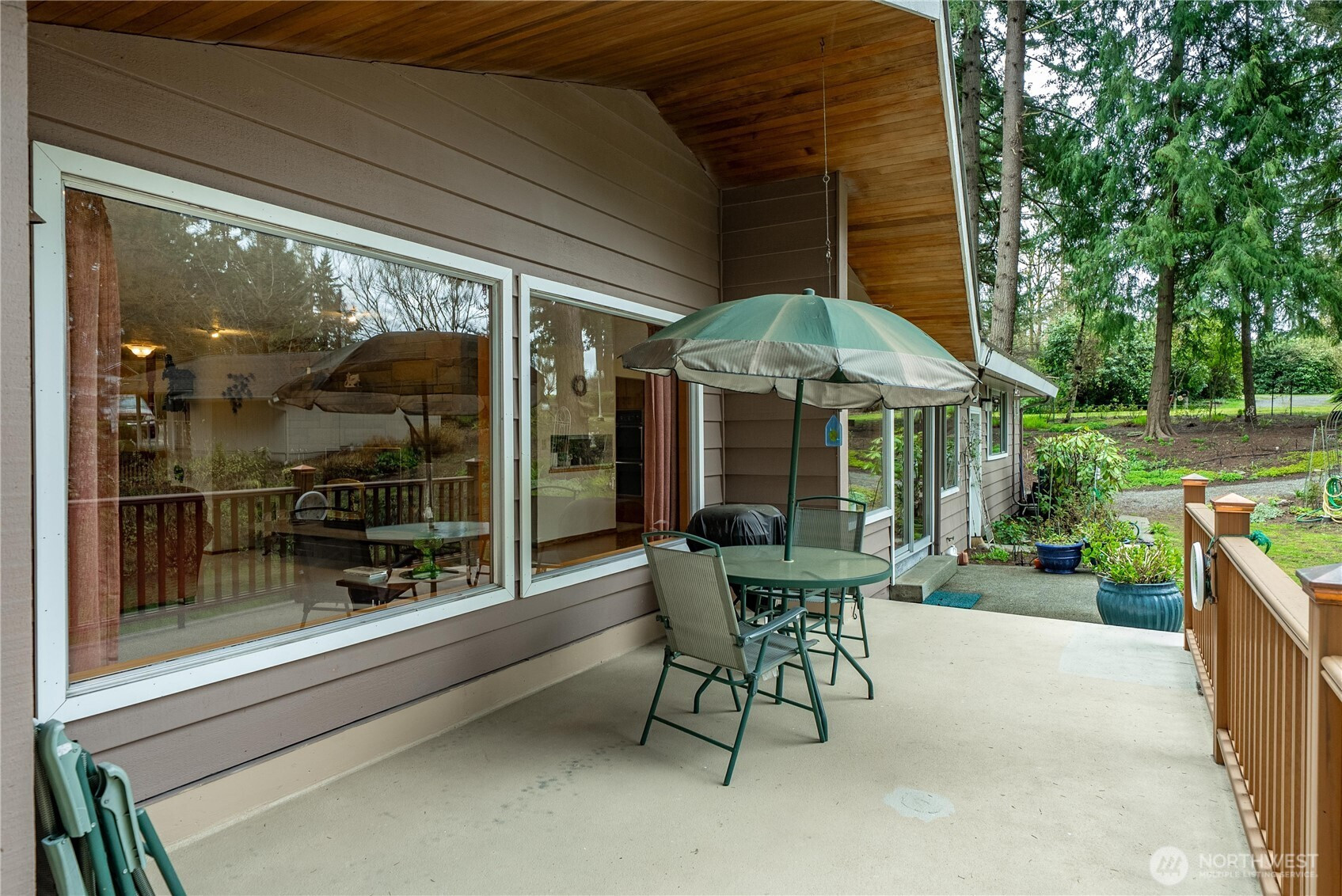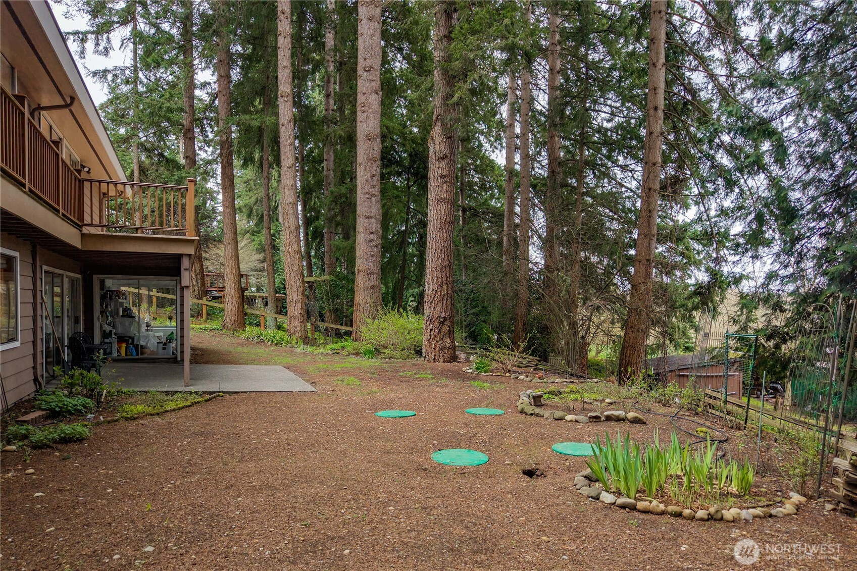 Welcome to this well-built 3,440 sqft, 5 bedroom rambler with a fully furnished daylight basement, ideally located on a quiet dead-end street and set on a shy 1-acre (.96 acre) private retreat. A circular driveway welcomes you to a slate entry, opening into an expansive living and dining area anchored by a cozy wood-burning fireplace. The main level features a well-appointed kitchen with granite countertops, along with 3 bedrooms and 1.5 baths. The lower level offers excellent potential for separate living quarters, complete with a full kitchen with granite counters, new stainless steel appliances and breakfast bar, spacious living room with wood fireplace insert, dining area, full bath, 2 additional bedrooms, and a versatile finished bonus room - perfect for multi-generational living or flexible space. Enjoy brand new propane radiant hot water heat throughout, plus peace of mind with a whole-home generator. The exterior was freshly painted just 3 years ago, enhancing both curb appeal and longevity. Step outside to a wrap-around deck and attached greenhouse for year-round enjoyment. The grounds are truly special, featuring fruit trees, roses, lush gardens, and majestic mature trees. Additional highlights include a 3-stall barn, 24X22 detached shop, utility shed, and a brand new 5-bedroom septic system. A rare combination of space, function, and serene setting--this property has it all.