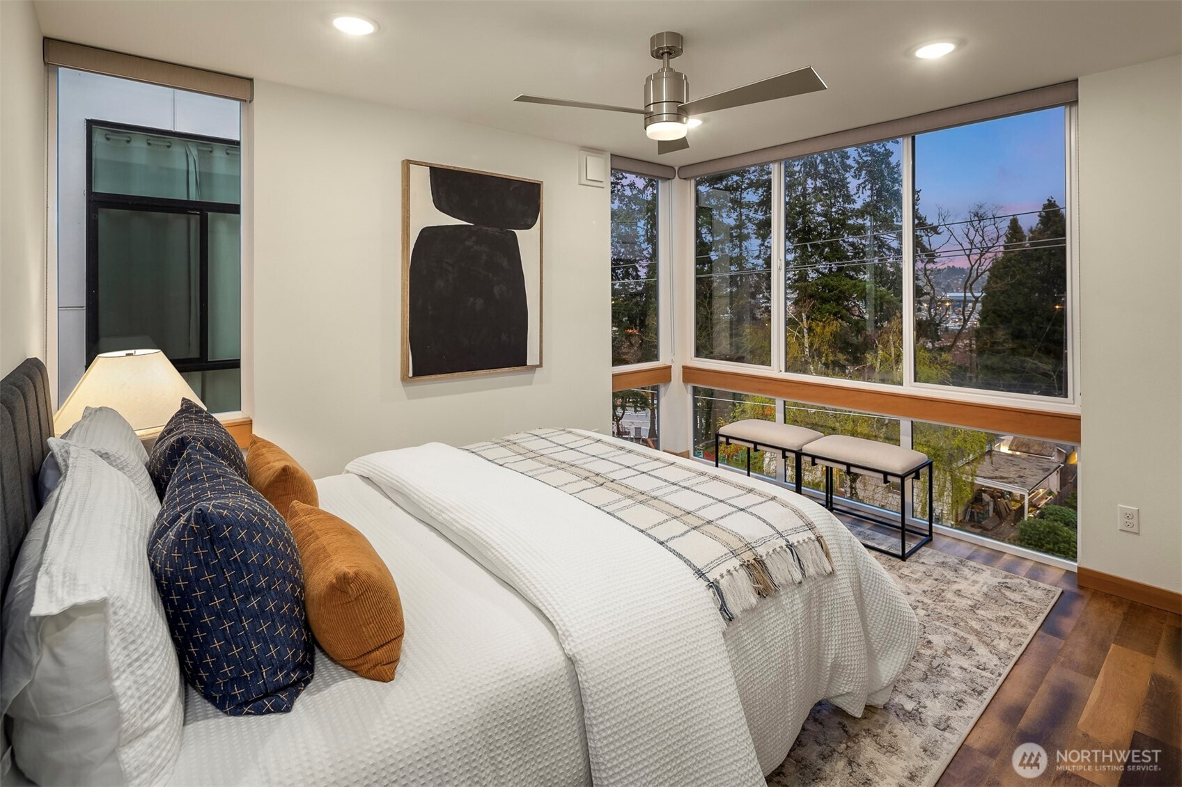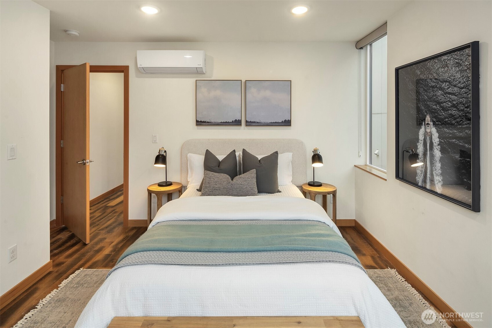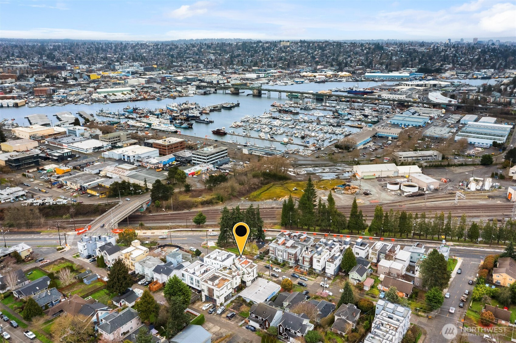 Beautifully crafted Magnolia end-unit townhome offers a rare blend of modern design, thoughtful upgrades, & exceptional outdoor living. This home delivers both style & efficiency in one of Seattle’s most beloved neighborhoods. The main level features a sleek open kitchen & living space, designed for easy entertaining & everyday comfort. A private, fully enclosed backyard creates a charming urban oasis. Imagine café lights overhead, dinner on the table, with plenty of space for pets or gardening. A convenient outdoor cubby adds practical functionality for extra storage. Upstairs, the home unfolds across two well-designed levels. The first bedroom enjoys beautiful natural light, lovely views + a full bath, while the primary suite offers a spa-inspired experience with a custom luxury shower and flexible space for a desk or reading nook. At the top, a private rooftop deck with Ballard views & propane hookup provides the perfect setting for sunset gatherings, grilling, or relaxing under the Seattle sky. Thoughtfully enhanced by the current owners, the home includes $25k in additional sound dampening for the main living area, creating a noticeably quieter and more private environment. A Lunos ductless heat recovery ventilation system, heated flooring and mini-splits, provide continuous fresh air, superior indoor air quality, & energy-efficient comfort year-round. Complete with off-street parking, this exceptional Magnolia home pairs sophisticated design with everyday livability.