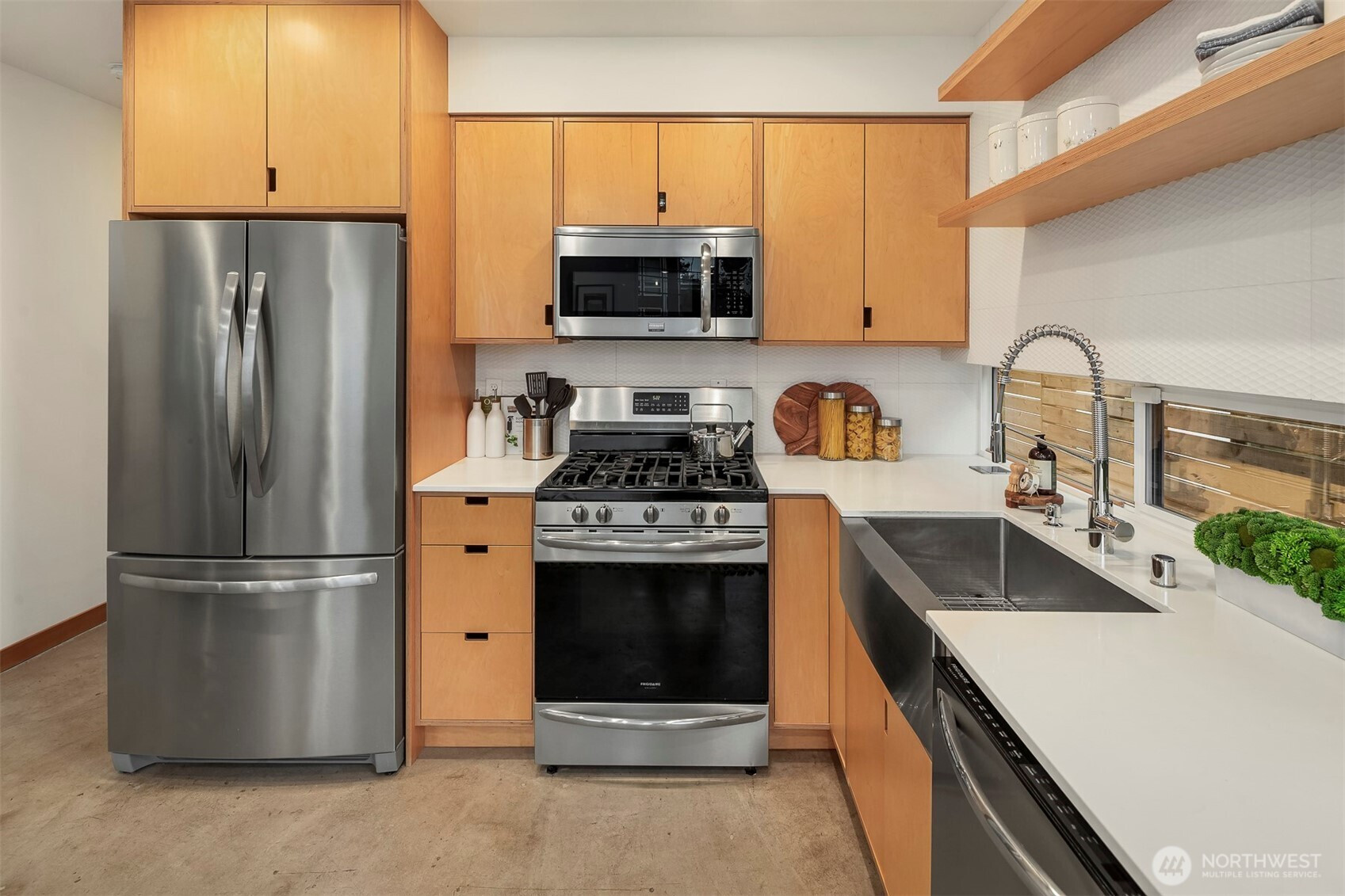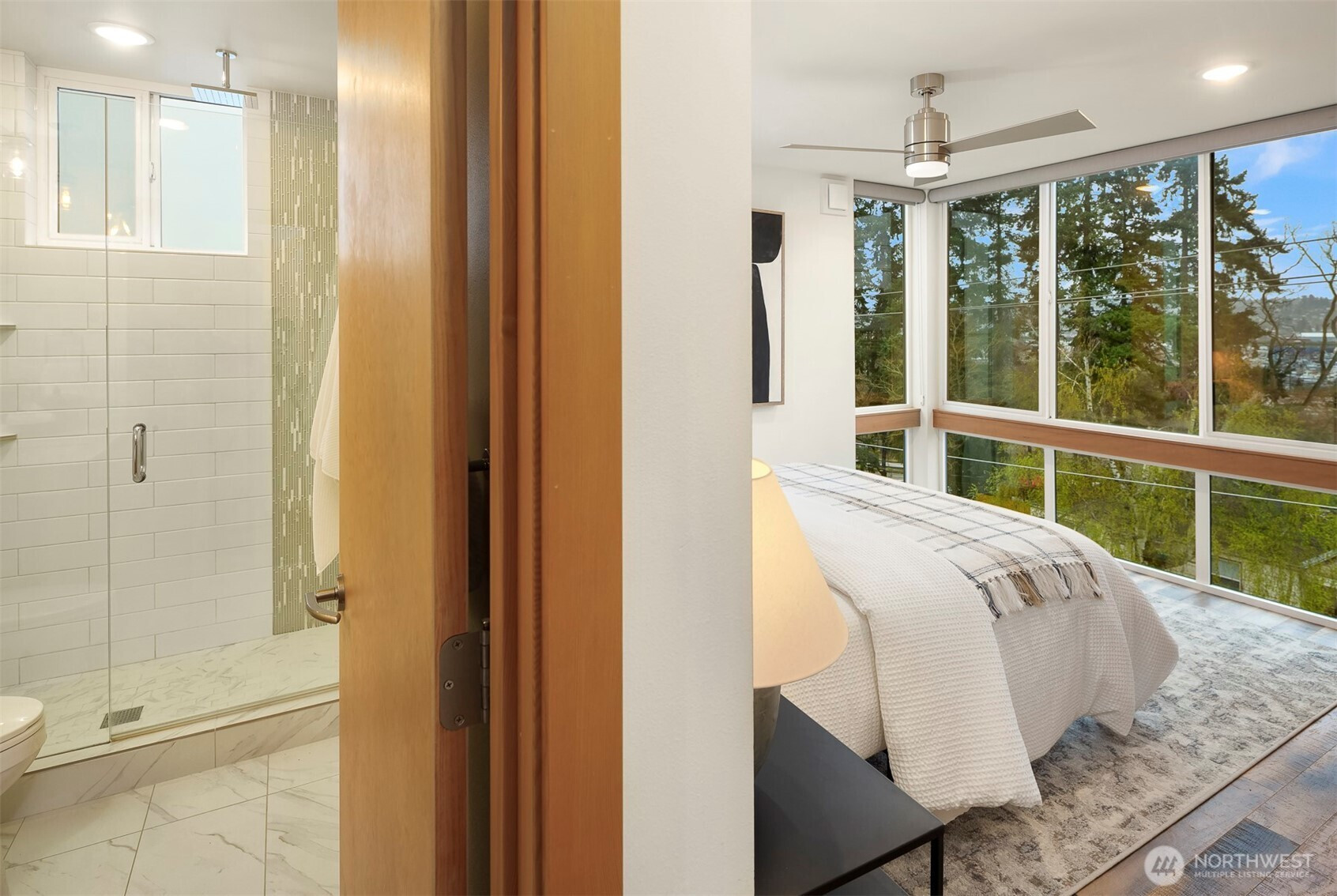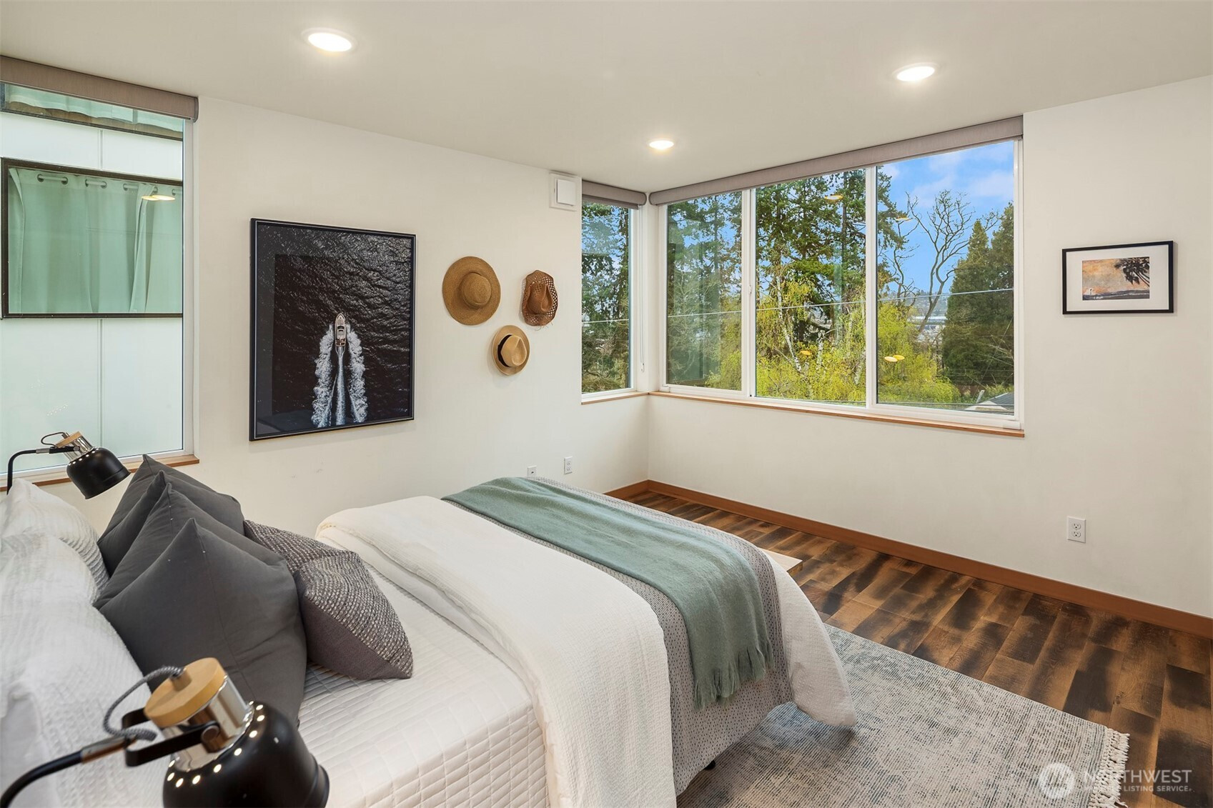 Beautifully crafted Magnolia end-unit townhome offers a rare blend of modern design, thoughtful upgrades, & exceptional outdoor living. This home delivers both style & efficiency in one of Seattle’s most beloved neighborhoods. The main level features a sleek open kitchen & living space, designed for easy entertaining & everyday comfort. A private, fully enclosed backyard creates a charming urban oasis. Imagine café lights overhead, dinner on the table, with plenty of space for pets or gardening. A convenient outdoor cubby adds practical functionality for extra storage. Upstairs, the home unfolds across two well-designed levels. The first bedroom enjoys beautiful natural light, lovely views + a full bath, while the primary suite offers a spa-inspired experience with a custom luxury shower and flexible space for a desk or reading nook. At the top, a private rooftop deck with Ballard views & propane hookup provides the perfect setting for sunset gatherings, grilling, or relaxing under the Seattle sky. Thoughtfully enhanced by the current owners, the home includes $25k in additional sound dampening for the main living area, creating a noticeably quieter and more private environment. A Lunos ductless heat recovery ventilation system, heated flooring and mini-splits, provide continuous fresh air, superior indoor air quality, & energy-efficient comfort year-round. Complete with off-street parking, this exceptional Magnolia home pairs sophisticated design with everyday livability.