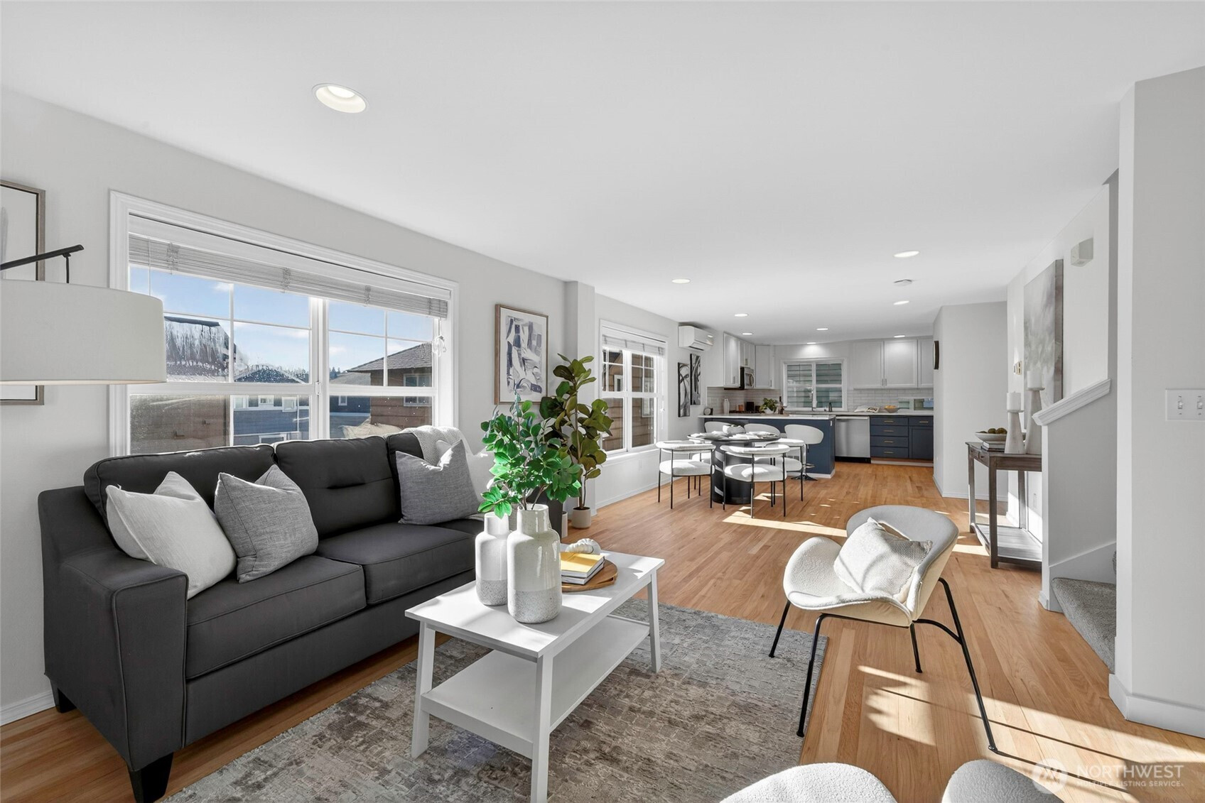 Tucked away on a quiet, tree-lined street, this beautifully maintained 3 bed 2.25 bath 1560sqft home offers comfort, light, and an easy Pacific Northwest lifestyle. Inside, open living spaces are filled with natural light creating a welcoming place to gather. The dining area flows effortlessly into a thoughtfully designed kitchen, perfect for everyday meals or entertaining friends. The spacious primary suite features a walk-in closet and lovely views of downtown Seattle. An attached garage provides convenient storage for bikes, gear, and weekend adventures. Step outside to nearby shopping, dining, Green Lake, Gas Works Park, bike trails, and major tech employers—everything you need is close at hand. Pre-Inspected with sewer scope. A home that truly feels good to come home to.