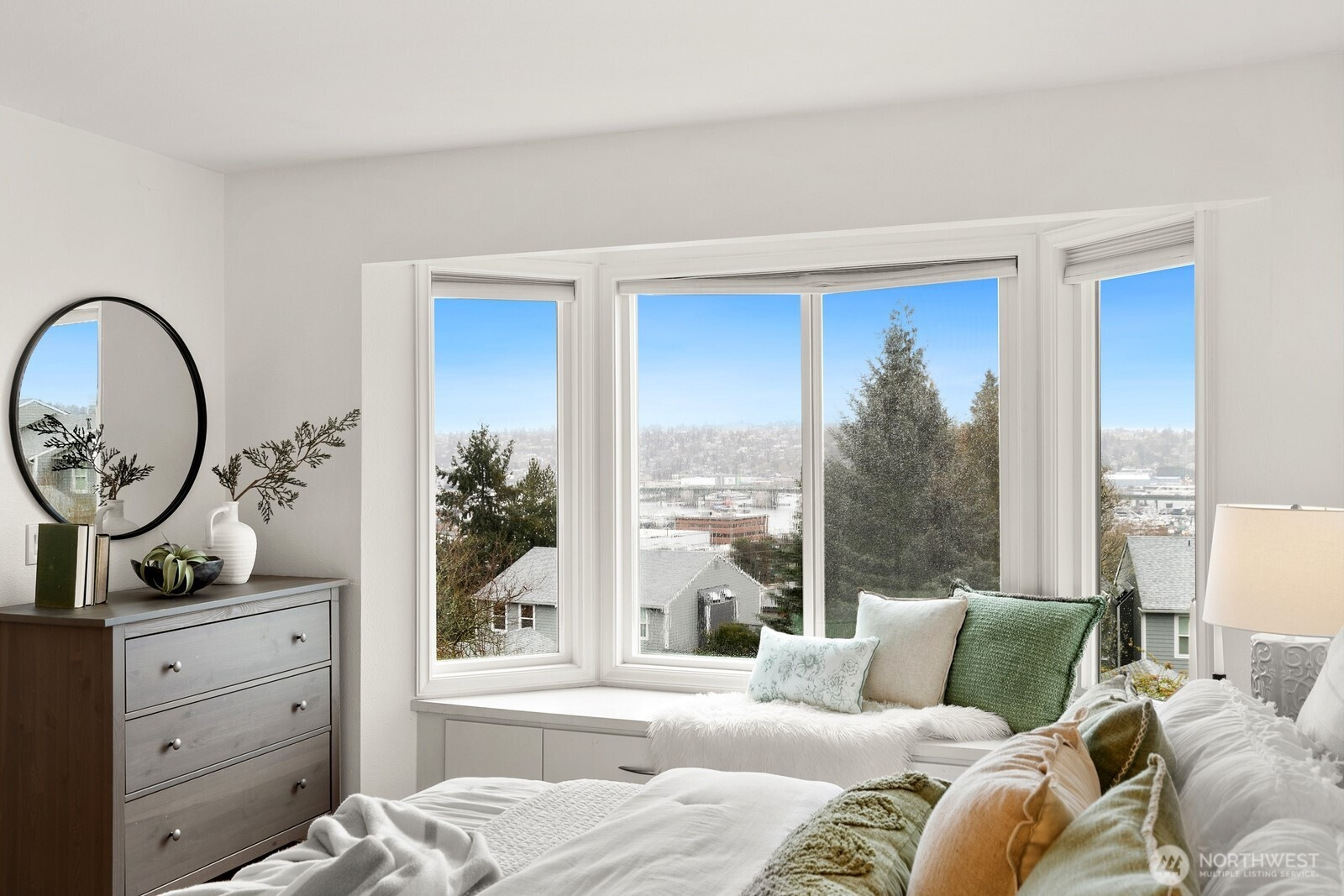 Gorgeous View Townhome in Magnolia! Imagine starting every morning with a front-row seat to the sunrise over Salmon Bay and the Ballard Bridge, with the Cascades painting the horizon. Tucked away on a quiet dead-end street, this east-facing retreat offers rare privacy and sweeping views from nearly every window. The top floor features a unique circular layout that maximizes natural light, leading to bright bedrooms including a serene primary suite with walk in closet. Whether you’re hosting summer BBQs on the private patio off the kitchen or exploring Fisherman’s Terminal and Lawton Park just steps away, this home perfectly balances tranquility with easy access to restaurants and activities. Just down the street is trail access from the cul-de-sac leading to Lawton Elementary School and the dog park. There are plenty of take out places within blocks and easy bus access to downtown but if you prefer to drive there is an attached private garage. Bonus: A flexible ground-floor suite with an attached bath offers endless possibilities for a home office, guest space, etc.