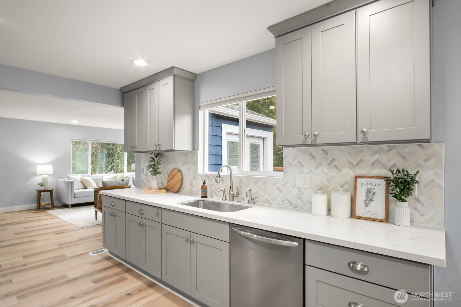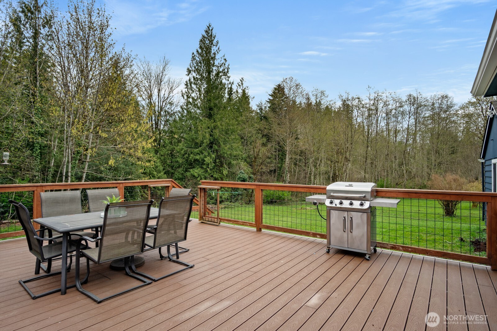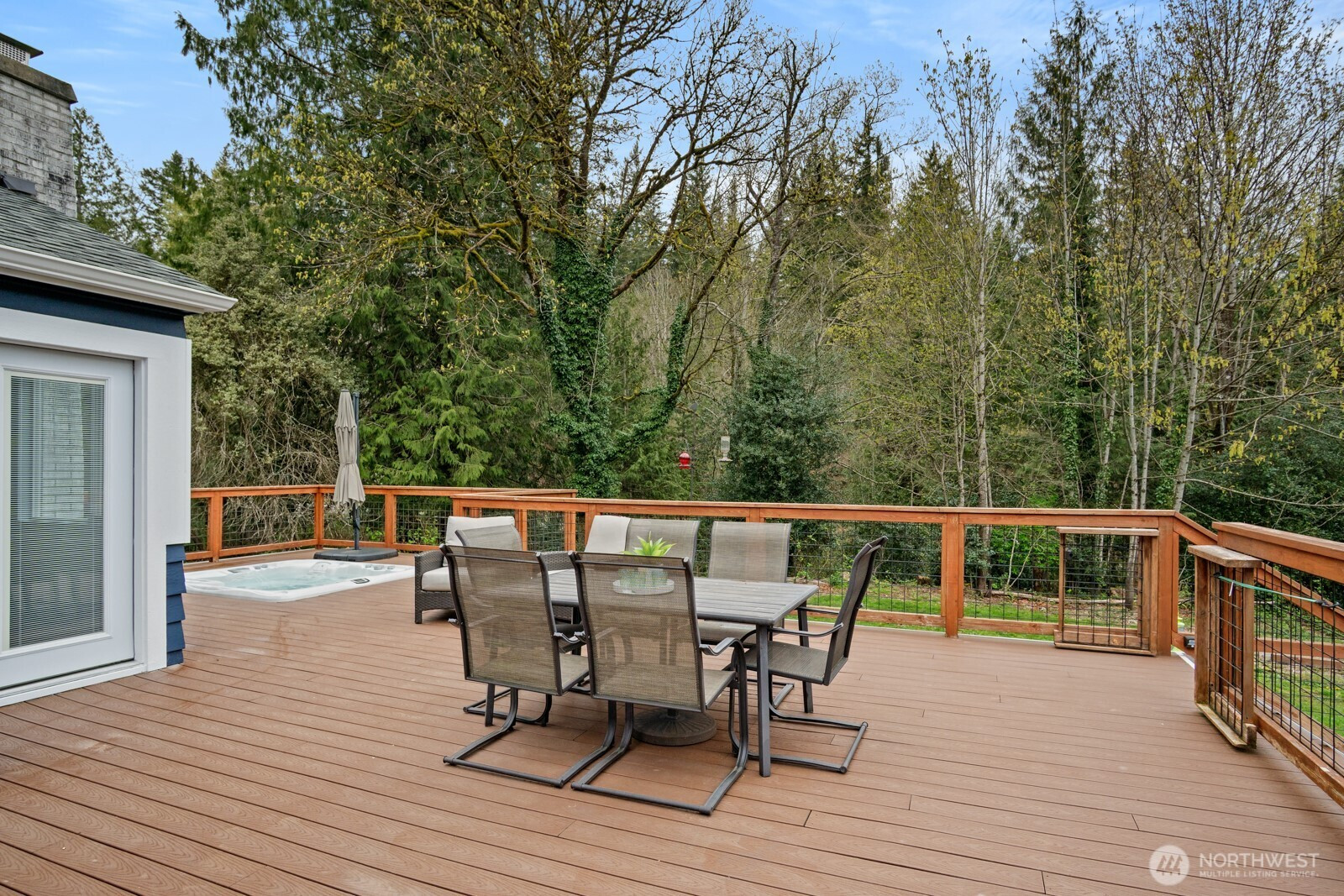 Situated on over 3 private acres, this tastefully remodeled 3 bedroom, 2 bath home offers an array of exceptional features. Enjoy the beautifully updated eat-in kitchen with quartz countertops and stainless steel appliances. Relax by the cozy fireplace in the living room or entertain under the stars on the new deck with a sparkling clean sunken hot tub. Other updates include fresh interior paint throughout, new trim, custom tile work in the beautifully updated bathrooms along with a new covered front patio. 2 car garage and extra detached work/shop/storage space in outbuilding, new roof in 2023, freshly painted exterior and new heat pump for year-round comfort. The spacious lower level rec room provides ample space for entertainment as well as a den/office, laundry room and plenty of flexible space to use or customize however you like.