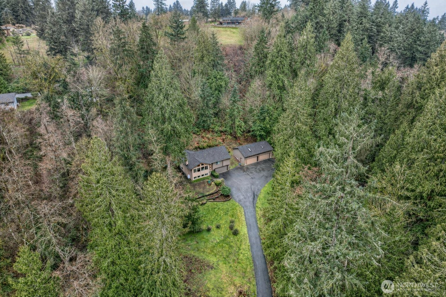 An Exceptional Property. Updated home and a detached shop on 3 plus acres that borders 60 acres of King County Parks Land around Bass Lake. The property is situated at the end of a paved dead-end street in a community of well-kept homes, it is partially wooded for privacy, has walking trails around it, areas for goats and chickens and a garden area that is fenced to keep the wildlife out. The house has a new roof, new HVAC components and a new water heater. Completely updated, custom kitchen has grey tone granite countertops over white cabinets, stainless steel appliances, a large center island with seating and tons of storage. LVP flooring and updated solid core doors and trim throughout. The living room has soaring, vaulted ceilings and a wall of windows to take in an epic view across the grounds to Bass Lake. The daylight basement has an updated rec room with a wet bar and a propane insert in the fireplace for cozy evenings in and a huge laundry room/half bath that is loaded with custom cabinets and a large sink. Attached two-car garage plus a four-car detached shop. The shop is light and bright inside, has 20-amp service and is insulated and heated for year around comfort. Come and enjoy living in this private, park-like setting.