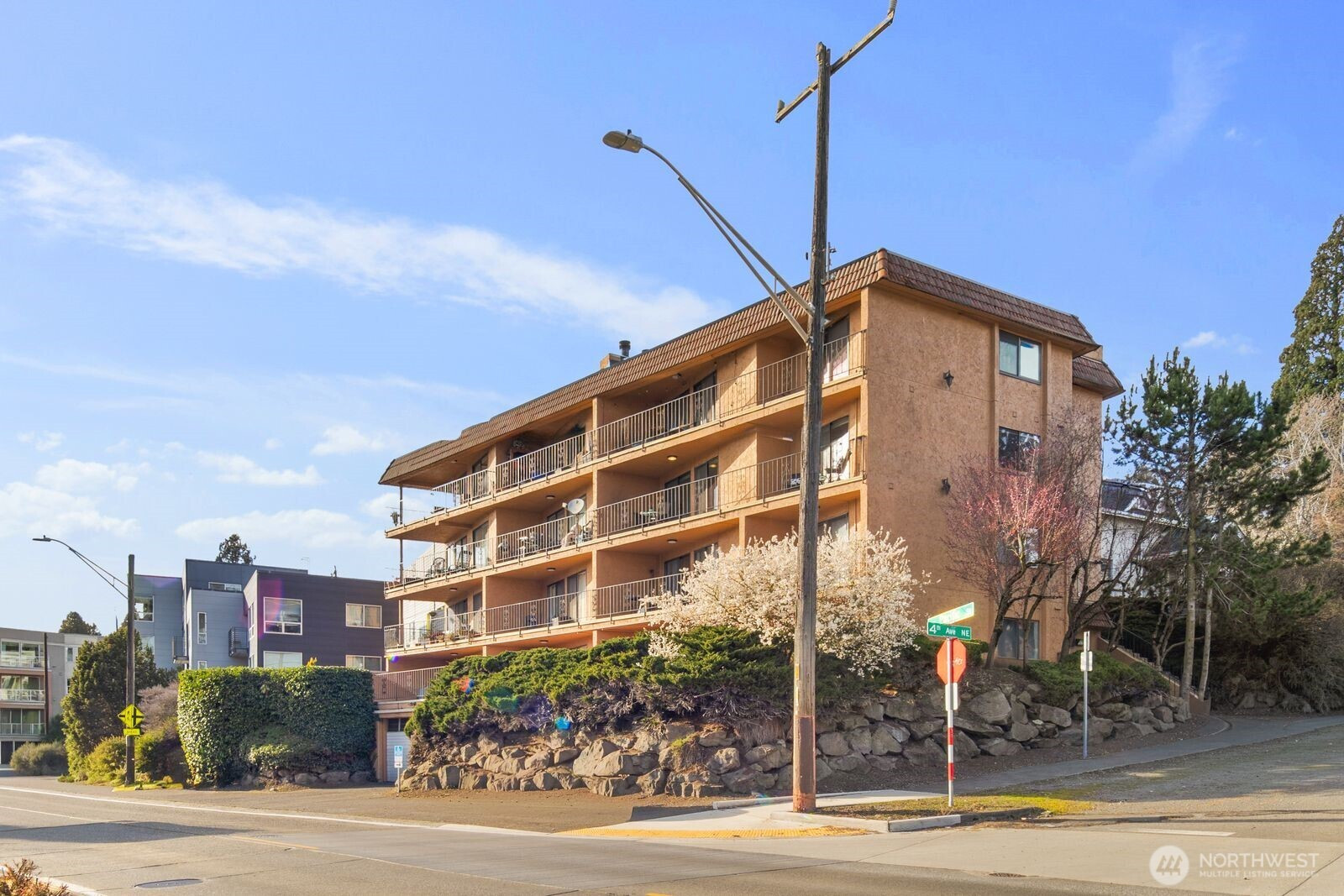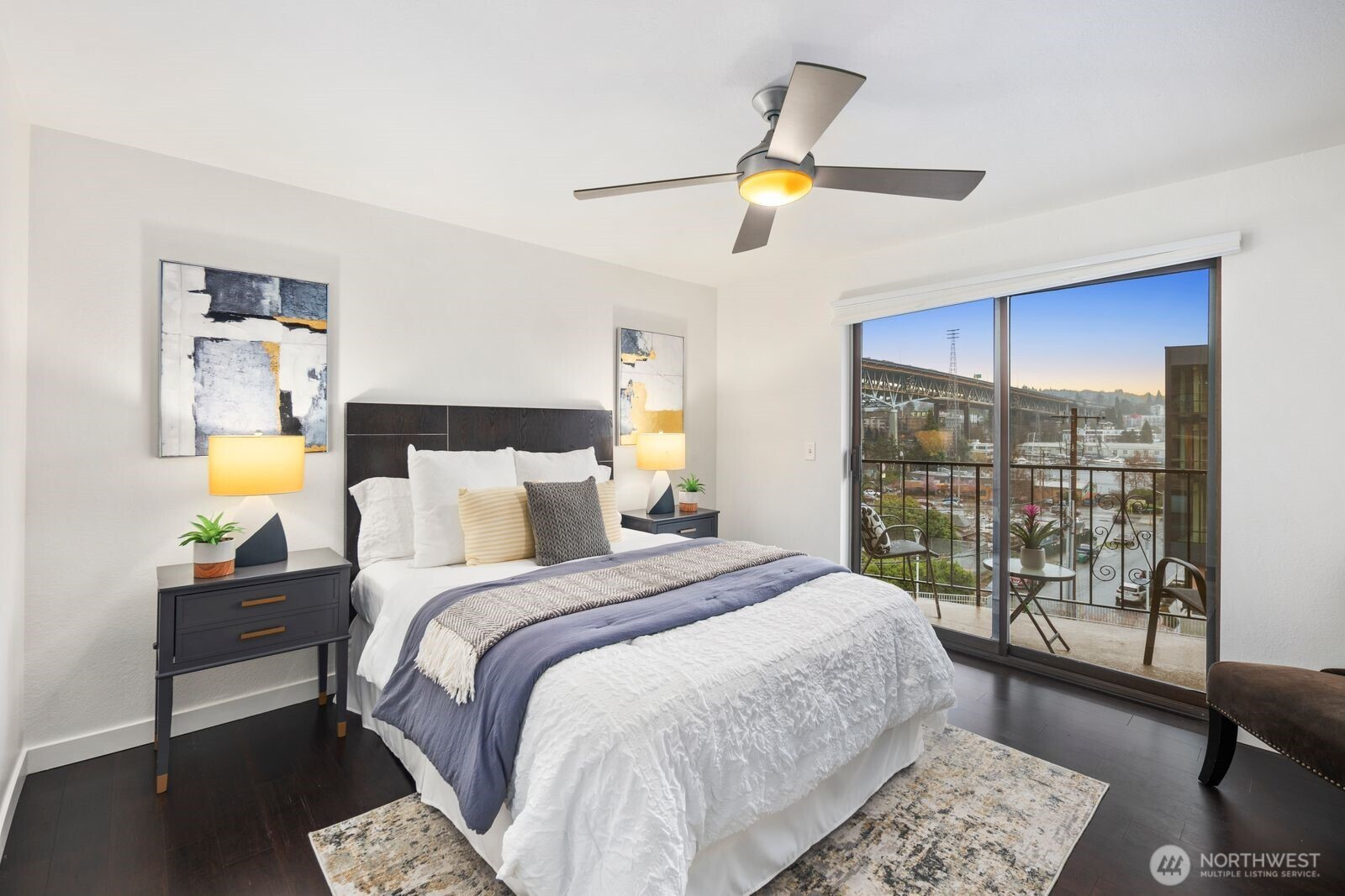 Prime location with water and city views! Enjoy Wallingford living at its finest at The Seville! This beautifully updated 2 bed 1.75 bath condo offers the perfect blend of comfort, style, and location. Freshly painted with bamboo flooring and tastefully updated bathrooms, the space feels modern and move-in ready. Enjoy the convenience of an in-unit washer/dryer, oversized storage unit, and a designated covered parking spot in a secure garage. This condo is designed for easy city living, providing safety and space. With water views of Lake Union and Portage Bay, the natural light and serene backdrop add a calm to your everyday routine. Ideally located near UW, Gas Works Park, the Burke-Gilman Trail, countless bars and restaurants, and major commuter routes. No rental cap makes this a fantastic opportunity for homeowners and investors alike. HOA includes water, sewer, garbage. Welcome Home!