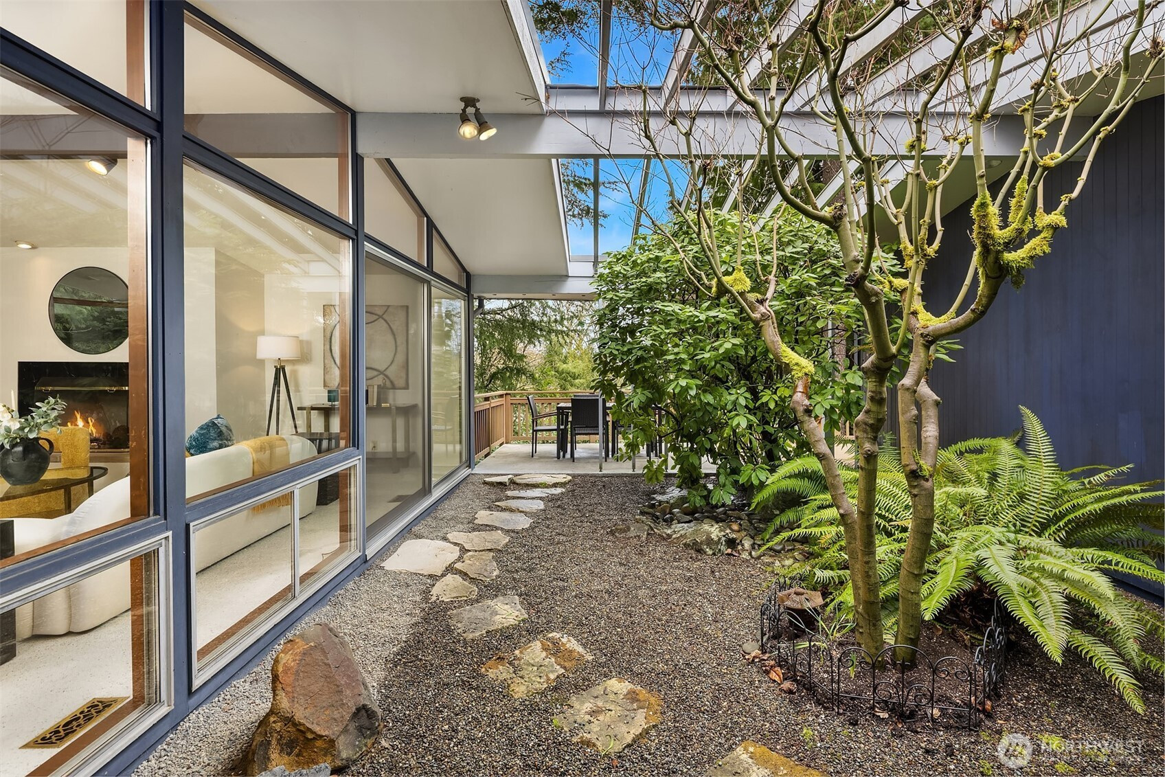 Mid-century gem in Mercer Island’s coveted north end. Enter through a beautifully landscaped courtyard into a living room w/ vaulted ceilings & walls of windows full of natural light. A spacious kitchen w/ multiple outdoor decks create seamless indoor-outdoor living, ideal for entertaining. The light & bright main level features hardwood floors & three bedrooms including a primary suite w/ en-suite bath. The spacious lower-level walk-out offers a large recreation room w/ wood-burning fireplace, a large 4th bedroom & newly remodeled bath, and expansive flex space - perfect for guests, work, or play. Tucked at the end of a quiet cul-de-sac in Mercerwood Estates on an oversized lot with level back play yard, this home is just minutes from top-rated schools, JCC, Mercerwood Shore Club, parks, shopping, and easy I-90 access. A rare combination of timeless design, comfort, and location.