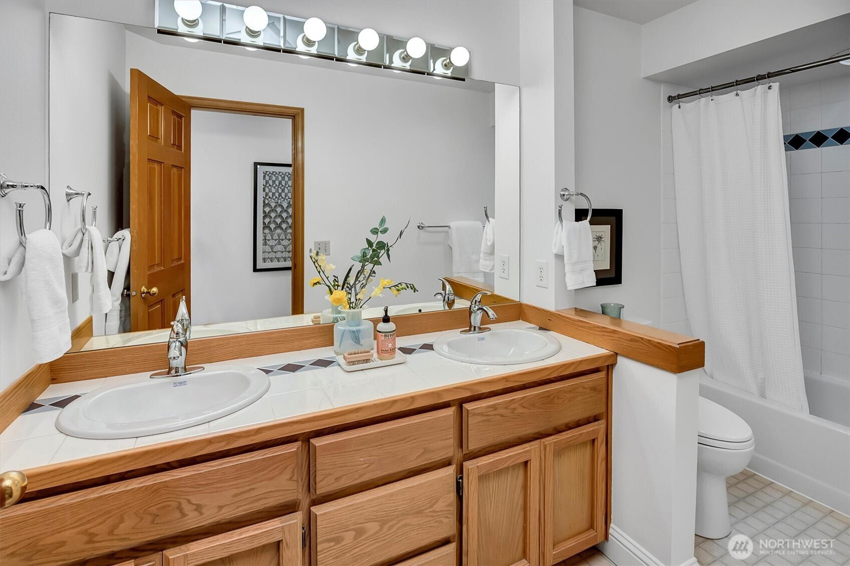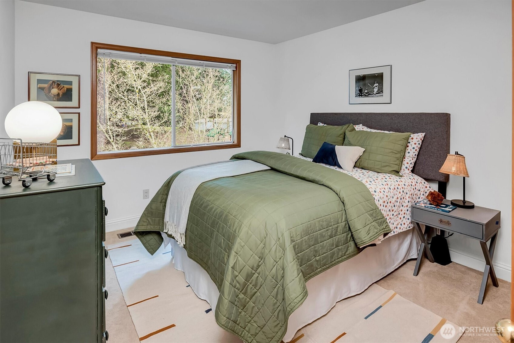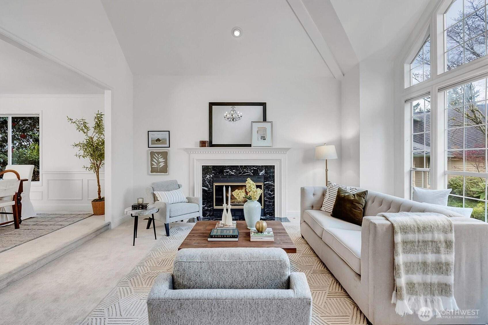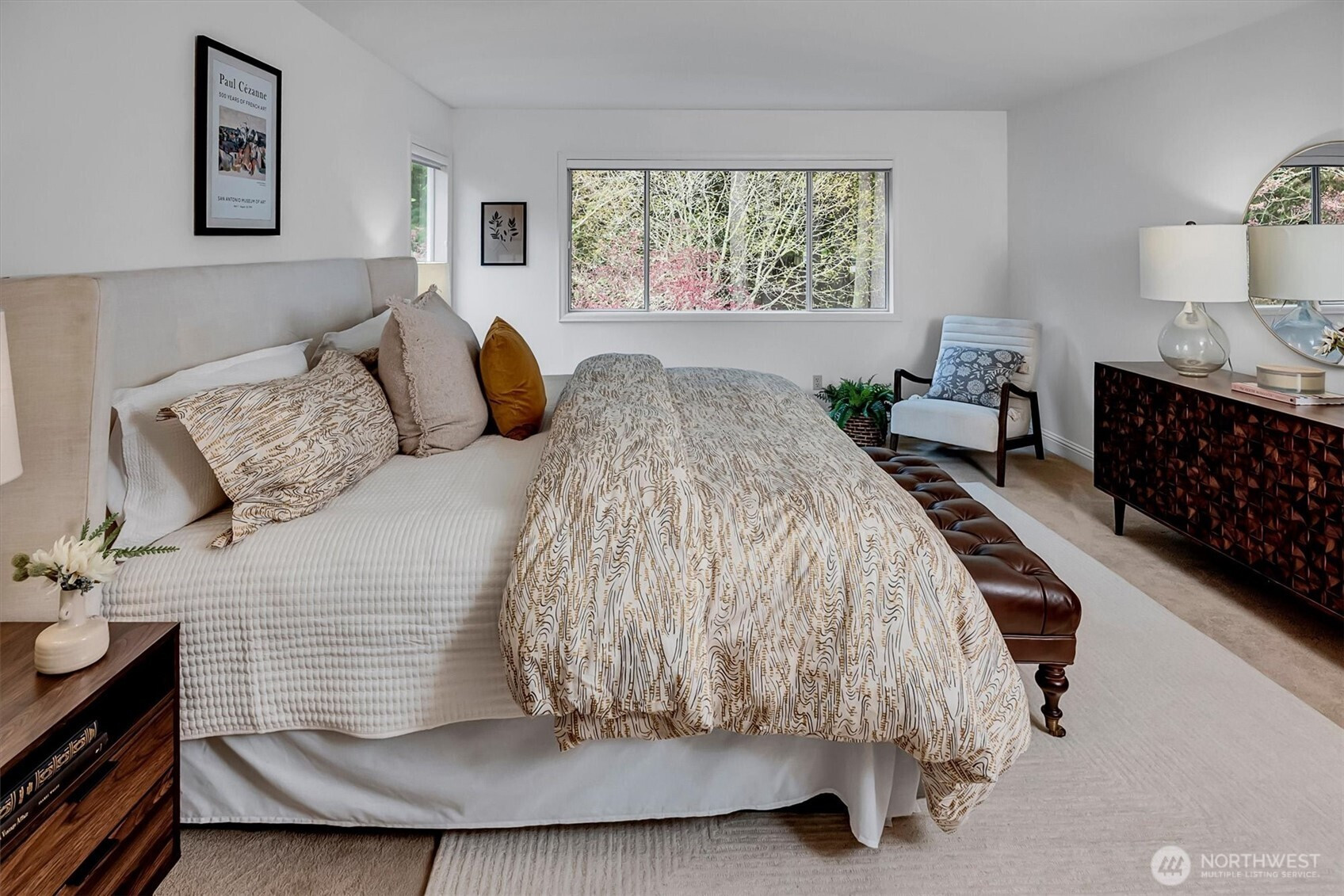 Thoughtfully updated Sammamish home tucked on a quiet cul-de-sac, offering 4 bedrooms plus a main floor office and 2.5 baths. A vaulted entry welcomes you in with a sense of space and light, while hardwood floors carry through the entry, kitchen, and great room. The kitchen features custom quartz counters and a built-in desk—perfect for homework, study, or everyday organization—and opens naturally to the surrounding living spaces with easy connection to the backyard, creating a comfortable flow for both daily life and gatherings. Two gas fireplaces add warmth and flexibility throughout. Fresh interior paint and new carpet provide a crisp, move-in ready feel. Upstairs, the primary suite is light-filled with a skylight and includes a 5-piece bath and walk-in closet for a comfortable, functional retreat. Additional bedrooms are generously sized. Set on a 7,567 sq ft lot, a true gardener's delight with beautiful trees and year round blooms as your backdrop, offering privacy and a peaceful outdoor setting. Central A/C, a 2-car garage, and quiet cul-de-sac location make it easy for settling in. Coveted Issaquah school district, close to Pine Lake parks, shopping, the Microsoft connector, and I-90. One year AHS warranty included for peace of mind.