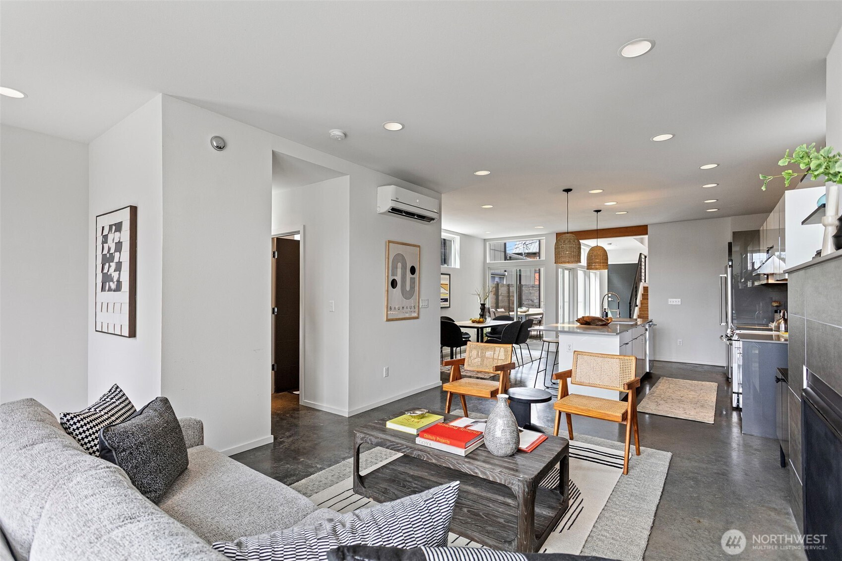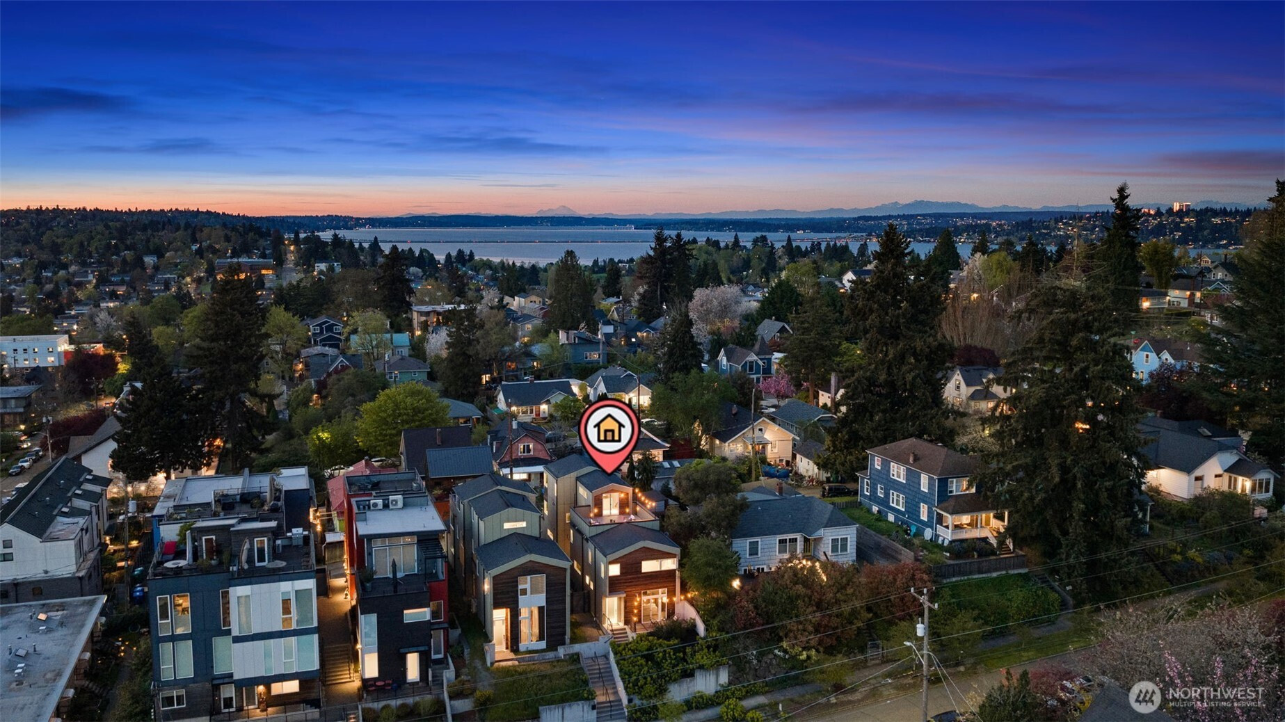 Stunning modern free-standing home privately sited on a street-to-alley lot, offering rare separation from the everyday with level alley access to a spacious 2-car garage + EV charging. Refined, livable finishes throughout. Polished concrete floors anchor the main level, where an open kitchen and dining area flow seamlessly to a tucked-away courtyard, perfect for summer dinners or a quiet morning start. Thoughtful, flexible floor plan with four true bedrooms, including three on the second floor. Two primary suites provide options for how you live today and how you grow into the home over time. Top-floor retreat captures territorial and city views, opening to a generous rooftop deck, ideal for entertaining or unwinding above it all. A/C on every level for year-round comfort. Ideally situated between the best of two worlds - urban amenities in one direction and peaceful refuges in the other. Two blocks to Columbia City, one of Seattle’s most vibrant, character-rich neighborhoods, home to a beloved farmer’s market, music venues, cafes, vibrant shops, and easy light rail access. Nearby green spaces and parks like Genesee, Mt. Baker & Seward Park with miles of Lake Washington shoreline offer quiet calm and recreation just moments away!
