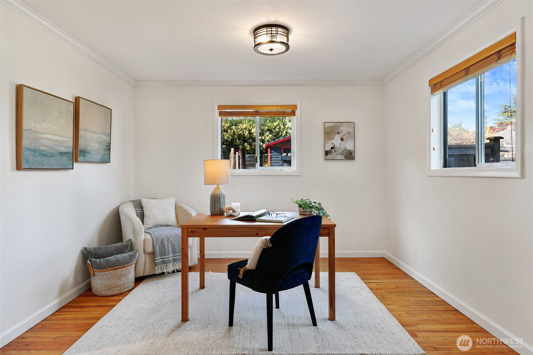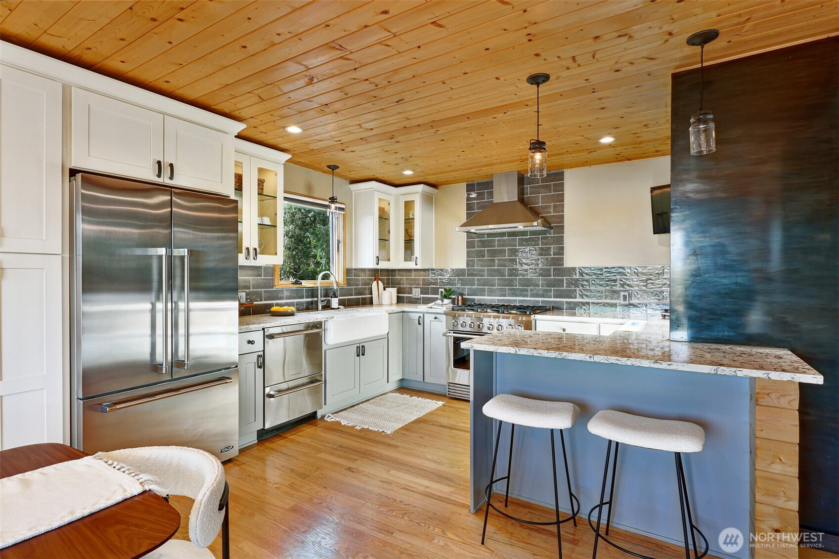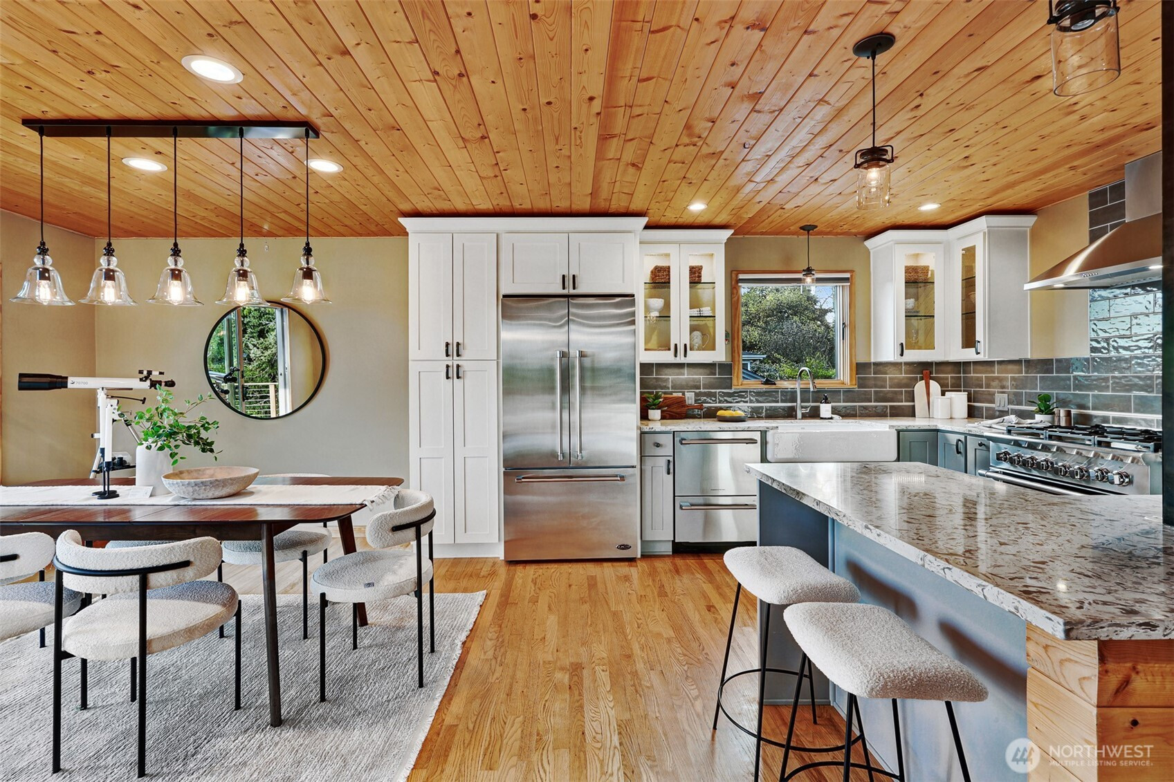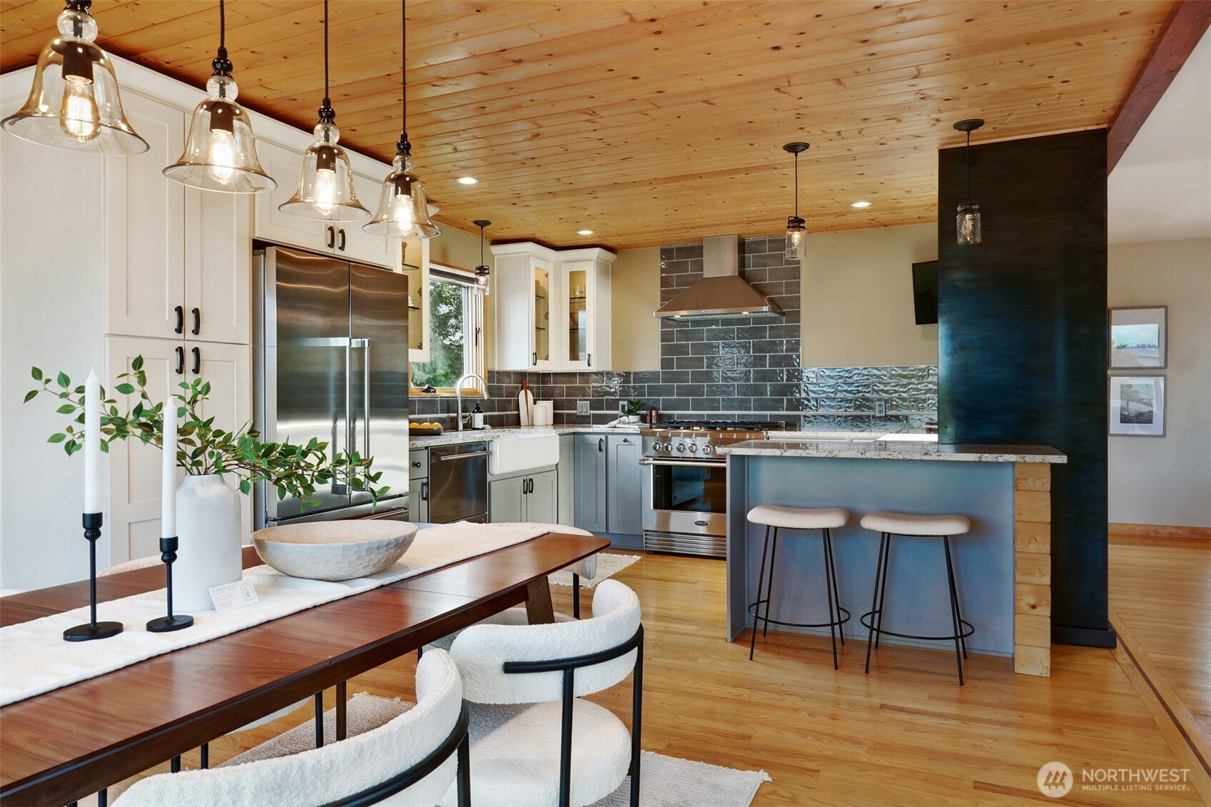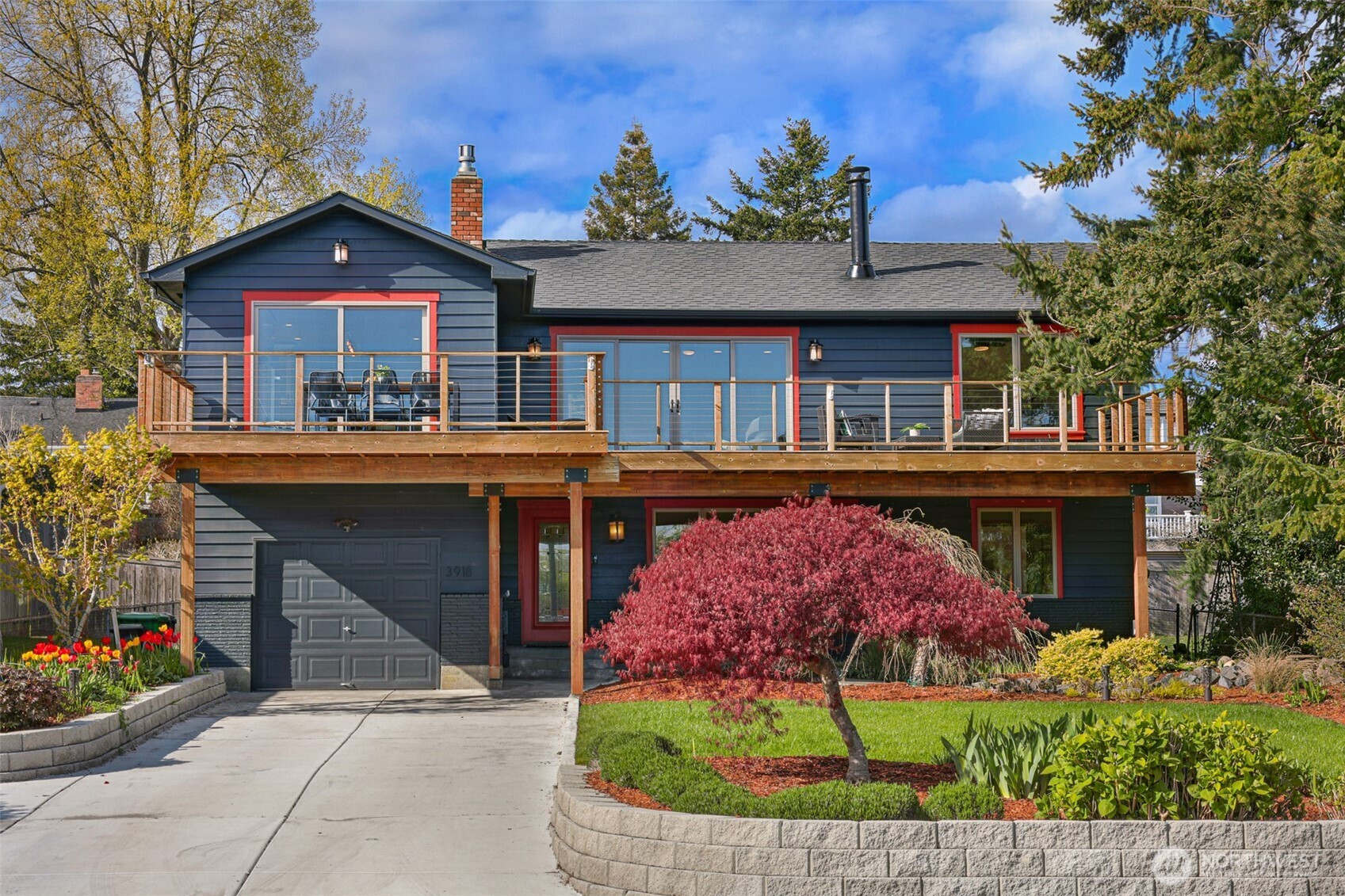 Discover the perfect blend of Northwest living and backyard sustainability in this Arbor Heights home with wireless Puget Sound and Mt. Rainier views. Designed with a reverse floor plan to maximize light and scenery, the upper level features an open-concept layout with custom finishes, striking thoughtful details, a spacious kitchen and dining area, and easy access to a large view deck. The primary suite with walk-in closet, a third bedroom, and a powder room complete this level. The entry floor offers exceptional flexibility with a generous family room, two versatile flex spaces, a bedroom, and a 3/4 bath. This is a place that is ideal for guests, remote work, or hobbies. Outdoors, the property transforms into a true gardener’s paradise. Enjoy plentiful raised vegetable beds, established fruit trees, berry patches, a chicken coop, garden shed, and even a tranquil pond. An inviting outdoor entertainment area is set up for an open-air kitchen and game-day viewing with space for a TV, creating the ultimate gathering spot. Private, peaceful, and surrounded by nature, yet just minutes from everyday conveniences. This home truly has it all.