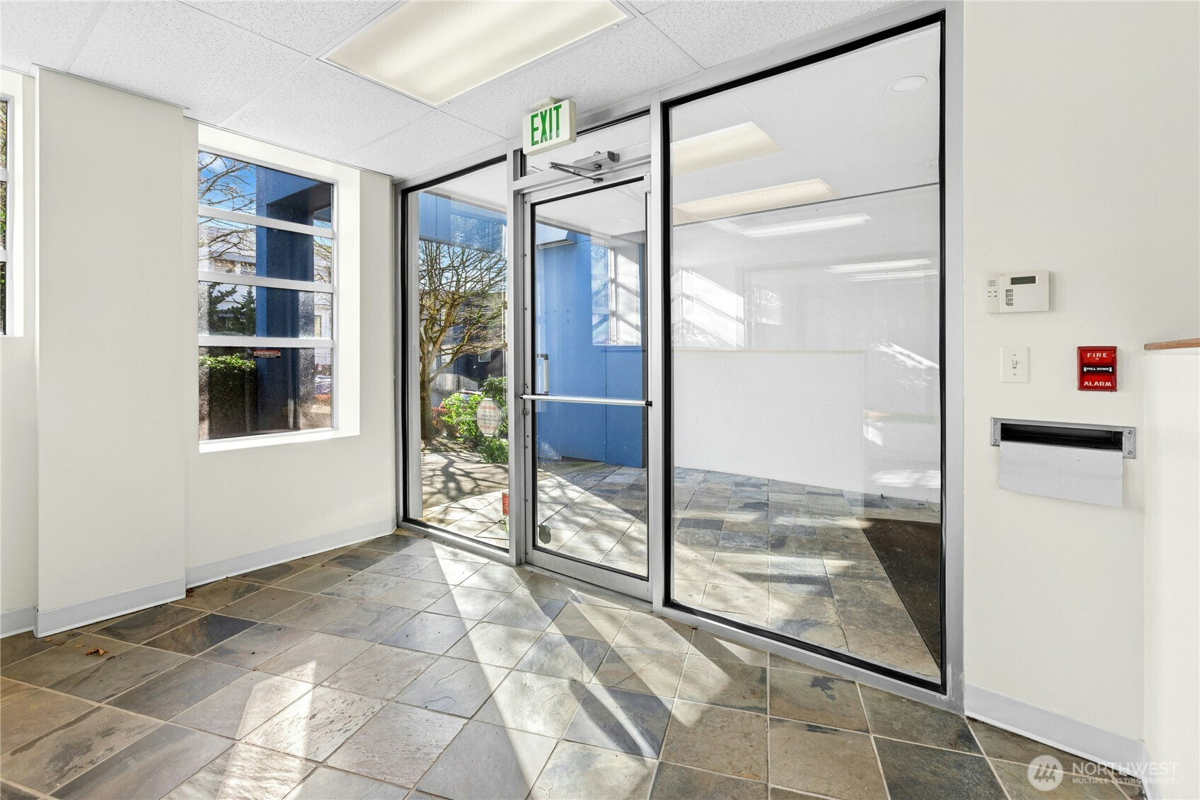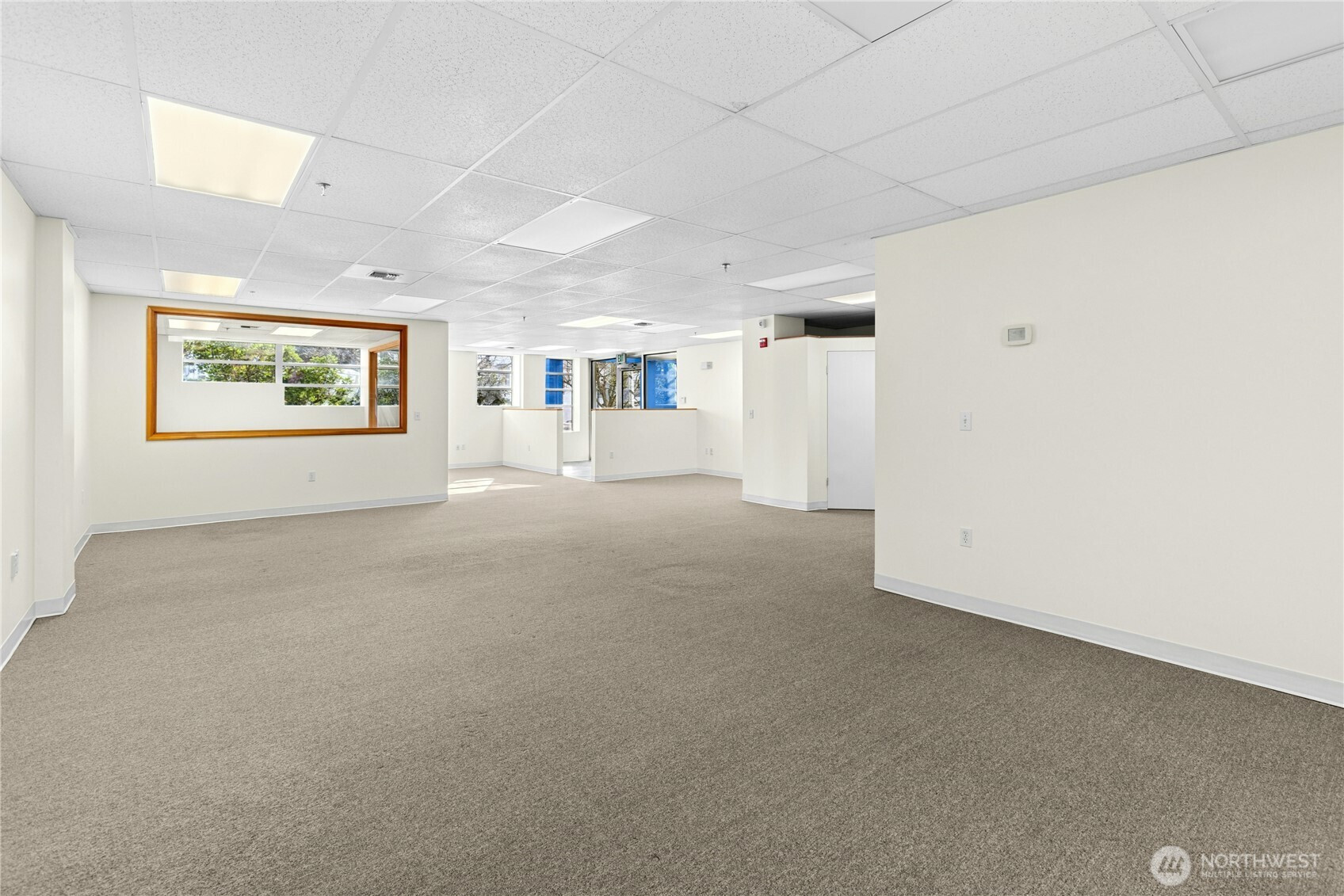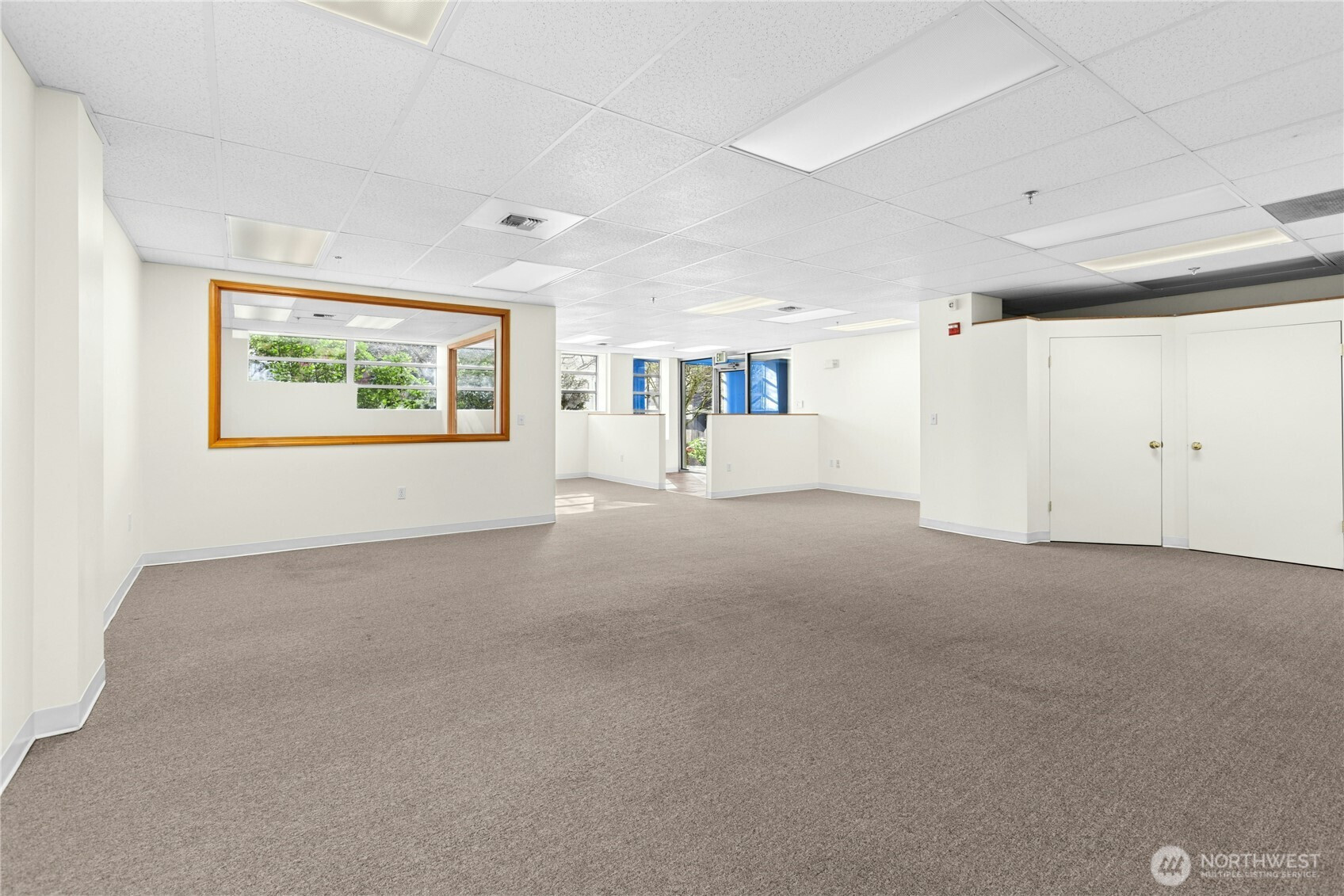 Exceptional investment opportunity ideally situated near the UW Hospital and Lake Union. Perfect for a law firm, insurance office, non-profit headquarters, consulting firm, etc. Includes 2 bathrooms and kitchenette/break room, Conference rooms, open work areas and reception area. This space is actually laid out in a manner that could create two office spaces as there is additional access from building hallway as well as from the street entrance. The building is a "mixed use" complex. Commercial/retail on the main level and condos above. This unit has 6 parking spaces (3 tandem deep=6) in a secure gated garage. One block to beautiful Lake Union, with wide, sunny sidewalks, close in eating spots, UW Hospital and much more.