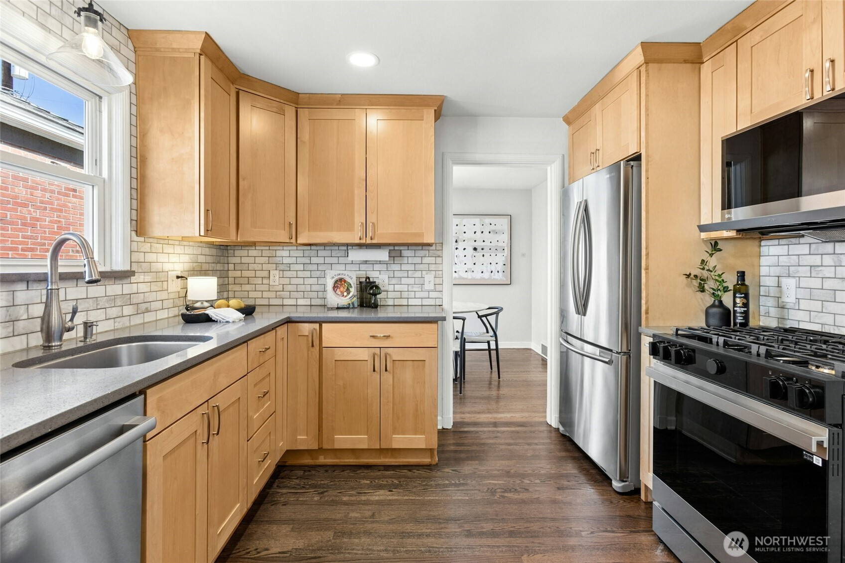 Perfectly marrying vintage charm with today’s must-haves, this irresistible 1941 Cape Cod truly shines! Bright, airy living spaces with original hardwoods, walls of windows, and a cozy wood-burning fireplace set a warm, inviting tone. The beautifully updated kitchen features granite countertops, new cabinetry, gas range, and built-in microwave, with seamless flow for everyday living or easy access to the backyard for effortless entertaining. Two generous bedrooms upstairs offer great closet space with a full bath in between, while the lower level lives as a dreamy primary retreat with ¾ bath, gas fireplace, and an extraordinary walk-in closet (3rd bedroom), plus a dedicated laundry room with newer washer & dryer. The fully fenced, sun-drenched backyard is made for summer—composite deck, irrigated planter boxes, full sprinkler system, new Tuff Shed, and expansive lawn for play or pets. Attached garage plus widened driveway for a second car with EV charger. Extensive upgrades throughout including electrical, PEX plumbing, new main water line, LED lighting, A/C, and Quantum Fiber internet. This one truly has it all—just moments from everything!