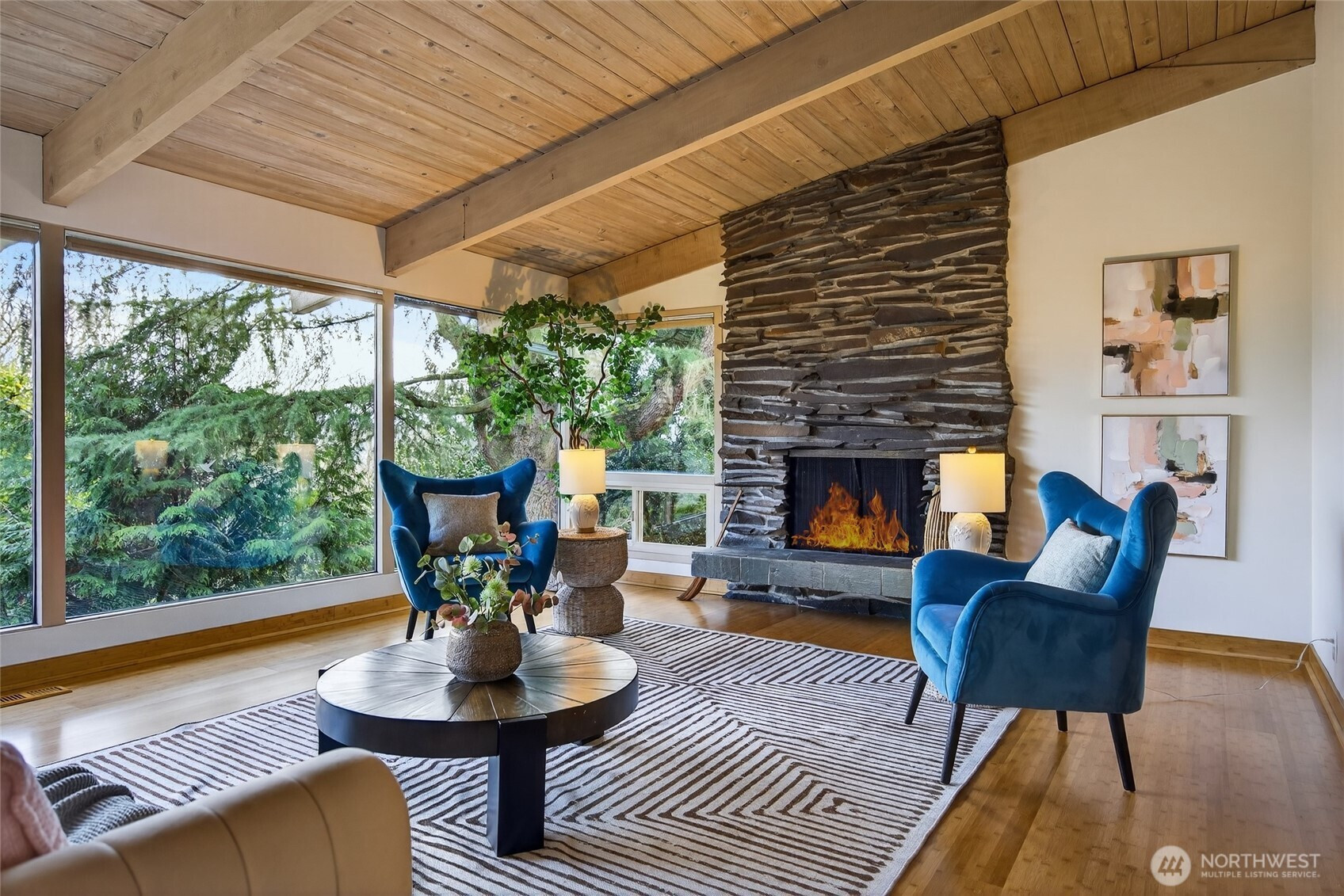 (503) 893-8874Timeless mid-century modern gem, privately situated at the end of the road with a serene natural setting, available for the first time on the market. Walls of windows on both levels fill the home with natural light and connect seamlessly to the surrounding landscape. The main level features vaulted open-beam wood ceilings, bamboo flooring, and a striking wall-to-ceiling stacked-stone fireplace. Open bamboo dividers define living spaces while maintaining an airy, open-concept design. Offering approximately 2,680 sq ft, the home includes ensuite bedrooms, full kitchens, an extra bedroom, bathroom, fireplace, and W&Ds on each floor. The lower level is a licensed accessory dwelling unit, providing exceptional flexibility for multigenerational living or rental opportunities. Recent updates include a new 2023 furnace and A/C system, and fresh interior paint. Large storage room/shop. Rich in character and ready for modern personalization, this is a truly special home. Set above the Cheasty Greenbelt, the property feels immersed in a peaceful, forested environment. Outdoor living includes two decks, a patio, and a garden court, with winter views of the Cascade Mountains and Lake Washington. Located just east of the 52-acre Jefferson Golf Course and renovated Park, close to Columbia City, Seward Park, Lake Washington, with easy access to I-5, I-90, downtown Seattle, light rail, many activities, and urban amenities.
