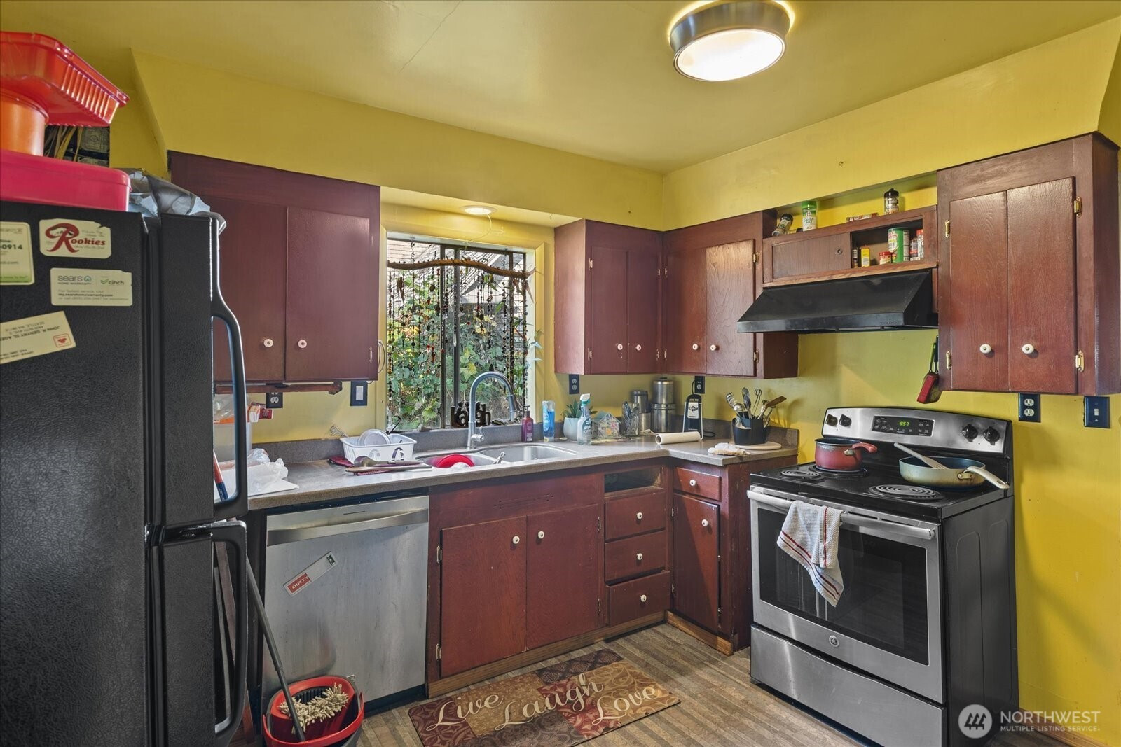 Experience unparalleled panoramic views of Lake Washington & the stunning Seattle skyline. Perfectly suited for those seeking a redevelopment opportunity or turnkey rental income while securing permits. Ultimate versatility! The thoughtfully designed main and lower levels each boast fully functional kitchens, ample cabinetry + abundant storage. The primary level features two spacious bedrooms & a private layout, bathed in natural light w/access to an expansive deck showcasing unobstructed vistas. Laundry hookups are available on both units. the lower unit enjoys shared outdoor spaces & access to the level backyard—ideal for gardening. A generous garage provides ample storage & utility. the property blends practicality w/breathtaking views!