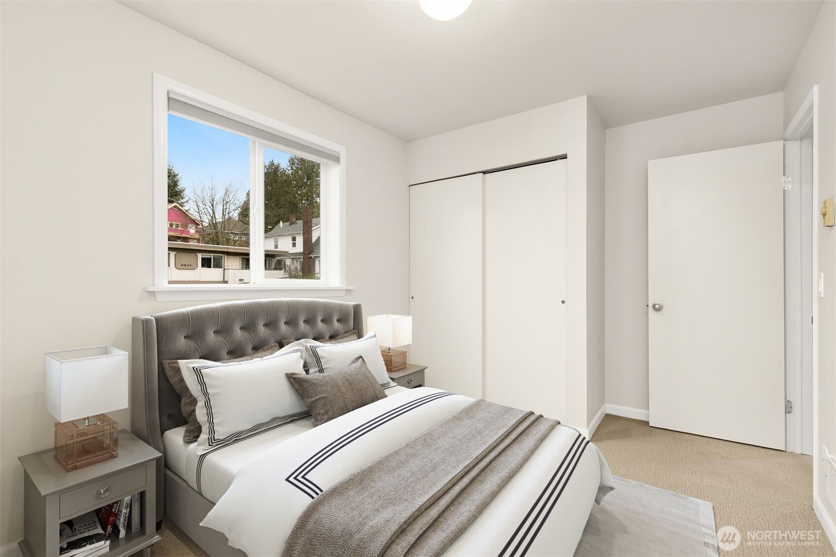 Quaint 2-bedroom condo in the heart of Wallingford with new interior paint, new carpet AND unbeatable access to everything Seattle has to offer! Located just one block from major bus lines, you’re only a quick ride (bus + light rail connection) away from most of the city. Enjoy Lake Union & Space Needle views from your own private west-facing balcony & the communal rooftop deck - a quieter orientation that helps minimize I-5 traffic noise. This condo includes a dedicated parking space in the secure gated garage, eliminating the hassle of street parking. Enjoy a private storage unit on the garage level, protected by multiple secured entry points—ideal for all your adventure gear. Perfectly positioned near I-5 for an easy commute while still feeling centrally located in one of Seattle’s most beloved neighborhoods! No rental cap or special assessments & strong HOA!