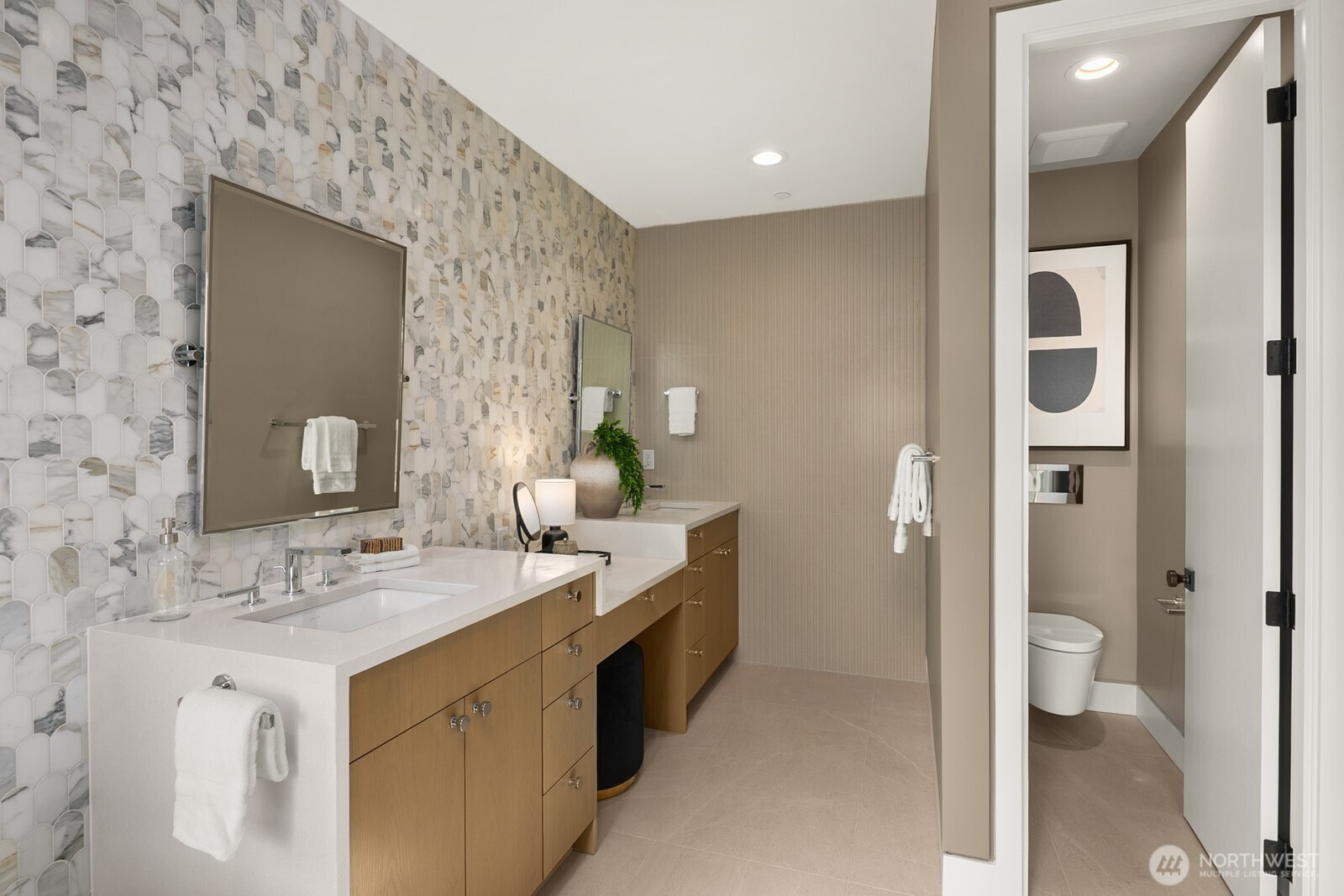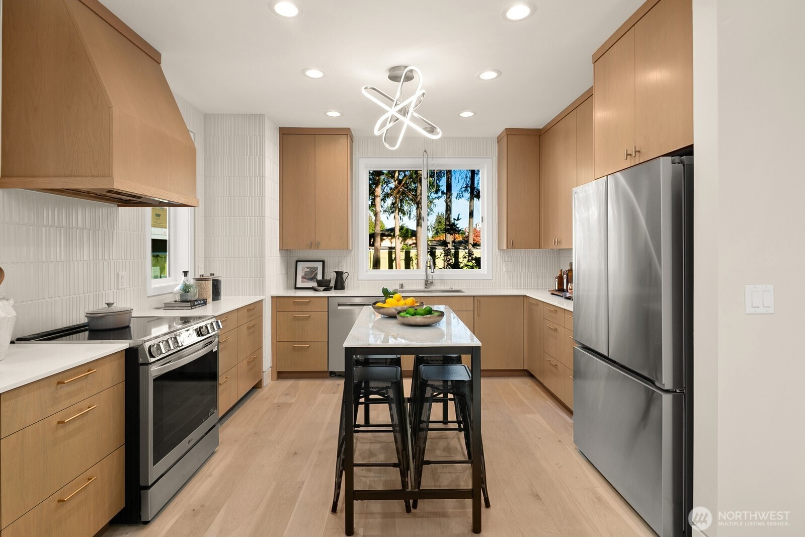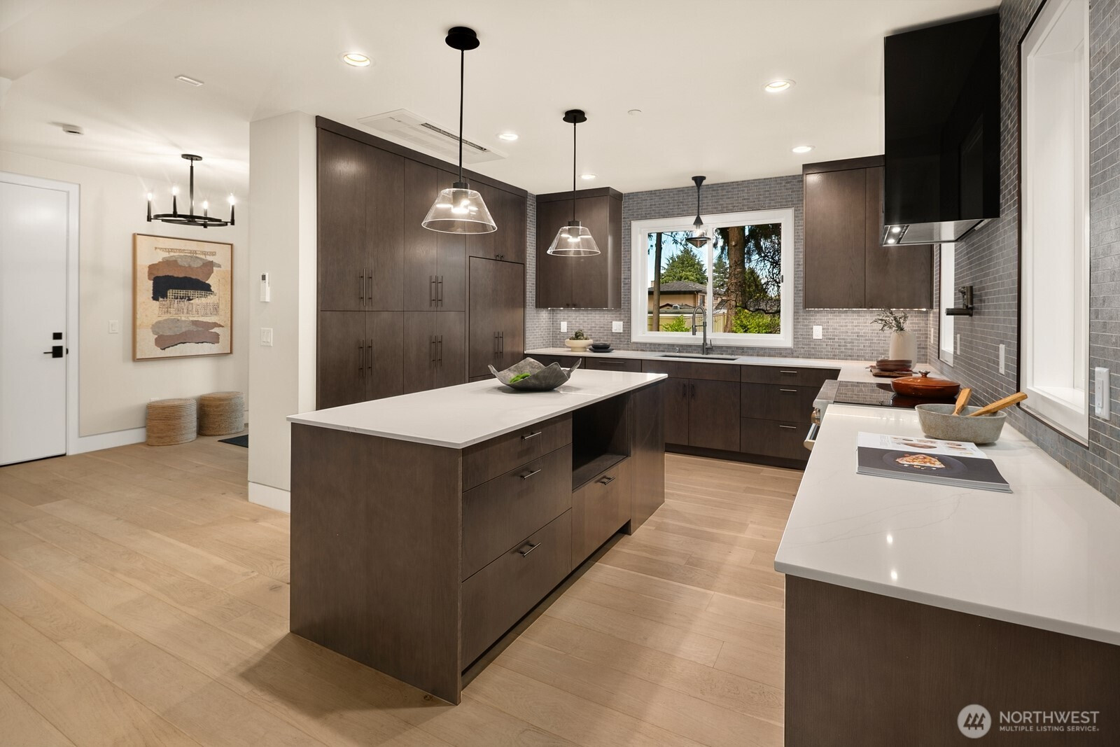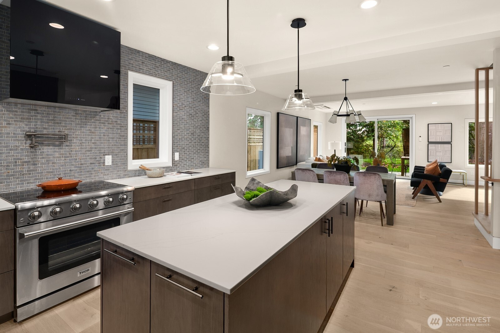 Modern luxury home located at the highest point in Magnolia on a dead-end lane with incredible privacy. Designed by local Magnolia builder with sleek finishes, custom details and views of the city, mountains, and Puget Sound. The main house is 3,011sqft with 5 beds + 4.5 bath + clerestory + media + workout room + 4 decks. A separate but attached ADU boasts another 1,581sqft with 3 beds + 2 bath + media - perfect for guests, rental income or flexible living. This home boasts a chef’s kitchen, stained custom cabinets, slatted entries, inlaid flush trim, 2 bars, and decks surrounded by large mature trees. 3 EV chargers w/ garage. Empty playfield next door offers open space for all residents. See MLS#2451014 and MLS#2445590.