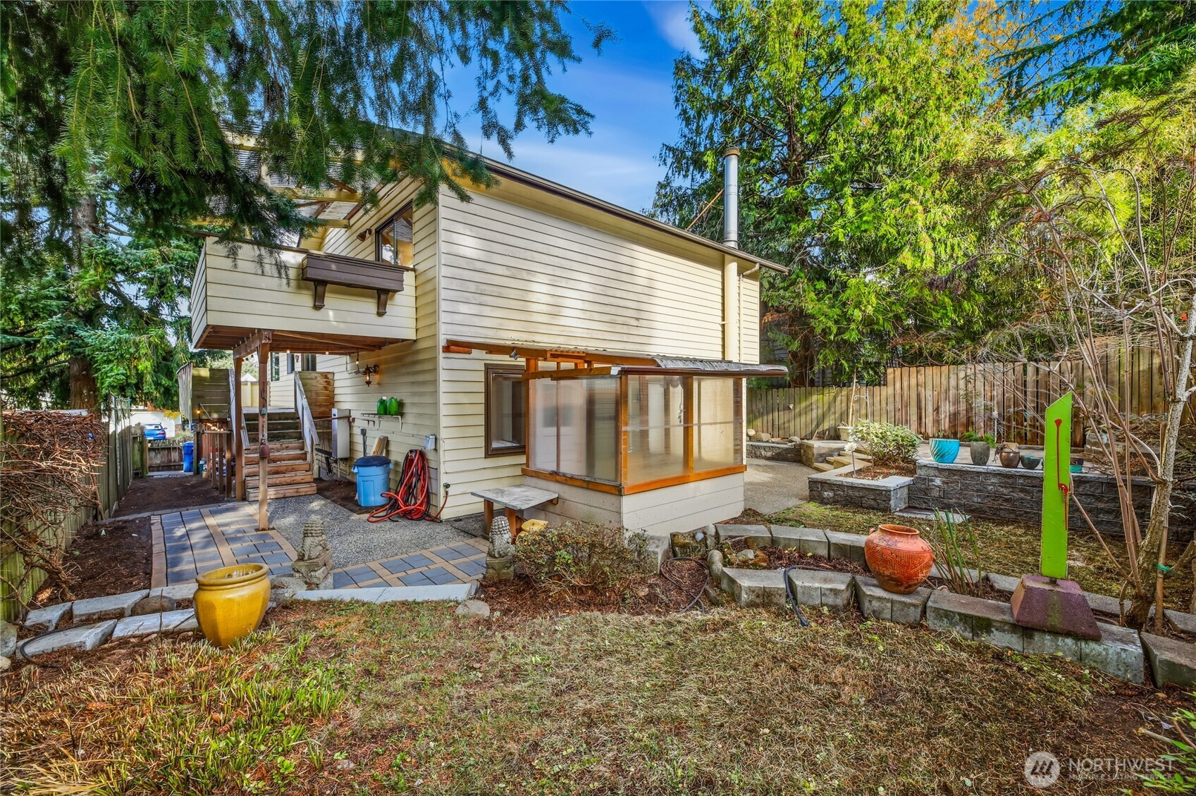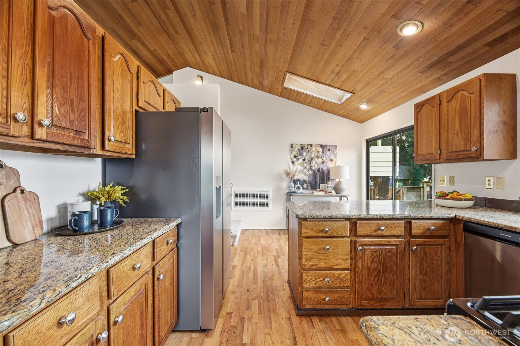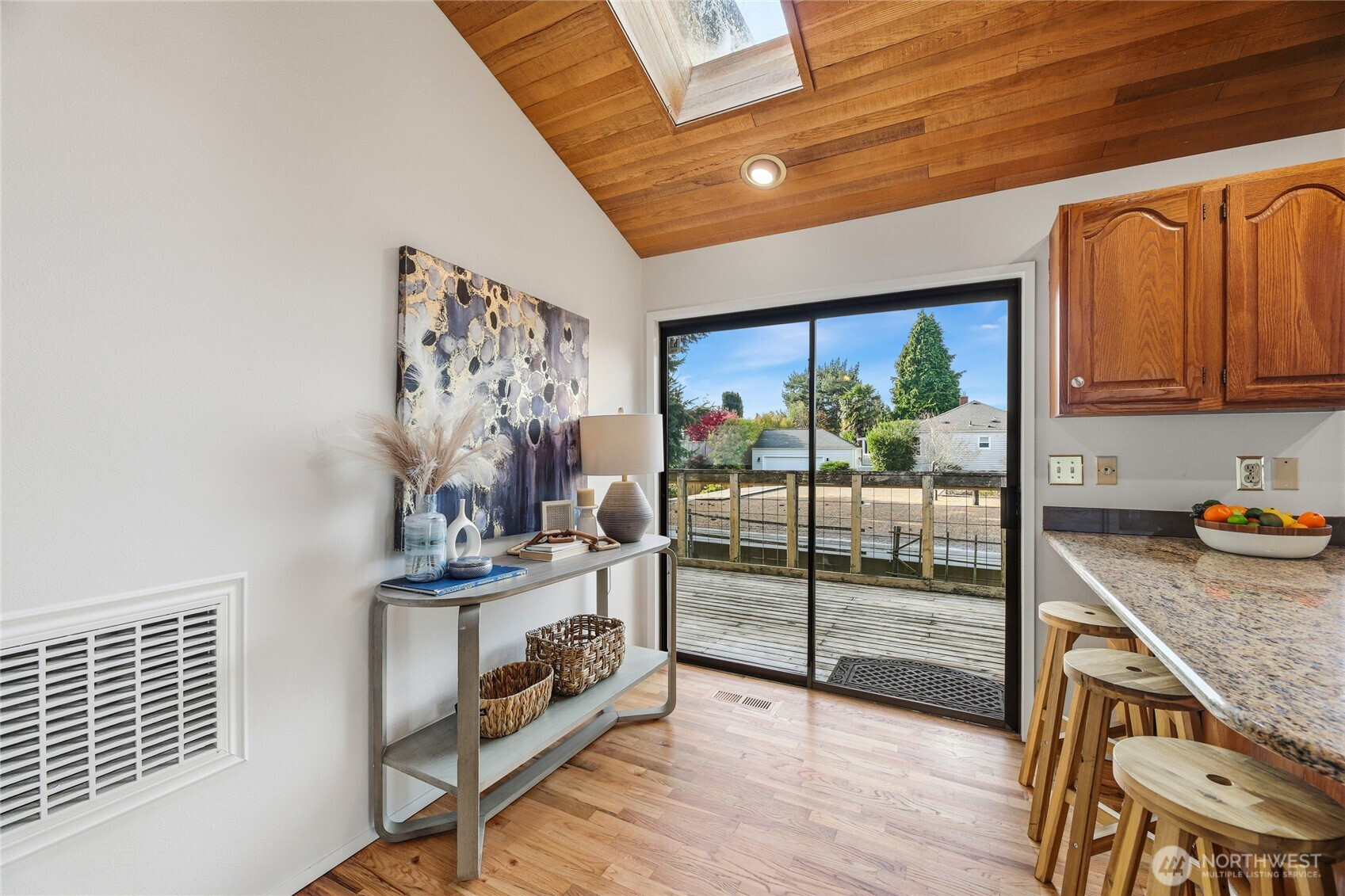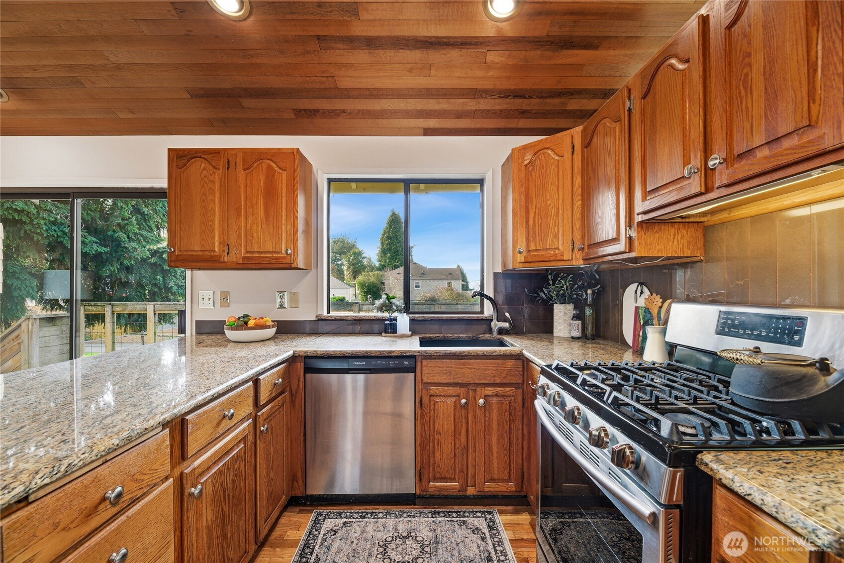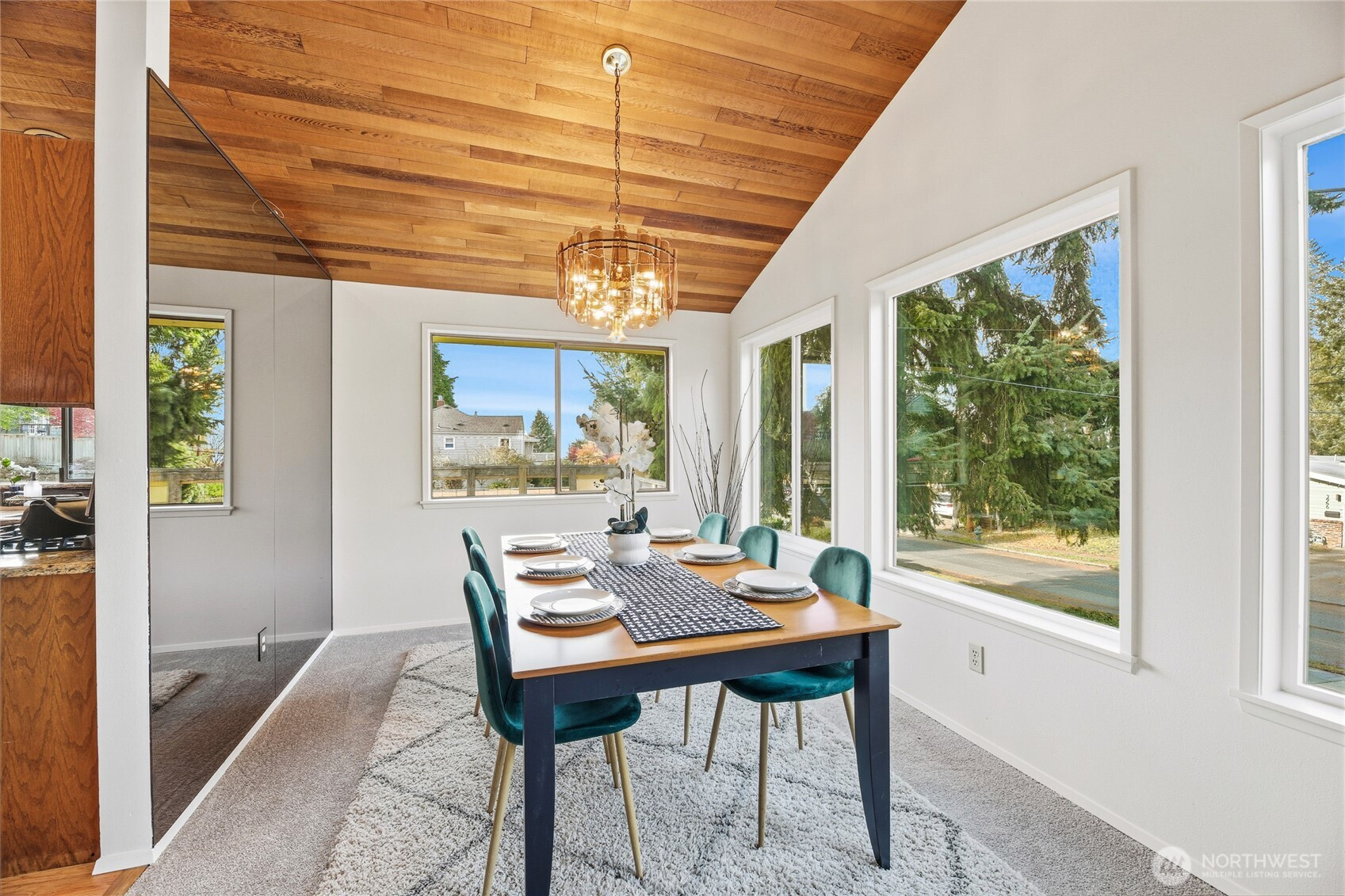 Located in desirable Gatewood, this Northwest Contemporary showcases dramatic cedar-finished vaulted ceilings that energize the main living spaces with warm texture & modern character. Built in 1983, the home blends timeless design with modern plumbing and wiring for comfort and peace of mind. With 2,050 sq ft of living space, this home offers four bedrooms—including a private primary suite with a ¾ bath—and three bathrooms total. Fresh paint and new carpet make it move-in ready. The lower-level family room features a wet bar & direct access to the backyard, creating the perfect gathering space. A spacious 600 sq ft two-car attached garage and 5,100 sq ft lot complete this gem, just a short walk to Gatewood Elementary & the Morgan Junction.