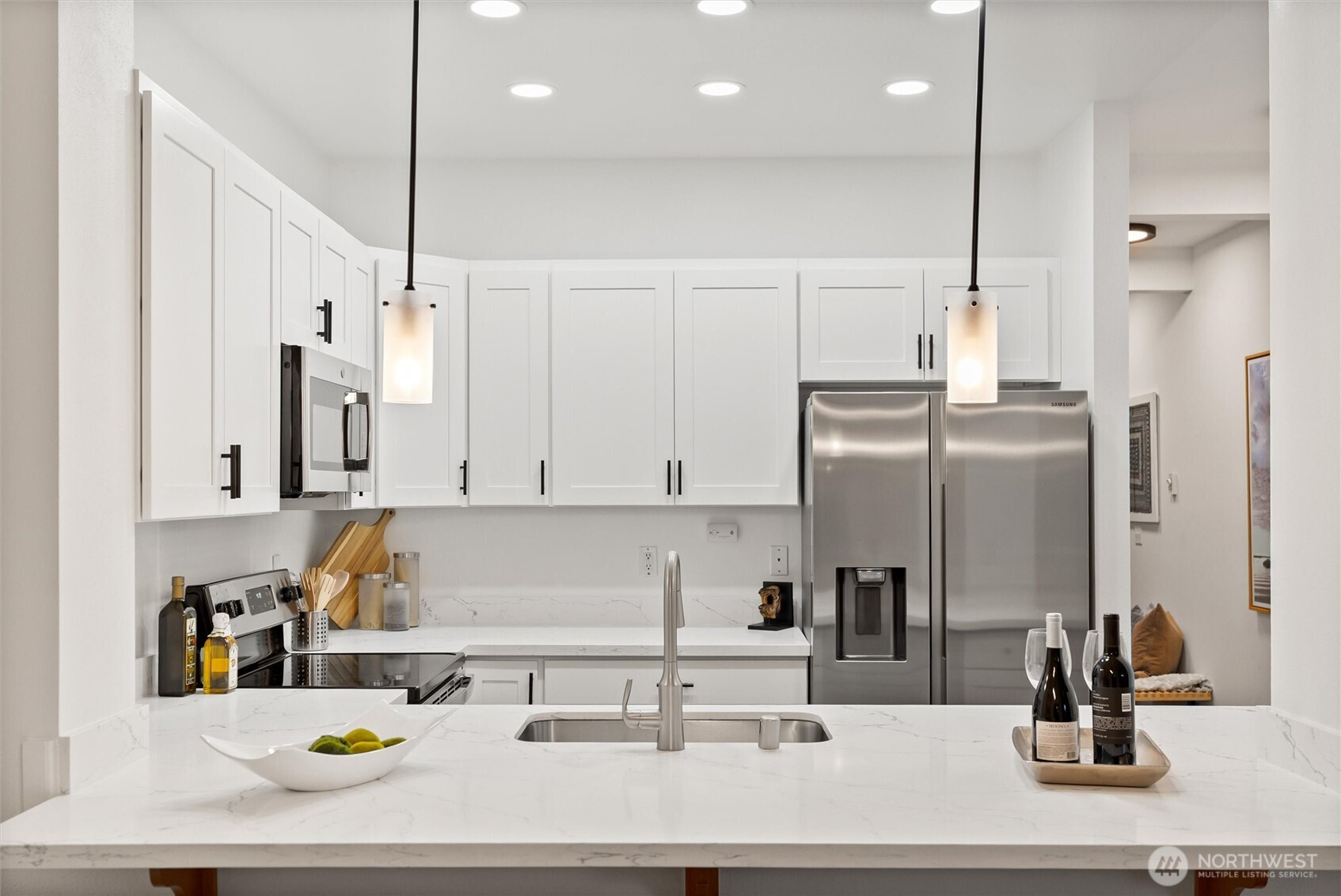 Welcome to your move-in ready South Seattle gem! Ditch the apartment and settle in to this 3 bedroom 2.5 bath home that makes the perfect starter home or townhome upgrade. This expertly remodeled home features sleek quartz countertops with bar seating, stylish cabinets, and stainless-steel appliances. Enjoy year-round comfort with efficient mini-splits and peace of mind with a brand-new roof (2024). Fully fenced yard offers privacy, plus an EV charger for modern convenience. Prime location near the Light Rail Station, parks, and local dining—making your commute and weekend adventures effortless. Stylish, efficient, and perfectly located! Ask about 1% lender paid rate buy down!