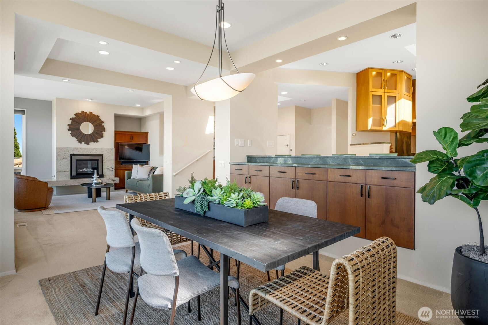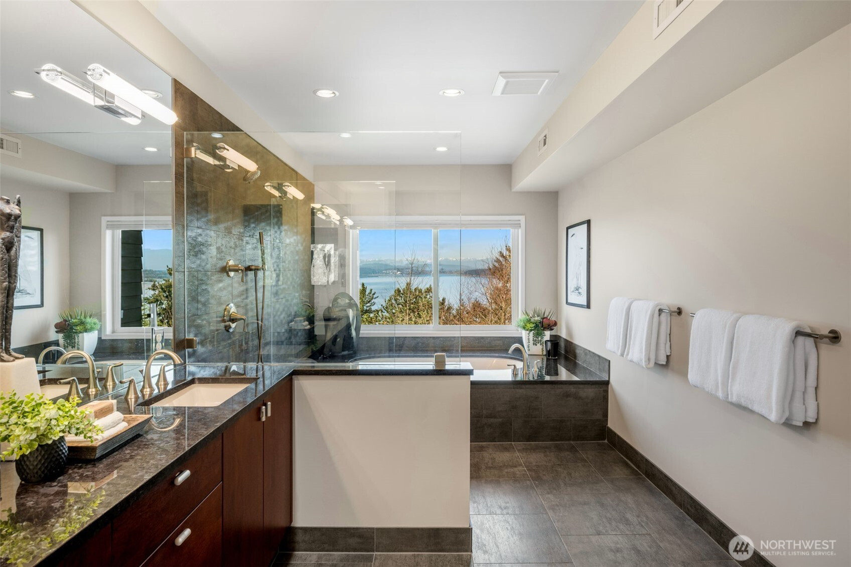Have you been waiting for a spectacular view home, in a coveted neighborhood that seamlessly combines impeccable style and everyday functionality? This may be the one. Enjoy stunning, year-round western-facing views of Puget Sound and the Cascades, creating the perfect backdrop for both relaxing evenings and unforgettable sunsets. This 4-bedroom home is thoughtfully designed to impress, featuring a beautifully appointed custom kitchen with high-end finishes, expansive entertaining spaces, and a generous deck—all perfectly positioned to capture the breathtaking scenery. Retreat to the extraordinary primary suite, a true sanctuary designed for both comfort and convenience, complete with a luxurious, custom spa-inspired bath and an enormous walk-in closet. The lower level boasts a brand-new second kitchen, offering incredible flexibility for entertaining, hosting guests, accommodating multi-generational living or extended stays. Abundant storage throughout the home ensures everything has its place, while the well-appointed two-car garage provides added ease for daily living and hobbies alike. The professionally landscaped, terraced backyard offers exceptional privacy and a serene, park-like setting—ideal for outdoor dining, gardening, or simply unwinding in your own peaceful retreat. This is more than a beautiful Northwest home—it’s a lifestyle defined by comfort, style, and unforgettable views.