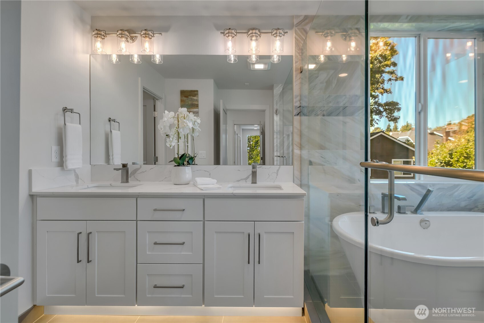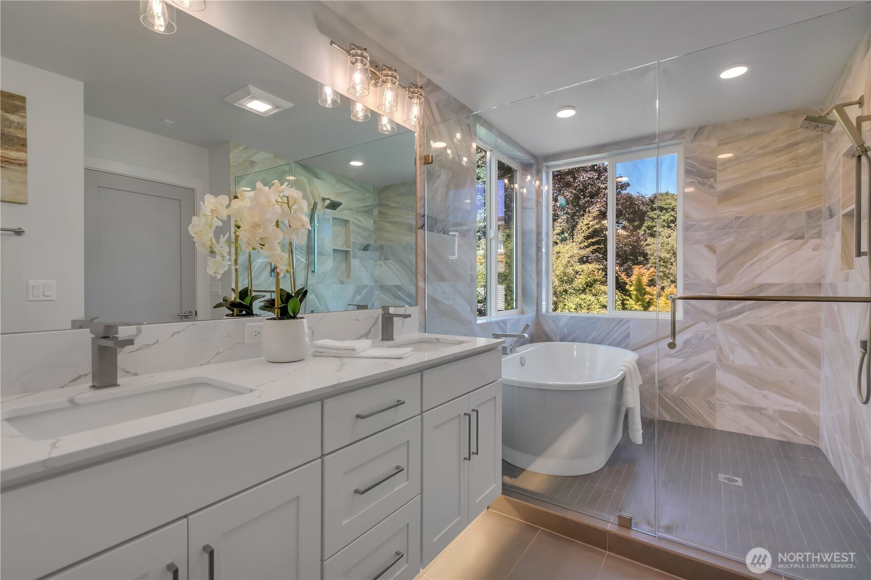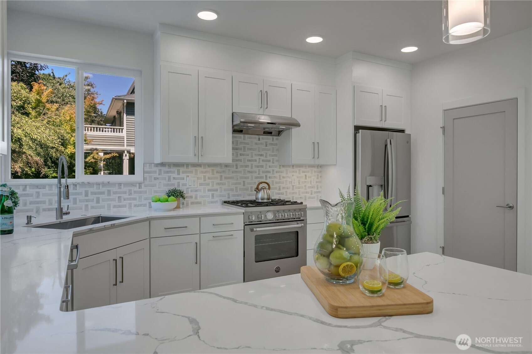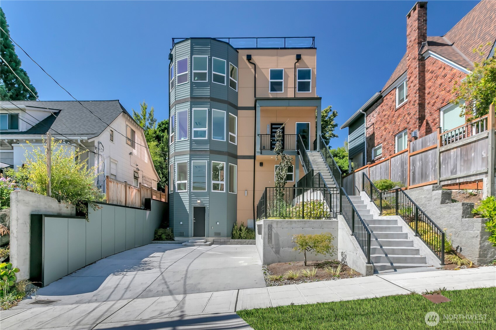Dramatic New Price! New construction under $500/sf in Wallingford! Larger than most homes, this luxurious newly built 2-story Penthouse boasts 2,620 sf, 4Br/3.5Bth, and a massive rooftop deck with sweeping Lake Union, Ship Canal, and Cascade views. Light-filled interiors, high ceilings, hardwood floors, and an envious chef’s kitchen with 5-burner Bertazzoni gas range, quartz counters, SS undermount sink, eating bar, and walk-in pantry. Main floor guest bedroom and lavish 3/4 bath with heated floors and extra-large all glass walk-in shower. Primary suite features spa-like 7-piece bath (double sinks, walk-in glass enclosure multi-head rain shower, dreamy separate free standing soaking tub, & private water closet), heated floors, dual walk-in closets and serene vistas. Bow window design outlining views in living room and 2nd bedroom with double closets. Includes EV charger & tandem 2-car parking. Prime Wallingford location near University of Washington, Gas Works Park, Burke Gilman Trail, Fremont, Green Lake, JSIS, Children's Hospital, downtown, South Lake Union, I-5 & Highway 99. Close to dining, shops, & transit. 82 Walkscore and 81 Bikescore!
