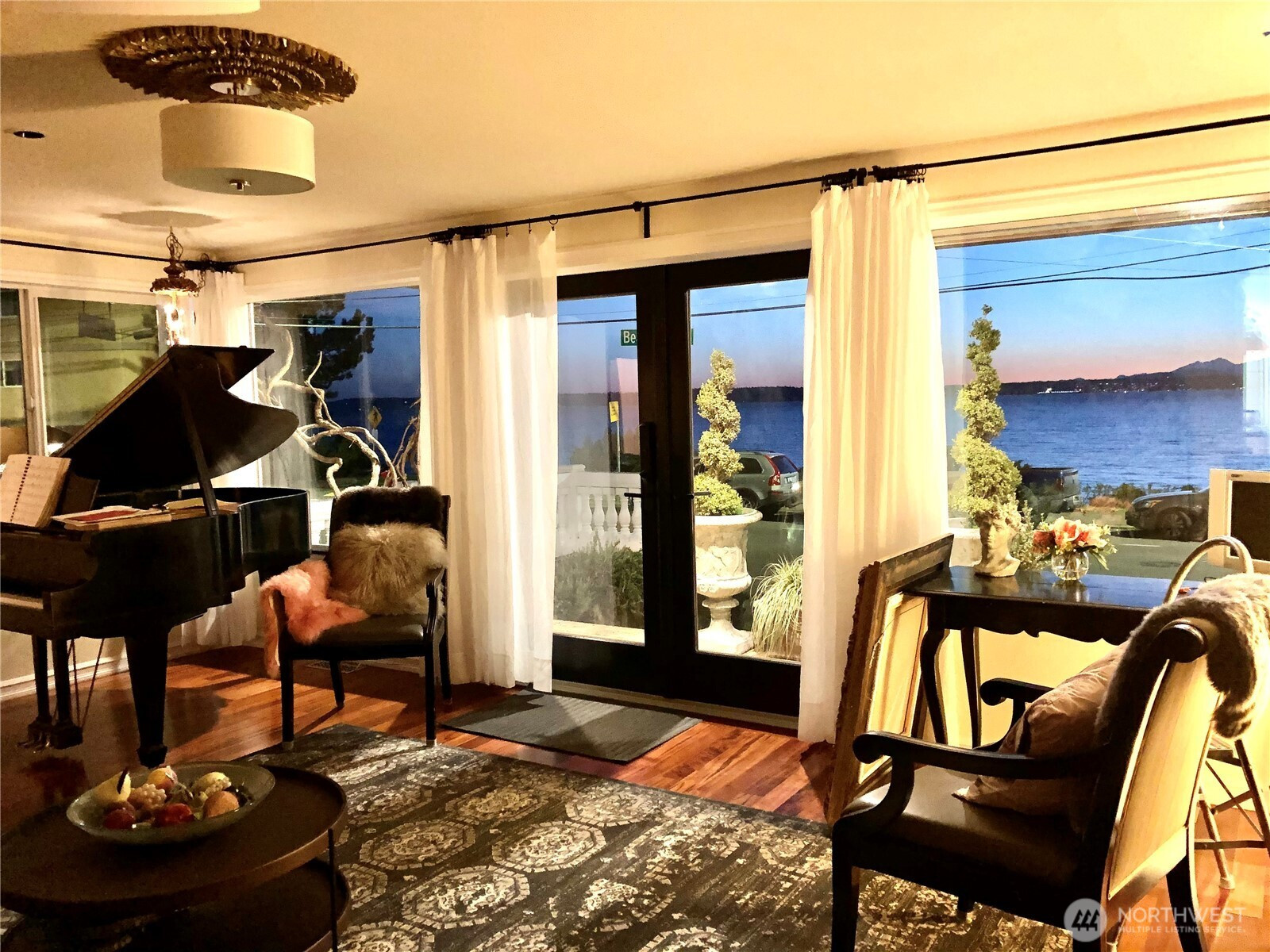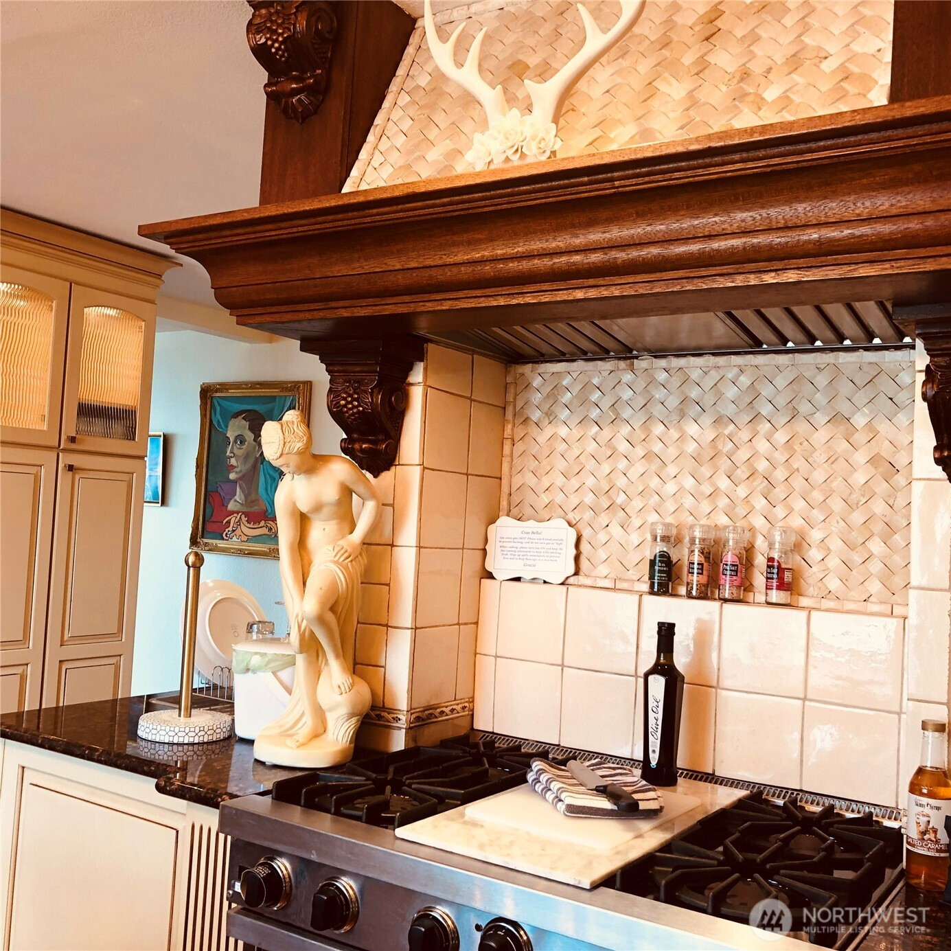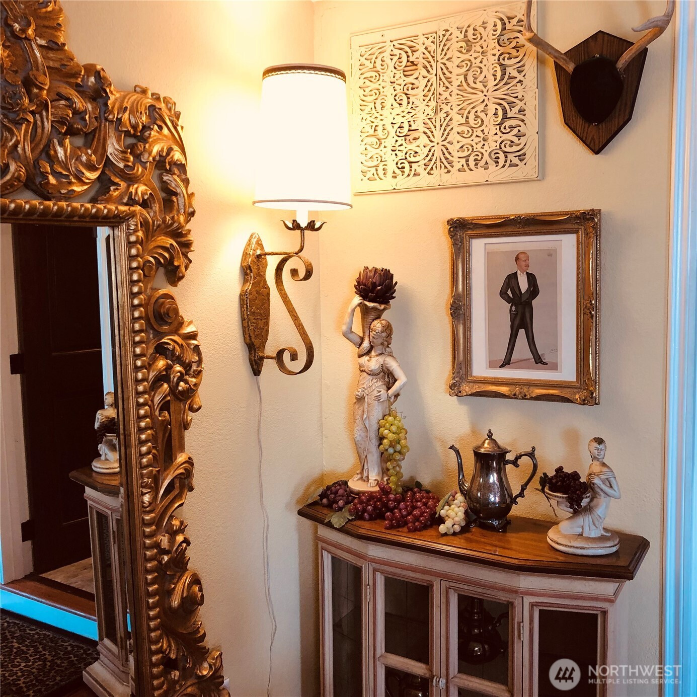 Amazing property, reminiscent of an Italian Villa, w/ protected water views of Puget Sound on Beach Drive. This opulent stone manse presents a once-in-a-lifetime opportunity for lavish living. La Villa Rustica is a palatial residence w/marble floors & fireplace, overflowing with crystal chandeliers & golden flourishes. True chef’s kitchen w/ gas range and all-Viking appliance, classic cabinetry of Provence & stone counters, & built-in professional pizza oven. Main floor office (or 3rd bedroom) w/bedroom suite with sandstone shower worthy of a Roman emperor. Upstairs can be a separate guest suite or an amazing primary suite with marble fireplace, wine bar & stone balcony w/water views. Gracious Italian gardens, fountains & rare 2-car garage.