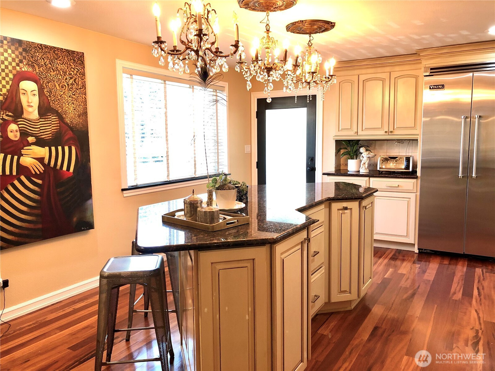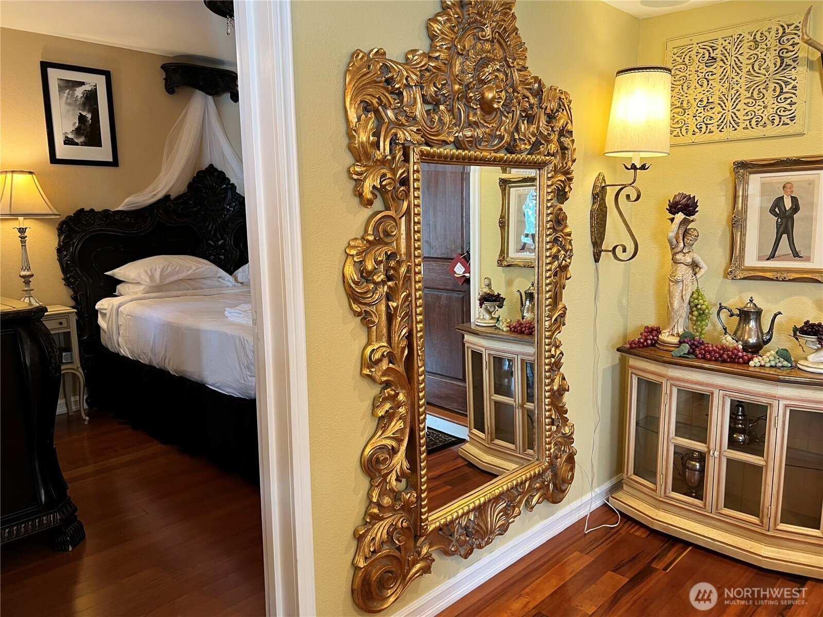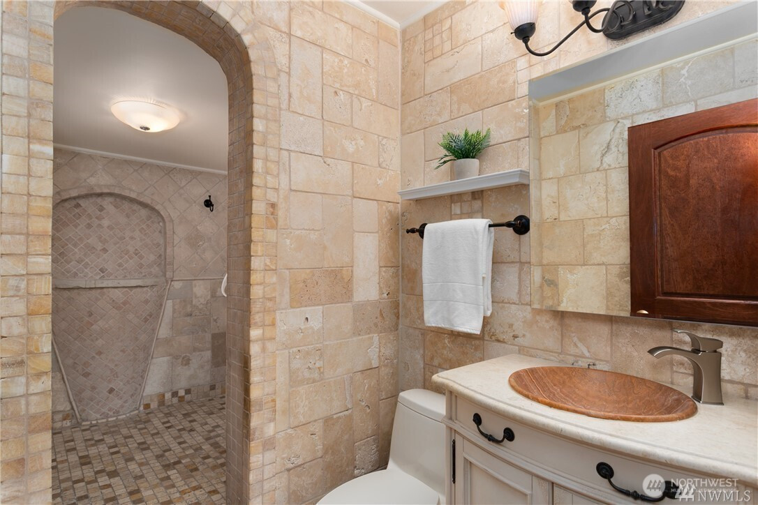 Amazing property, reminiscent of an Italian Villa, w/ protected water views of Puget Sound on Beach Drive. This opulent stone manse presents a once-in-a-lifetime opportunity for lavish living. La Villa Rustica is a palatial residence w/marble floors & fireplace, overflowing with crystal chandeliers & golden flourishes. True chef’s kitchen w/ gas range and all-Viking appliance, classic cabinetry of Provence & stone counters, & built-in professional pizza oven. Main floor office (or 3rd bedroom) w/bedroom suite with sandstone shower worthy of a Roman emperor. Upstairs can be a separate guest suite or an amazing primary suite with marble fireplace, wine bar & stone balcony w/water views. Gracious Italian gardens, fountains & rare 2-car garage.