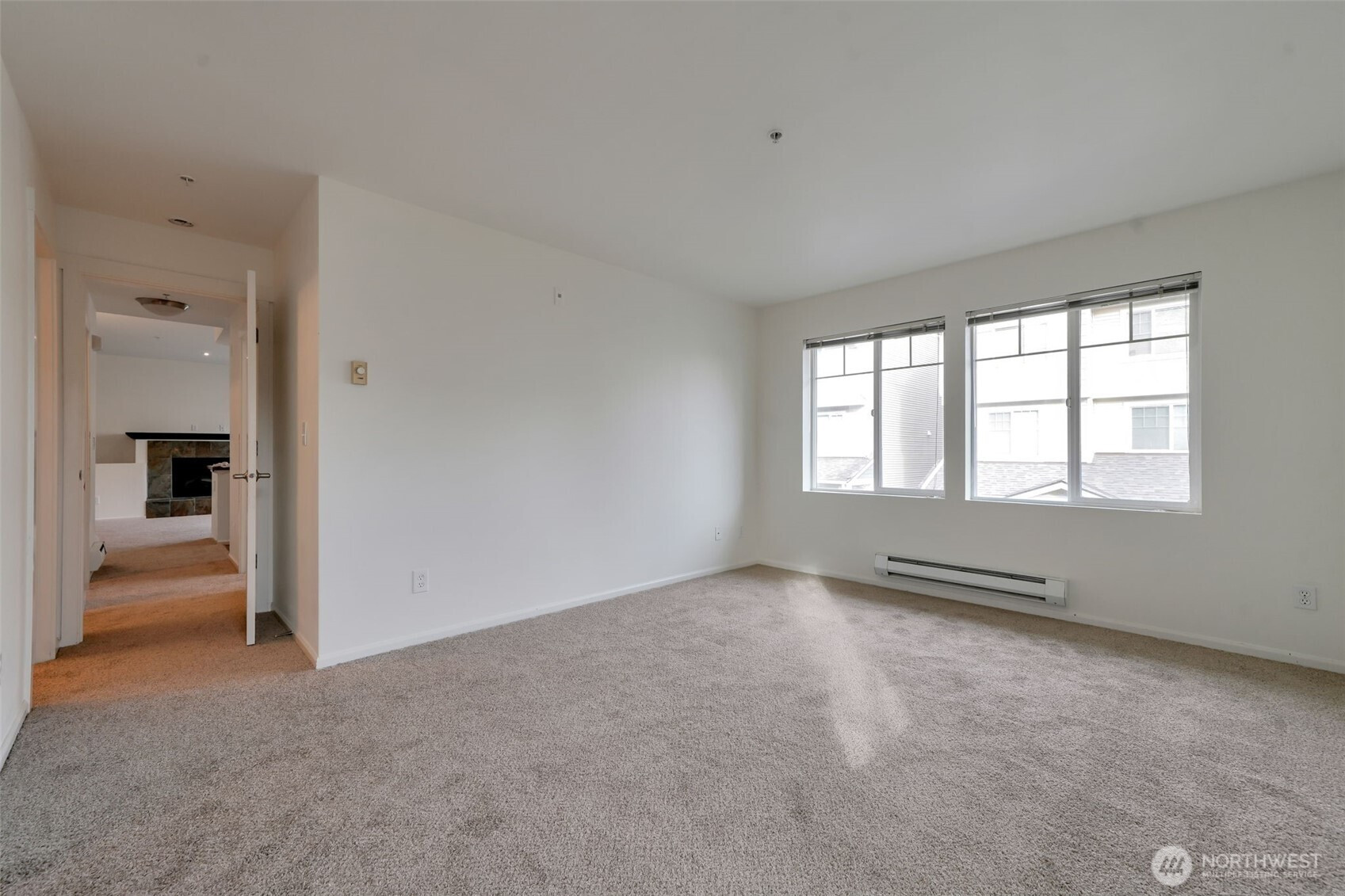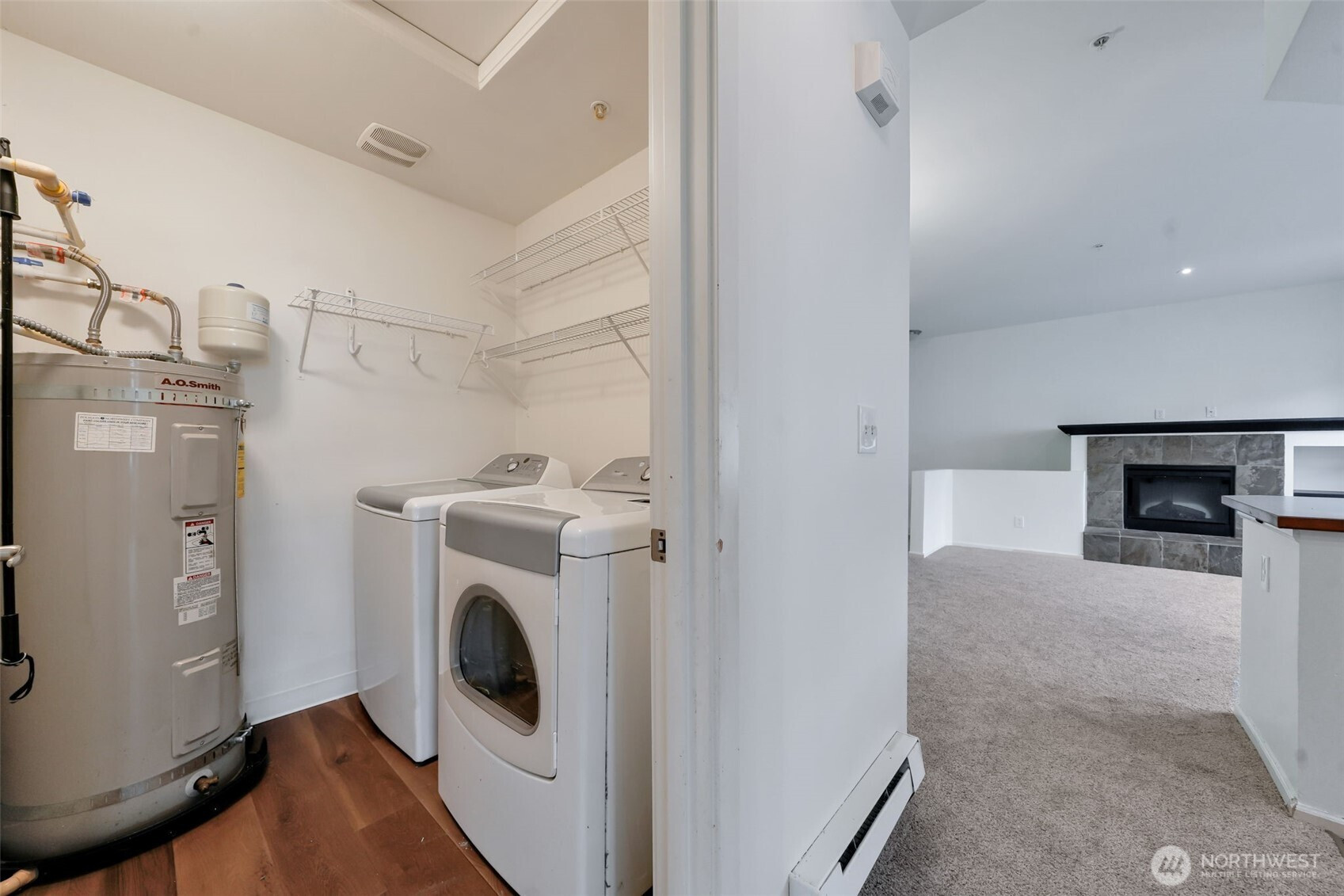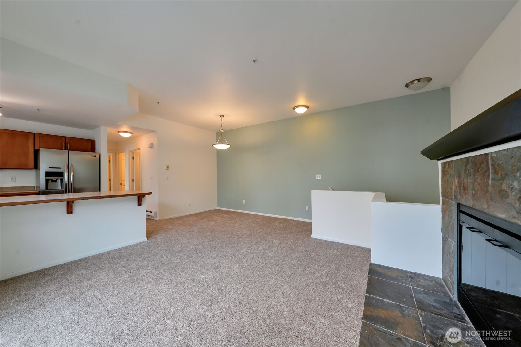 Clean and charming 2-story condo in a very low-turnover and quiet Seatac community. This Bright, upper level 2-bed, 1-bath home offers 972 sq. ft. of comfortable and open living space. Brand New Roof! Fresh Paint and New Carpet throughout. Kitchen includes stainless steel appliances, and seller is crediting $1,800 towards NEW Appliances. Enjoy a cozy fireplace, private balcony, and a spacious primary bedroom with walk-in closet. Attached garage for added convenience. Excellent quiet location near Southcenter Mall, Sea-Tac Airport, light rail, and local amenities. Move-in ready! Fantastic opportunity to update to your taste!