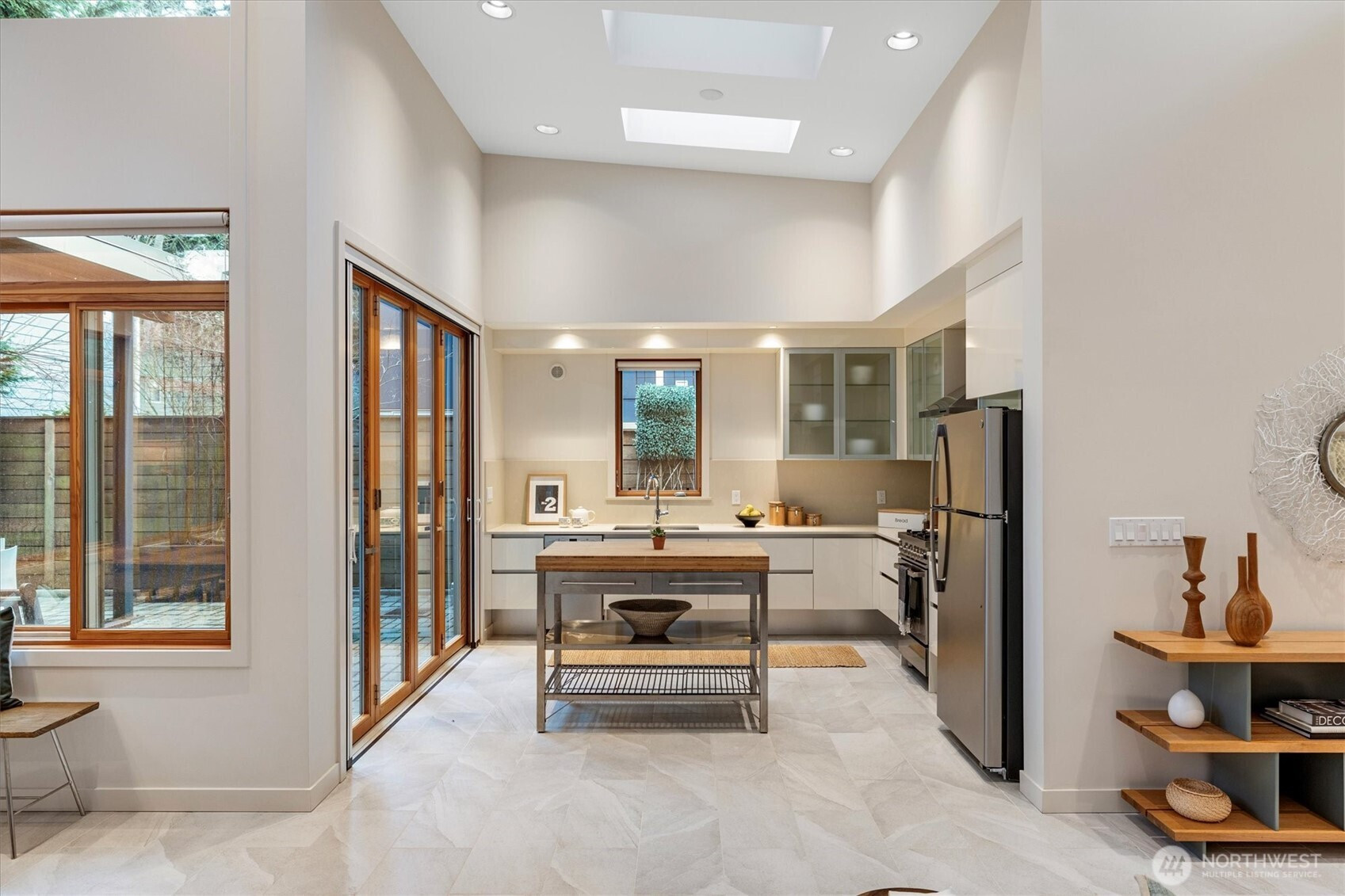 Light filled architectural masterpiece! Designed by the renowned ABKJ Architects & custom-built in 2016, this level-entry rambler presents a seamless blend of aesthetic elegance & functional brilliance, with not a single stair in sight. Prepare to be captivated by its illuminating presence, soaring vaulted ceilings, & walls adorned with expansive windows, including clerestory windows, that invite natural light into every corner of its immaculate interior. This exquisite home stands as a testament to chic, modern design, offering livable spaces that cater to the most discerning tastes. Wonderful open kitchen, a culinary dream outfitted with quartz countertops, sleek European cabinets, & top-of-the-line stainless steel appliances, all designed with both cooking & entertaining in mind. The primary suite is a haven of relaxation, featuring a spa-like ensuite that epitomizes luxury. Bathrooms throughout the home boast opulent porcelain tile, designer fixtures, & custom lighting, crafting spaces that are as rejuvenating as they are stylish. The inclusion of radiant heat & cooling + a tankless hot water system underscores the home’s commitment to comfort & energy efficiency. Located in the coveted Hawthorne Hills, this property enjoys a prime location mere minutes from Children's, UW, 520, downtown, & just a couple of blocks to Metropolitan Market & Burke Gilman Trail. Beautiful mature landscaping & handicap accessibility further enhance its appeal, making it a truly special find!