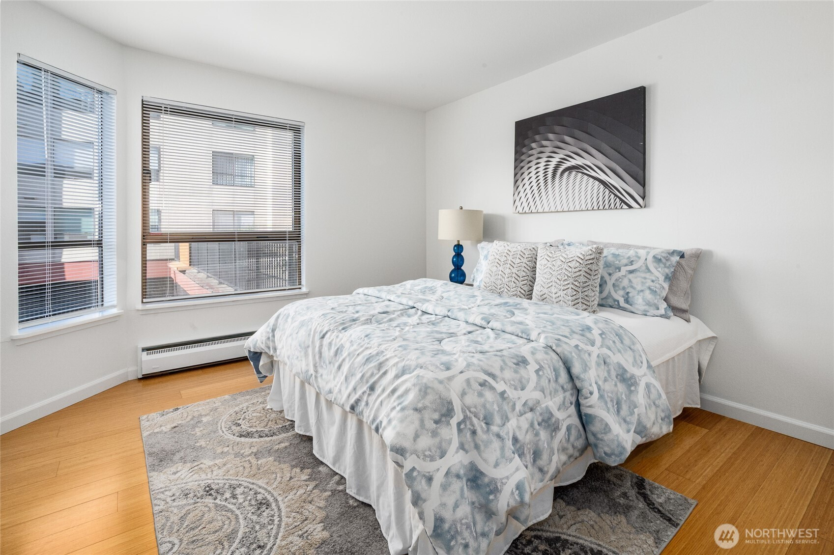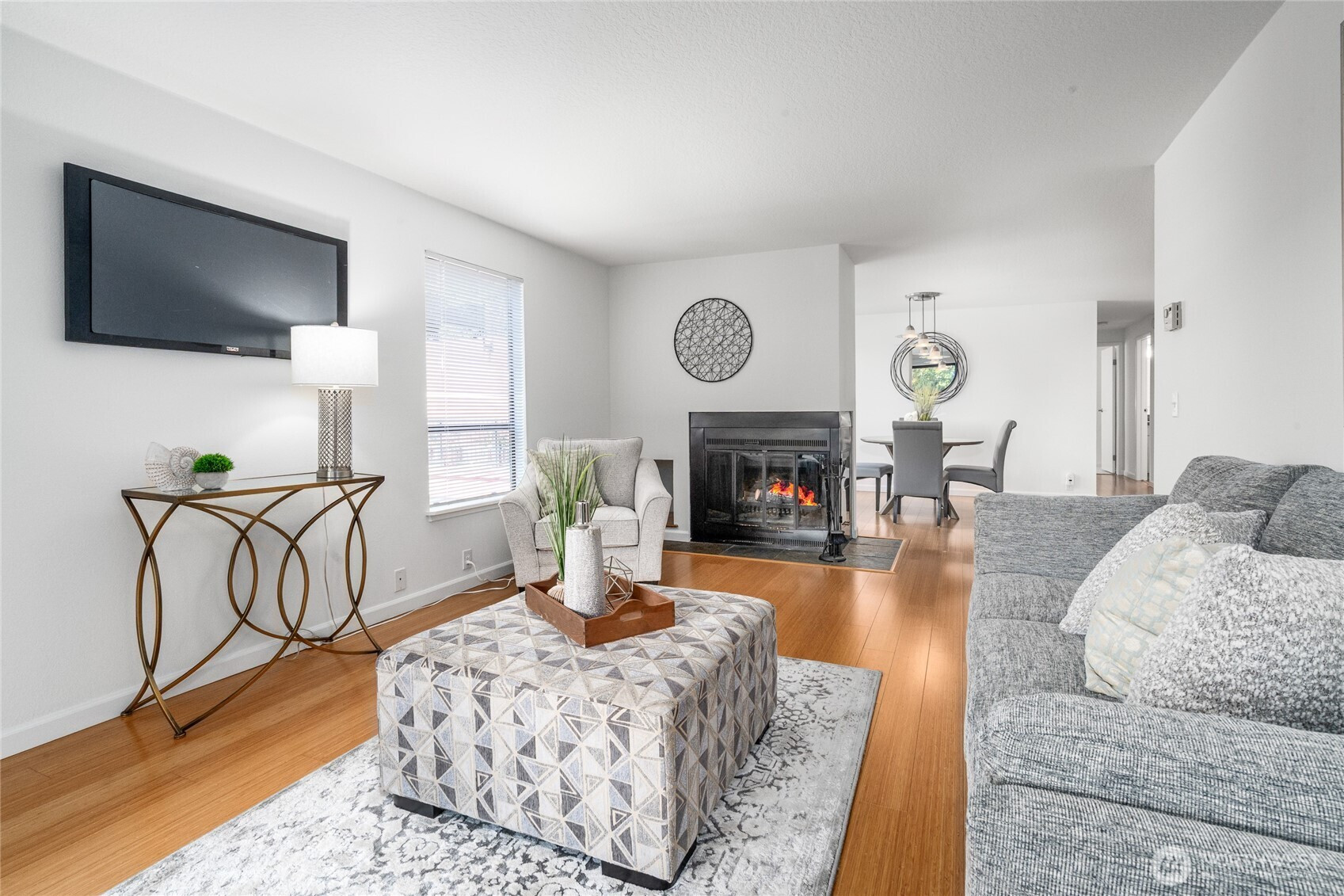 This beautifully remodeled condo in Lower Queen Anne has a private end location with SW facing views & peek-a-boo of Elliott Bay w/ partial views of Space Needle! Bamboo floors sprawl throughout w/ luxury carpeting in Primary. Living Room has expansive deck perfect for entertaining! Cozy double-sided fireplace separates Living & Dining with open concept flow. Kitchen w/ eating bar & updated cabinets, granite counters & SS appliances. Primary w/ walk-in closet & ensuite bath & new quartz counters. Large 2nd Bedroom w/ built-ins adjacent to 2nd bath w/ limestone tiling. Laundry Room & storage! Common garage parking. Adjacent to Kinnear Park—wooded trails/dog park/tennis courts. Walkable downtown Seattle location, lifestyle & long-term value.