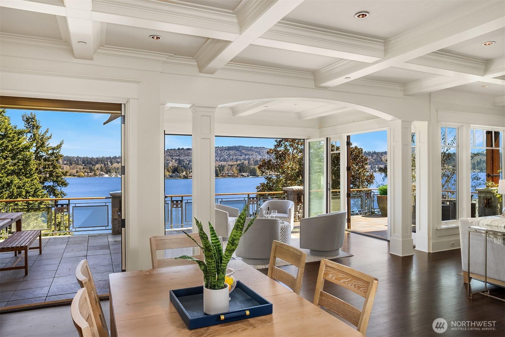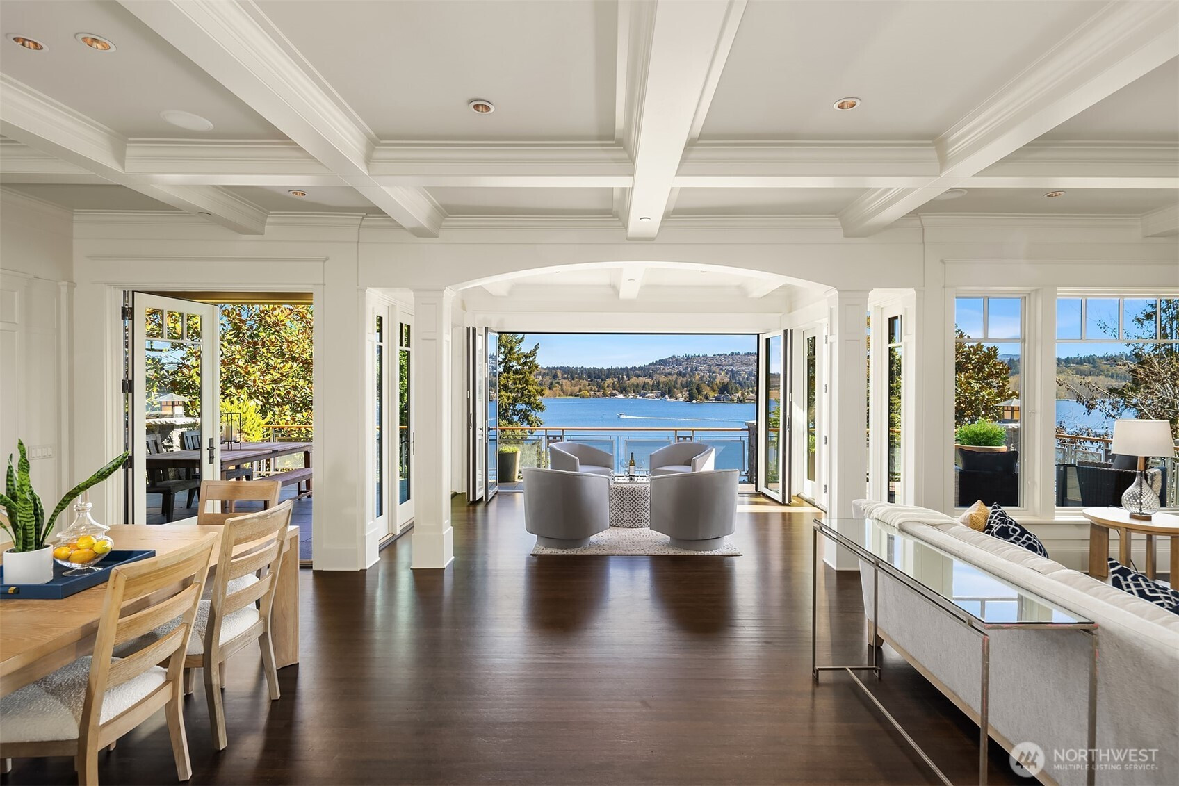 A Modern Craftsman has come available on the desirable north end! Offering 90 feet of sparkling waterfront, a boater's dream dock & an unforgettable beachside guest house, this exceptional property is set on a 1/2 acre of richly manicured grounds w/ a pancake flat lawn stretching right to the water's edge. Inside, experience timeless architectural detail...chubby triple crown molding, board-and-batten 3/4 wainscot, an absolute exquisite level of craftsmanship awaits. Entertain in the Epicurean's dream kitchen where a massive island anchors the rm, offering space for gathering, prepping & entertaining. Flow seamlessly into the Great Rm, where an entire window wall & double sets of French doors open, blurring the line between the outdoors & the in. A separate upper wing hosts an expansive office/apartment suite w/ kitchenette ideal for work, guests, or multigenerational living. Retreat to the main flr primary, a sanctuary in itself, w/ stunning views & bath area reminiscent of a Four Seasons spa. The lower level unfolds into a wonderland of space w/ 3 bdrms (1 an ensuite), exercise + big bonus/billiard rm. At the shoreline, discover a charming 1-bdrm beachhouse w/ upper view loft that could be the perfect music rm, office or art studio. Control 4 smart home. 3 laundry rms. 5 bdrm/4.5 bth, 5,535 sf main house, 1 bdrm/1bth, 950 sf casita. With a 3-car garage, generous auto court & newer boat ready dock, you'll never want to leave. Welcome home to the ultimate in wtrfrnt living!
