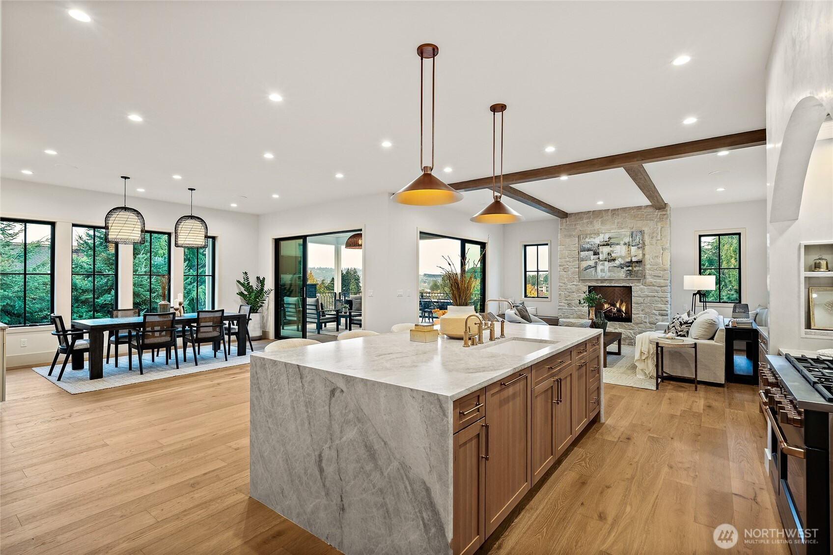 Luxury new construction in one of Seattle's premier neighborhoods, with access to a private beach club, tennis courts, top rated schools and nearby park- this home is a rare blend of elegance and functionality. Presented by Thomas Group LLC, This 4BR, 3.25BA VIEW home impresses with soaring ceilings & chef’s kitchen w/island, high-end Cafe appliances, walk-in pantry, & coffee bar. Open-concept living & dining feature gas fireplace and custom buffet. Main floor flows seamlessly to a covered deck with fireplace, showcasing stunning lake views -perfect for year-round entertaining. Main floor includes spacious office with built ins & cozy den with gas fireplace. Upstairs features 3 oversized bedrooms and Luxe primary suite offering soaking tub, heated floors & shower; all bedrooms feature custom closets. Extras include A/C, 200+ bottle wine room, 2 flex rooms, functional mudroom & oversized 2-car garage w/basketball hoop. This is Laurelhurst living at it's finest. Seller offering a 1.5% CREDIT towards closing costs!