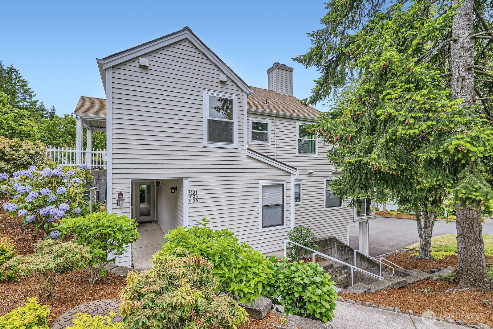 This impeccably maintained 2 bedroom, 1.5 bath end unit is flooded with light and has western views from the deck and living room. Most recent updates include brand new carpet in the bedroom and new SS range & microwave. The primary bedroom boasts expansive closets and a full bath. Another half bath and bedroom will accommodate visiting guests. There is a convenient pass-through from the kitchen to the dining area. The electric fireplace with its beautiful custom mantle will warm you on those chilly eves. A newer furnace is ready for A/C, if desired. The oversized garage has room to spare for extra storage. The building's exterior was just painted, including exterior doors; deck surfaces & railings redone and gutters replaced.