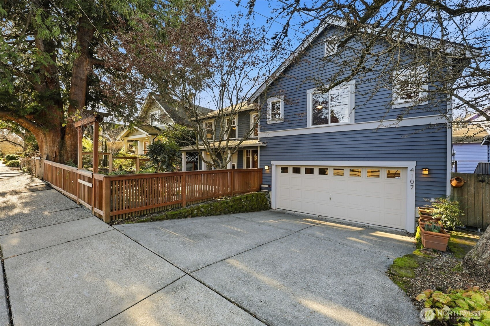 Located on a coveted street in the desirable Pigeon Point neighborhood of West Seattle, this special 4-bedroom home is on the market for the first time since construction. Thoughtfully cared for with tasteful updates, the home blends quality craftsmanship with comfortable, timeless living. Enjoy the seamless indoor-outdoor connection in the living room that features lg west-facing windows & oversized wood-framed sliding doors that open to deck. Perfect for everyday living & entertaining, the striking media wall anchors the room, showcasing a tiled gas fireplace w/ raw wood mantel, custom cabinetry & TV w/ surround sound. The most discerning cooks will appreciate the lg, updated kitchen with abundant wood cabinetry, granite counters, stainless KitchenAid appliances & lg west-facing over-sink window. A true retreat awaits in the primary suite, featuring lg walk-in closet & updated full bath w/ wide dual-sink vanity, granite counters, tiled tub surround, porcelain tile floors. 2nd upper bedroom and updated full hall bath provides options for use. Daylight lower level expands the home’s versatility w/ 2 lg bedrooms, 3rd full bath, & spacious utility room w/ storage. Oversized 2-car garage has EV charger, ample storage space & workbench. Easy care hardscaping in back & front courtyard patio with surrounding drought tolerant plantings. Do not miss this rare opportunity to own a quality-built home in a prime location with easy access to parks, dining, beaches and downtown Seattle.