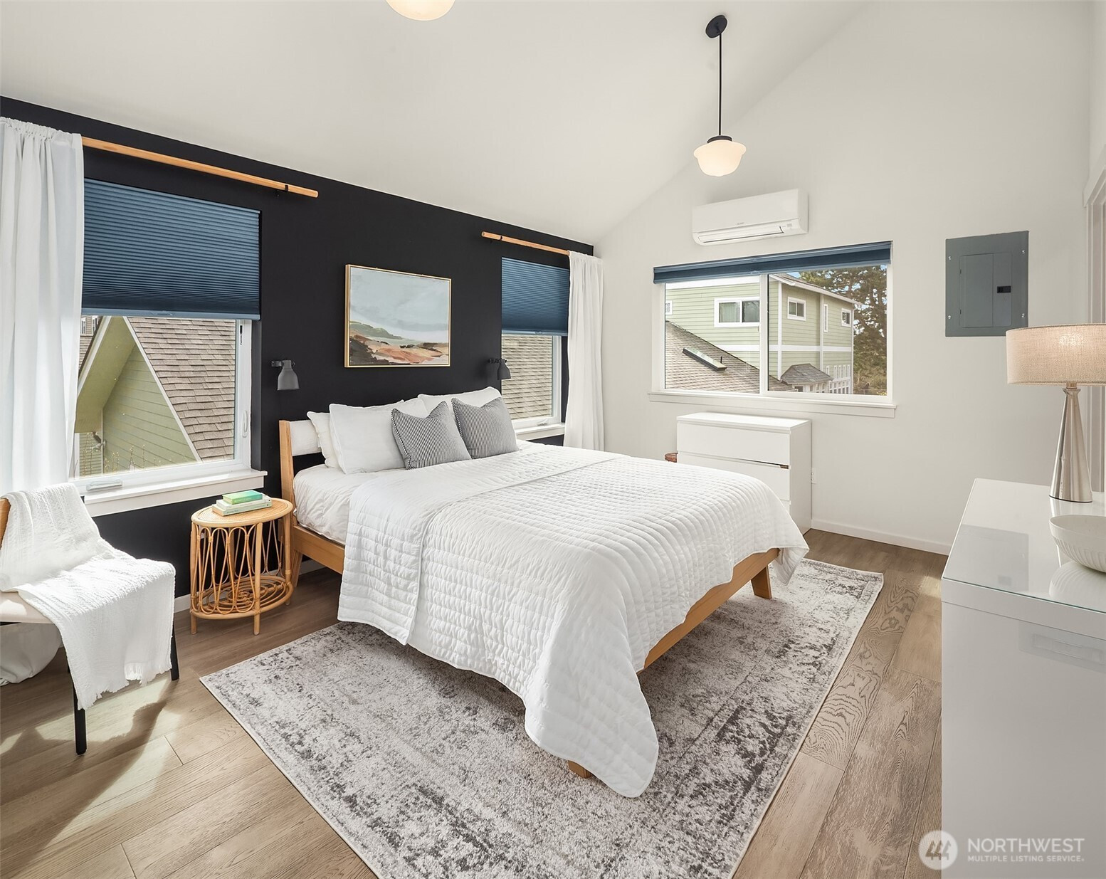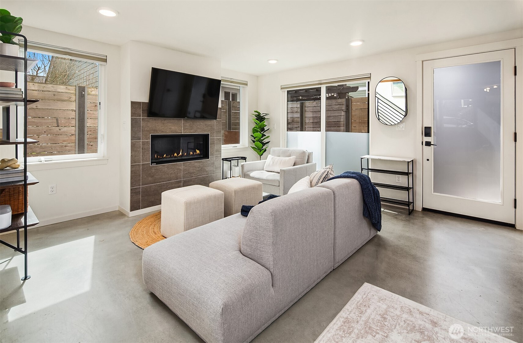 Maple Leaf standalone cottage built 2019 by Ashworth Homes - modern finishes and a layout that just works. Tucked off the main street, the main level features concrete floors, a gas range and fireplace, quartz counters and custom hickory built-in that doubles as a standing desk - warm, functional, and beautifully crafted. Enjoy outdoor living with a fully fenced private patio and garden space. Upstairs, tall windows pour light into the stairwell before opening into a stunning bedroom with vaulted ceilings, walk-in closet, and a full bath. At golden hour, the bedroom glows. Tankless water heater, ductless mini-splits, washer/dryer, custom blinds and designated parking with EV charging hook-up. No HOA, no rental restrictions - perfect as a primary residence or investment property for short-term or long-term rentals. Minutes from Green Lake, PCC, Amazing cafes and restaurants and freeways for commuting. The condo alternative you've been waiting for!