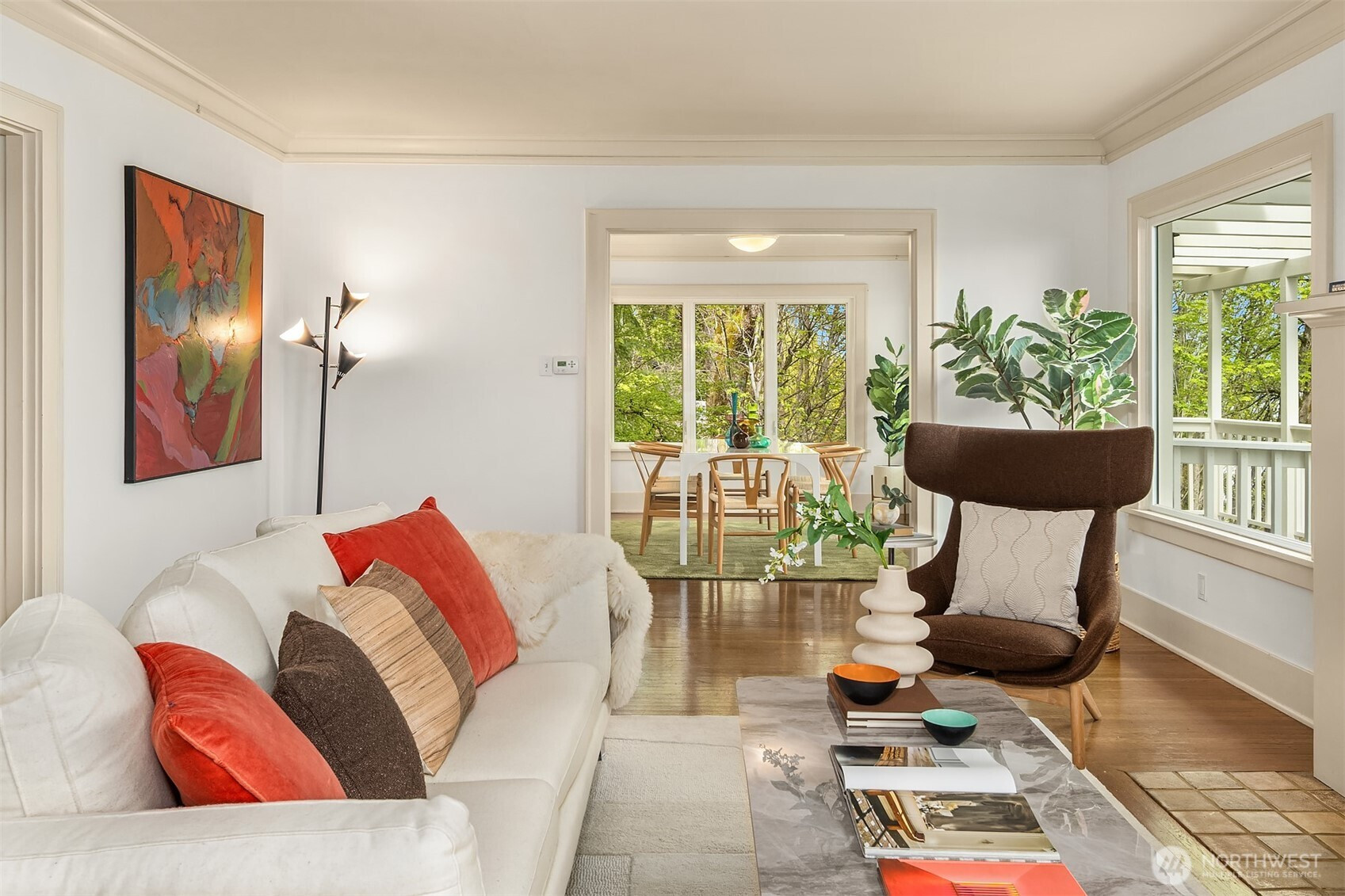 Welcome to a private Madrona retreat, quietly set along one of the neighborhood’s most beautiful, tree-lined streets! Natural light & fresh air move effortlessly through the interiors, creating a seamless connection to the outdoors. Mornings begin w/ sweeping views & the gentle movement of trees—calm, unhurried & distinctly Madrona. The main level is light-drenched, w/ living & dining spaces that flow to a sunny deck—ideal for indoor-outdoor living & easy entertaining. The kitchen extends to an enclosed porch w/ mudroom & shower, adding thoughtful function to everyday life. Upstairs, four well-proportioned bedrooms include a serene primary w/ sparkling water & Mt. Rainier views. The daylight lower level offers a flexible, blank-canvas space for a media room, art studio, or guest retreat, while a detached two-car garage provides added convenience. Tucked into a lush setting, this residence offers rare privacy just moments from the neighborhood’s best—412 36th Ave is ideally located near beloved Madrona favorites, including Hi Spot Cafe, Bottlehouse, Glassybaby, charming art galleries, parks, & more! Lush gardens, winding paths & a quiet, natural setting create a sense of calm—a truly special sanctuary where life feels just a bit more grounded.