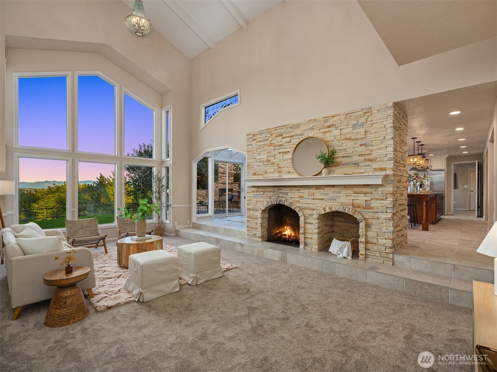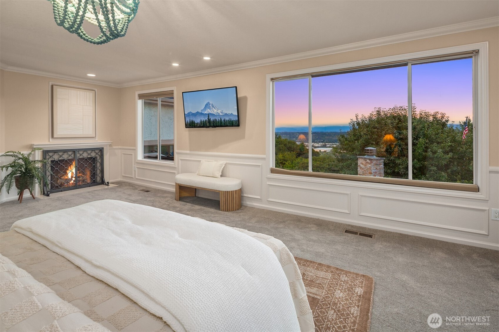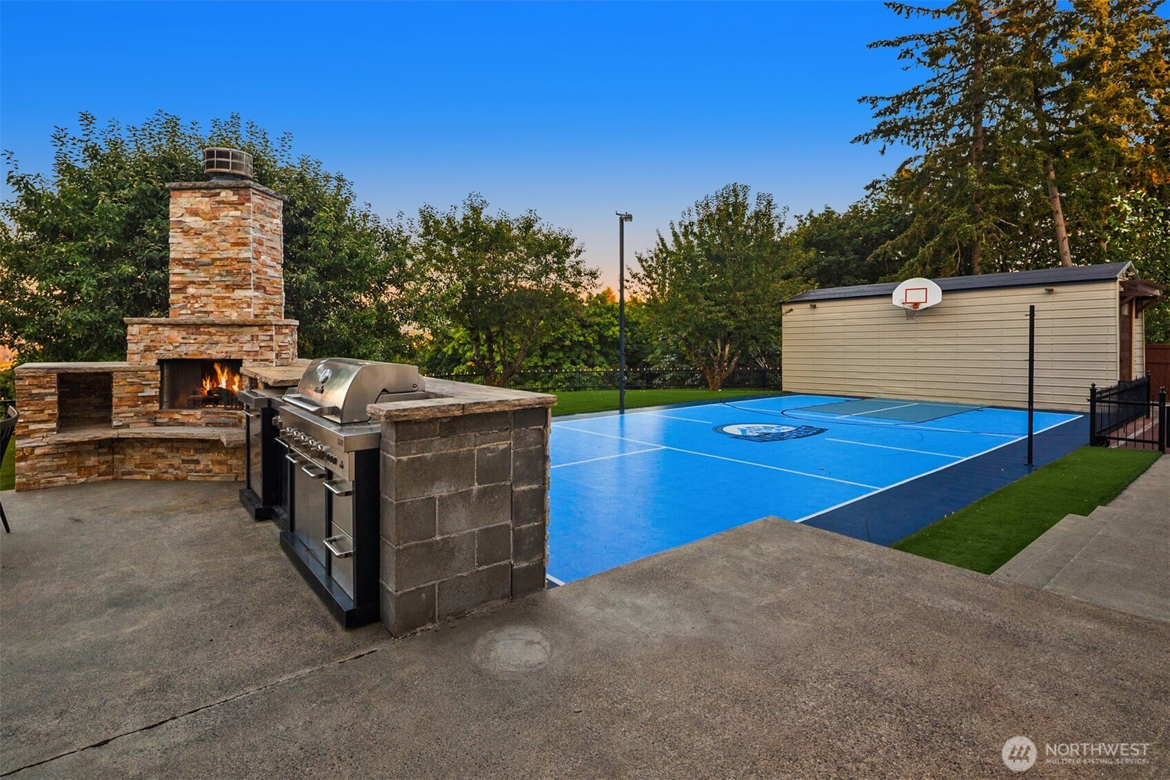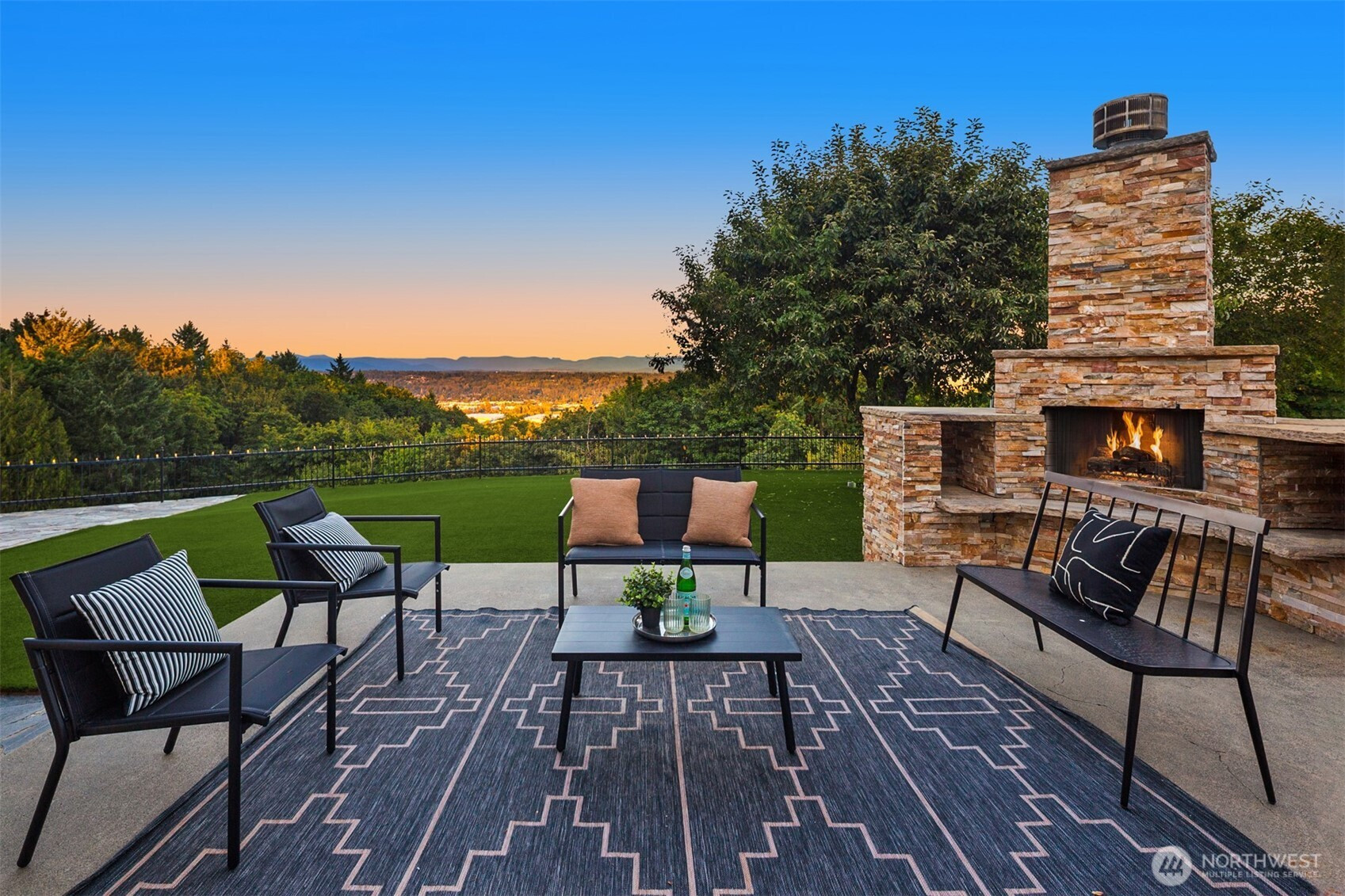 Beautiful Tudor Estate with Cascade Views. Enjoy stunning sunrises over the Cascades and sparkling city lights from this exceptional home in an exclusive 7-home gated community. This elegant home features soaring ceilings and thoughtful updates including new carpet, fresh paint, and updated lighting throughout. The indoor swimming pool room offers a 4-panel sliding glass wall for seamless indoor-outdoor living. A guest apartment with kitchen and bath, outdoor kitchen, sport court, and hot tub provides wonderful entertaining options. The additional 600 SF detached garage offers plenty of storage space. Located minutes from I-5, Hwy 18, and Hwy 167 while maintaining complete privacy - the perfect blend of luxury and accessibility.