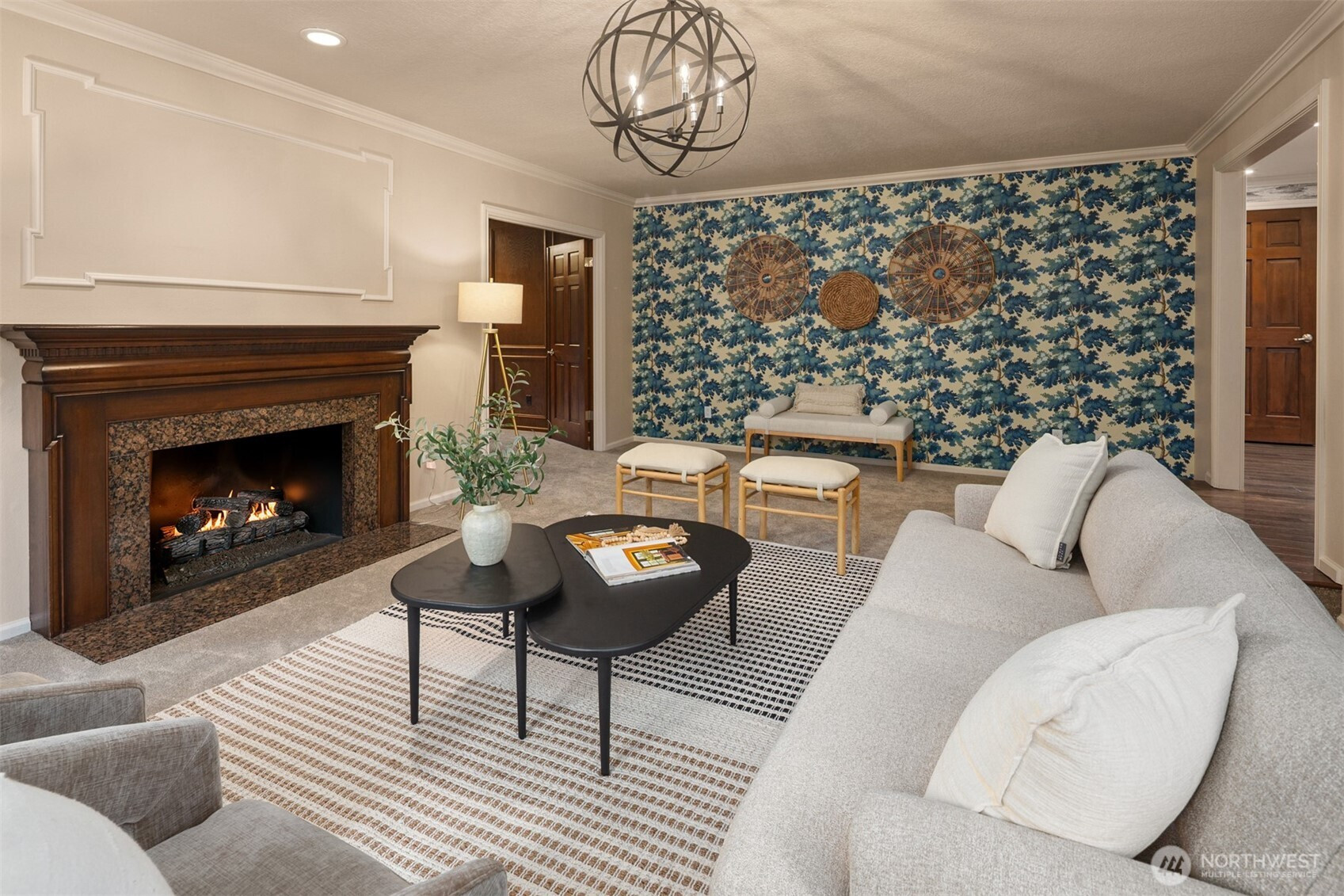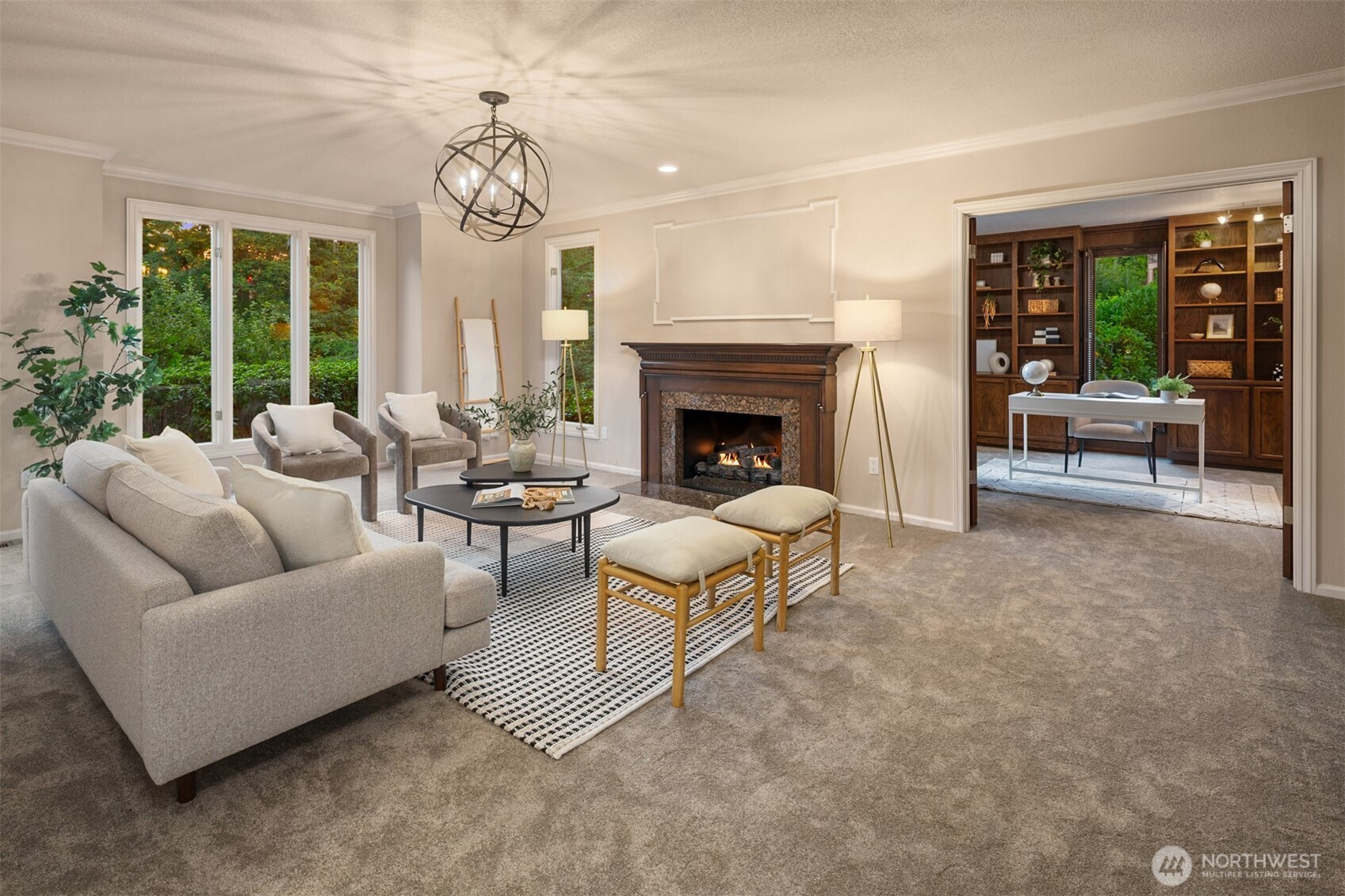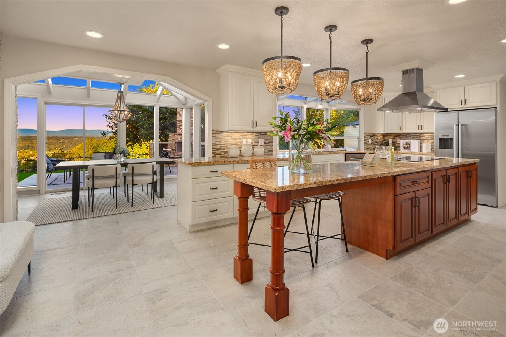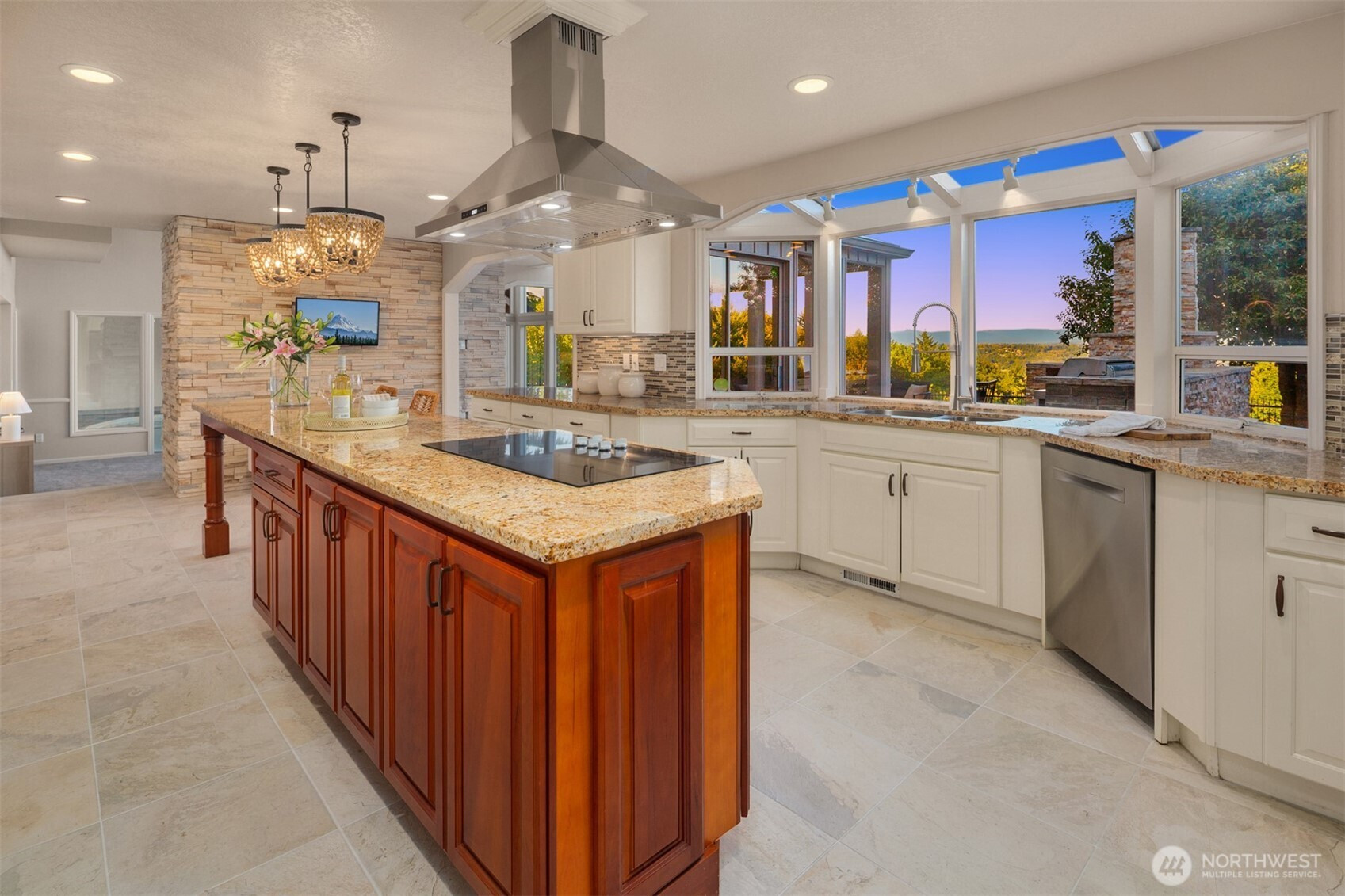 Beautiful Tudor Estate with Cascade Views. Enjoy stunning sunrises over the Cascades and sparkling city lights from this exceptional home in an exclusive 7-home gated community. This elegant home features soaring ceilings and thoughtful updates including new carpet, fresh paint, and updated lighting throughout. The indoor swimming pool room offers a 4-panel sliding glass wall for seamless indoor-outdoor living. A guest apartment with kitchen and bath, outdoor kitchen, sport court, and hot tub provides wonderful entertaining options. The additional 600 SF detached garage offers plenty of storage space. Located minutes from I-5, Hwy 18, and Hwy 167 while maintaining complete privacy - the perfect blend of luxury and accessibility.