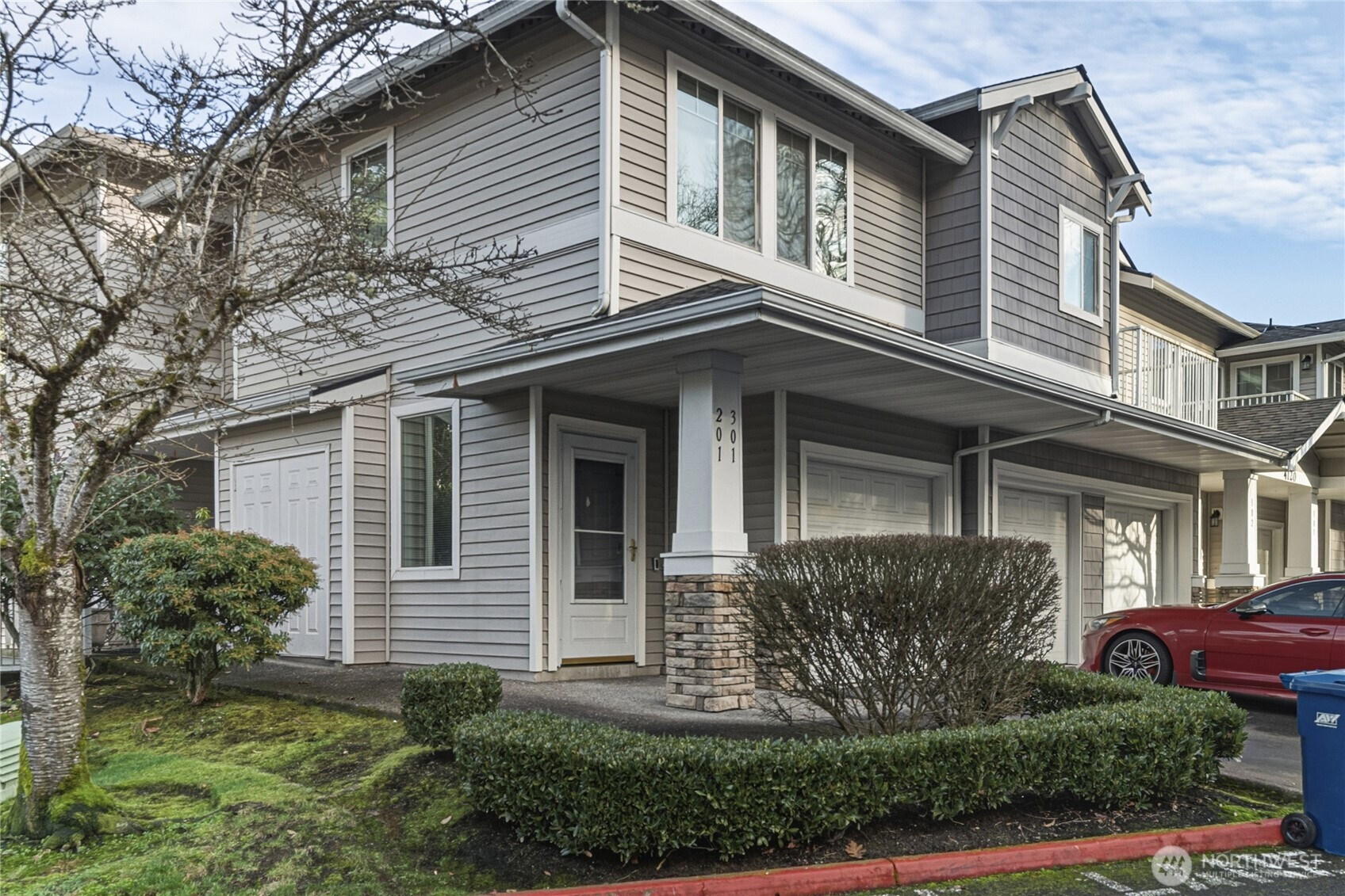 Step into bright, airy living at Terrace of Parkview in this 2 bedroom, 2 bath townhome with vaulted ceilings and oversized windows bringing in abundant natural light. Large open great room with dining space, double doors open to your second bedroom or use it as an office. Full size laundry and full guest bathroom. Primary bedroom has walk-in closet and huge private ensuite bathroom with two sinks. Private one car garage with extra depth for storage. Quick access to I-5 for easy commute north or south, also close to Kent Station, Southcenter shopping and dining a hop and skip up the road.