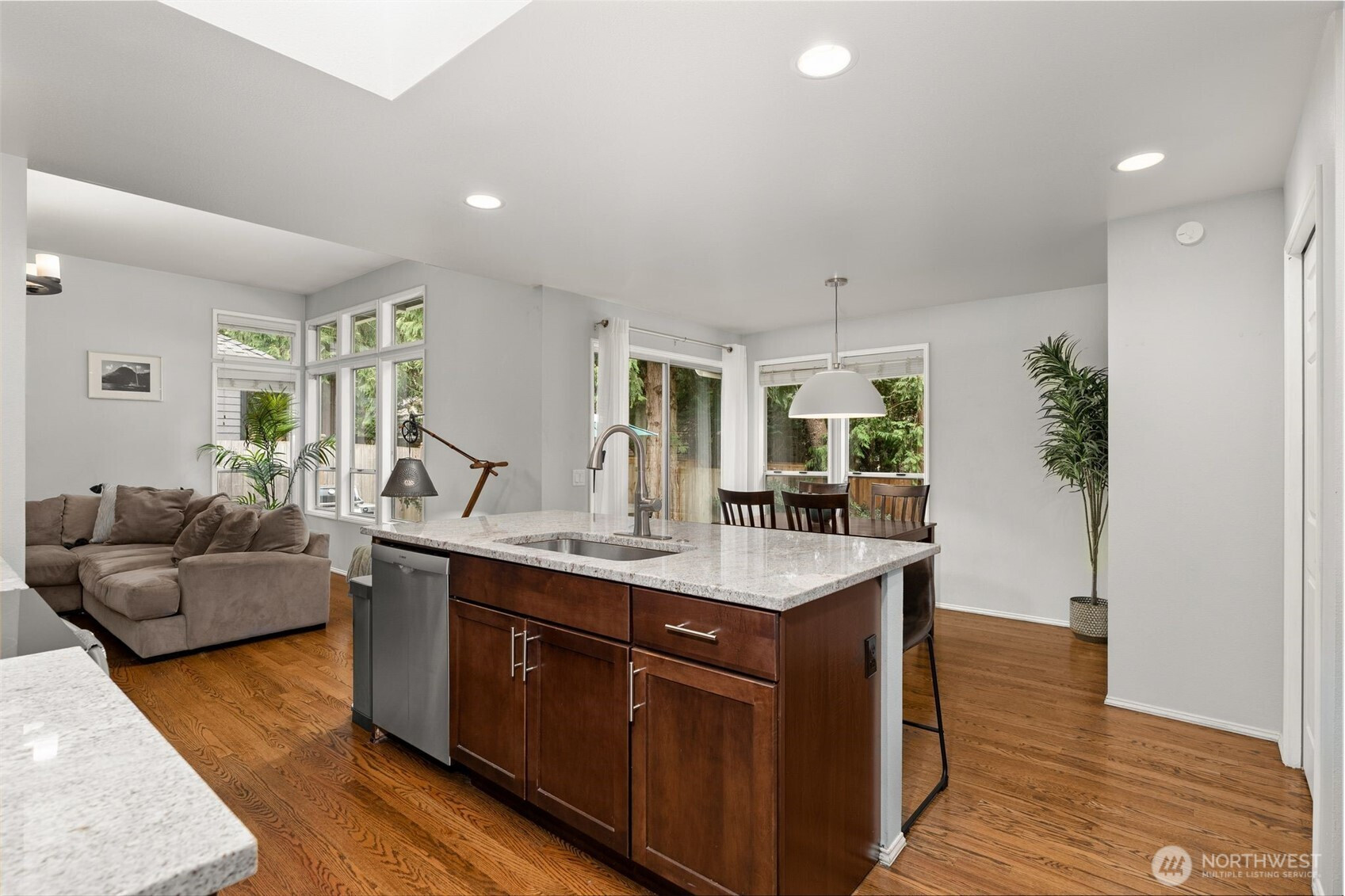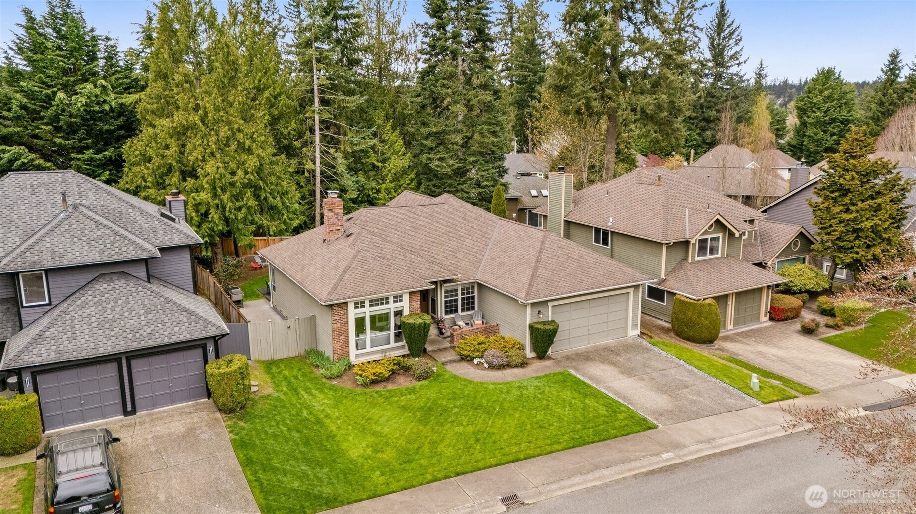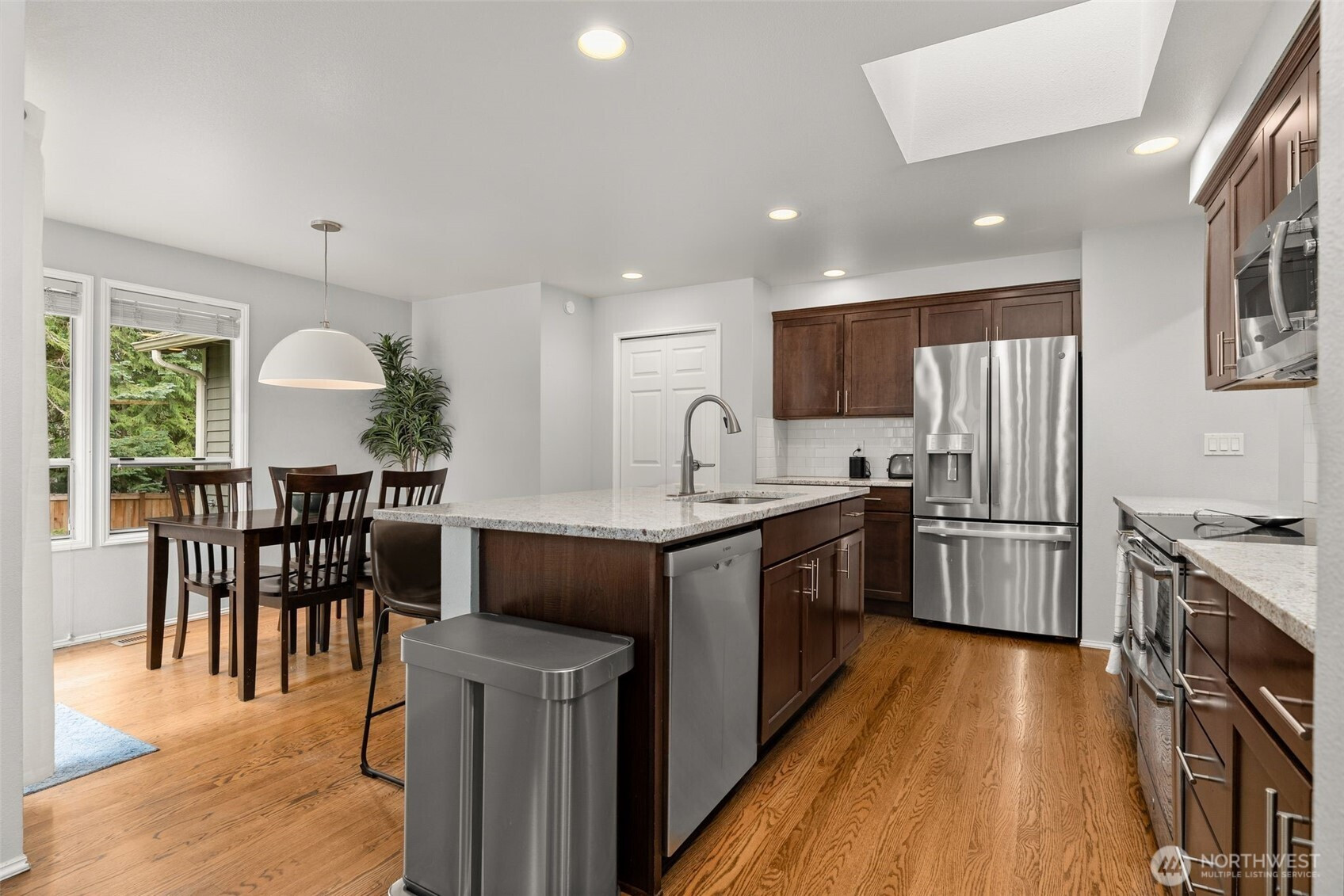 Welcome to an elevated offering in the coveted Summer Meadows enclave of Sammamish, where refined design meets modern functionality. Thoughtfully reimagined, this home showcases a full-scale interior modernization with new architectural doors, designer hardware, curated lighting, and a cohesive, sophisticated palette throughout. A versatile front room is enhanced by French doors and a custom-built Murphy bed, creating a seamless blend of elegance and flexibility. The kitchen is appointed with premium-grade appliances, including a Bosch quiet-wash dishwasher, dual-oven range, convection microwave, and a split-door refrigerator—designed for both elevated entertaining and everyday ease. The primary suite presents a spa-inspired retreat with a custom walk-in shower and designer tile, while secondary baths reflect updated, modern finishes. Year-round comfort is ensured with central A/C and a striking two-way gas fireplace with remote start.Thoughtful enhancements continue with a bespoke laundry room featuring custom cabinetry and folding station, and a fully outfitted garage with EV charging, built-in storage, and upgraded systems. Outdoors, enjoy a private, fully fenced setting with designer pavers and professionally curated landscaping, offering a serene extension of the home. A rare opportunity to own a move-in ready, home in one of Sammamish’s most desirable communities with convenience to nearby parks, Pine and Beaver Lakes, shopping, I-90. Pre-inspected!