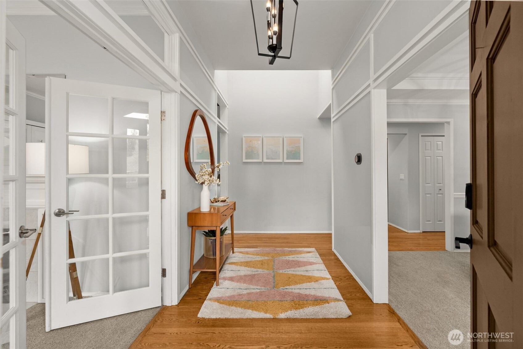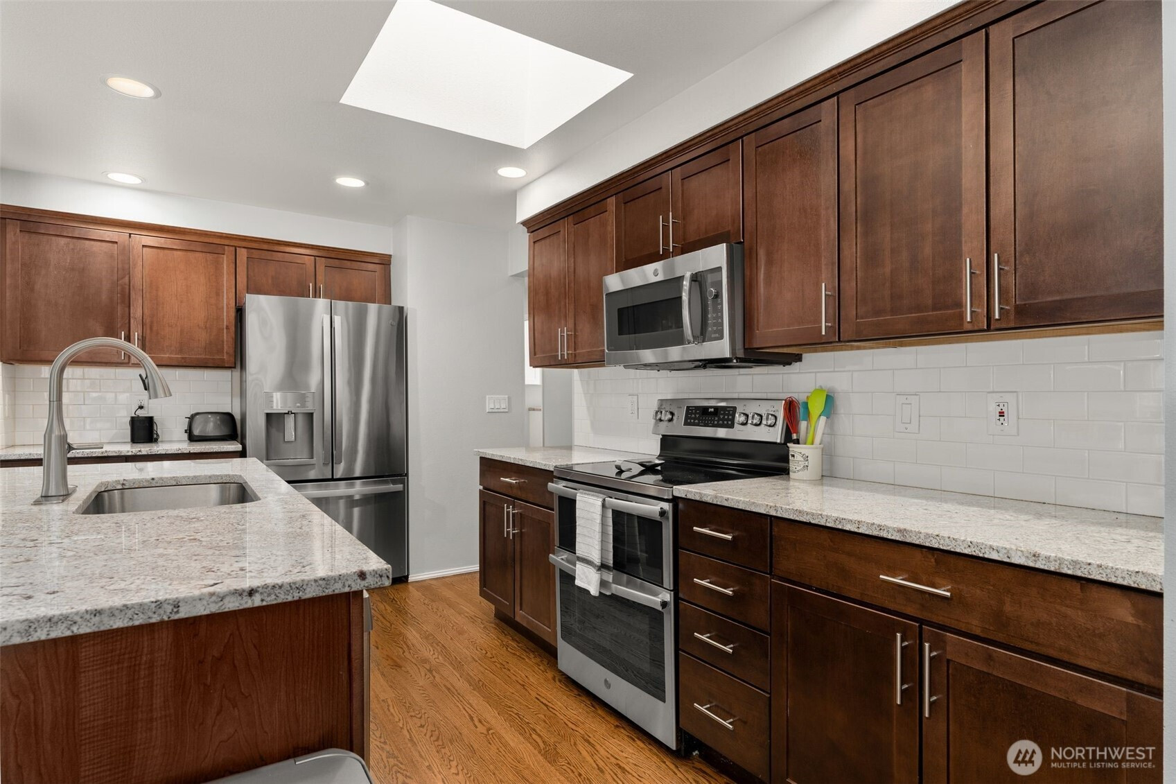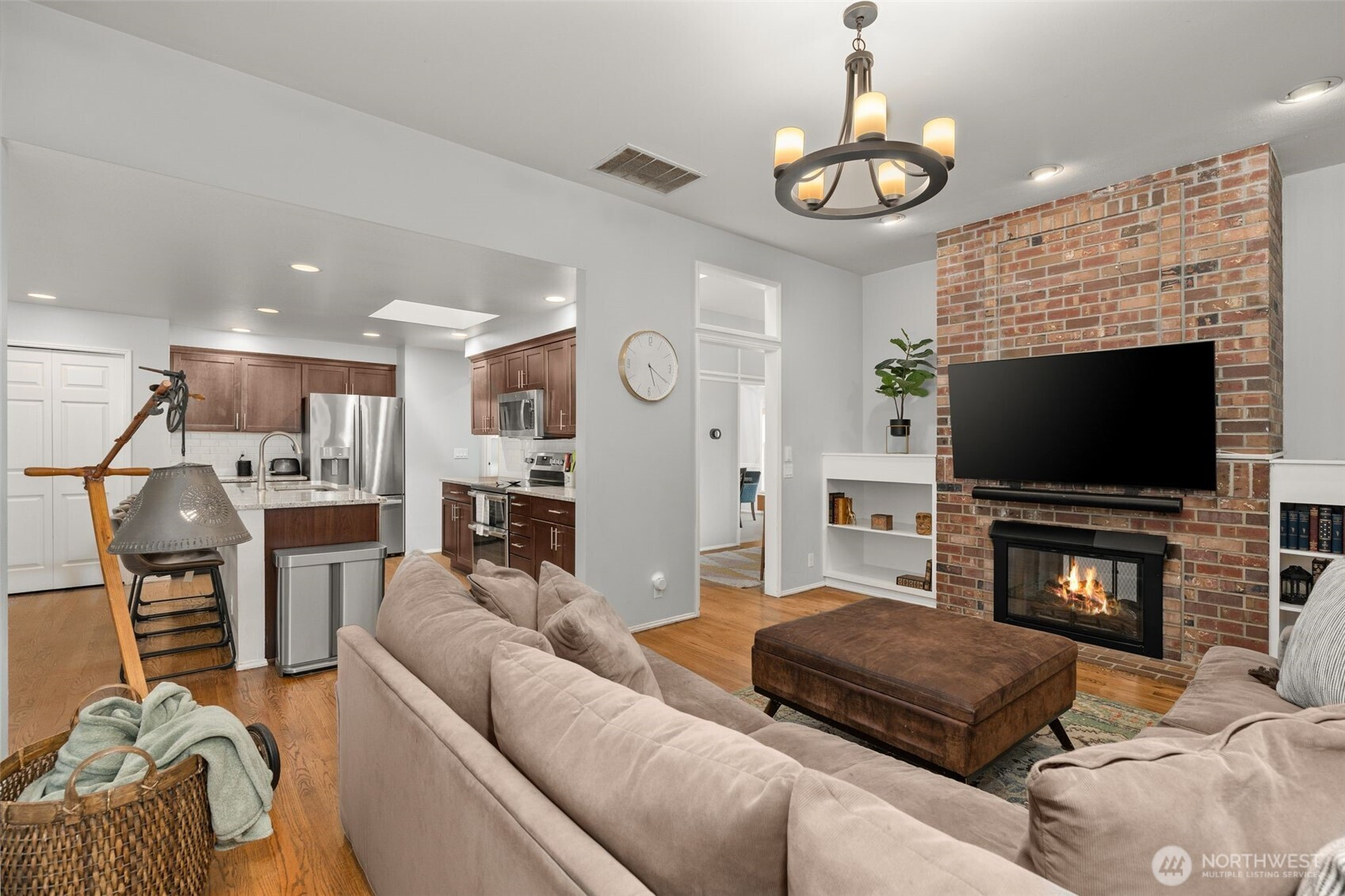 Welcome to an elevated offering in the coveted Summer Meadows enclave of Sammamish, where refined design meets modern functionality. Thoughtfully reimagined, this home showcases a full-scale interior modernization with new architectural doors, designer hardware, curated lighting, and a cohesive, sophisticated palette throughout. A versatile front room is enhanced by French doors and a custom-built Murphy bed, creating a seamless blend of elegance and flexibility. The kitchen is appointed with premium-grade appliances, including a Bosch quiet-wash dishwasher, dual-oven range, convection microwave, and a split-door refrigerator—designed for both elevated entertaining and everyday ease. The primary suite presents a spa-inspired retreat with a custom walk-in shower and designer tile, while secondary baths reflect updated, modern finishes. Year-round comfort is ensured with central A/C and a striking two-way gas fireplace with remote start.Thoughtful enhancements continue with a bespoke laundry room featuring custom cabinetry and folding station, and a fully outfitted garage with EV charging, built-in storage, and upgraded systems. Outdoors, enjoy a private, fully fenced setting with designer pavers and professionally curated landscaping, offering a serene extension of the home. A rare opportunity to own a move-in ready, home in one of Sammamish’s most desirable communities with convenience to nearby parks, Pine and Beaver Lakes, shopping, I-90. Pre-inspected!