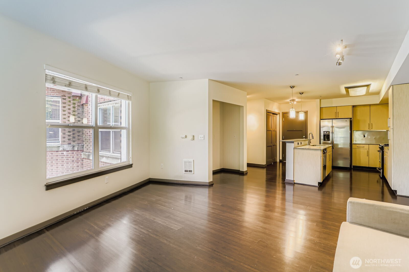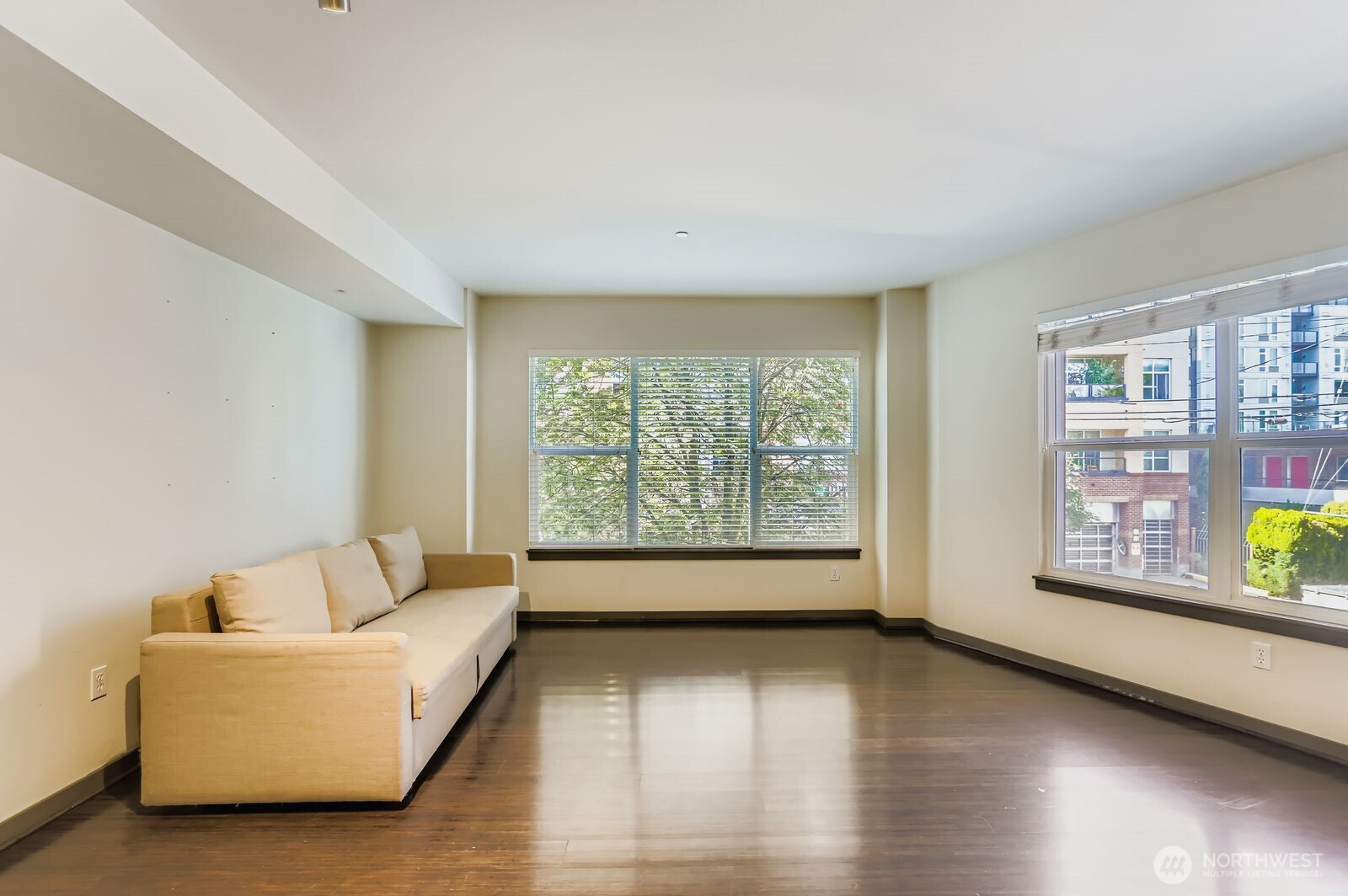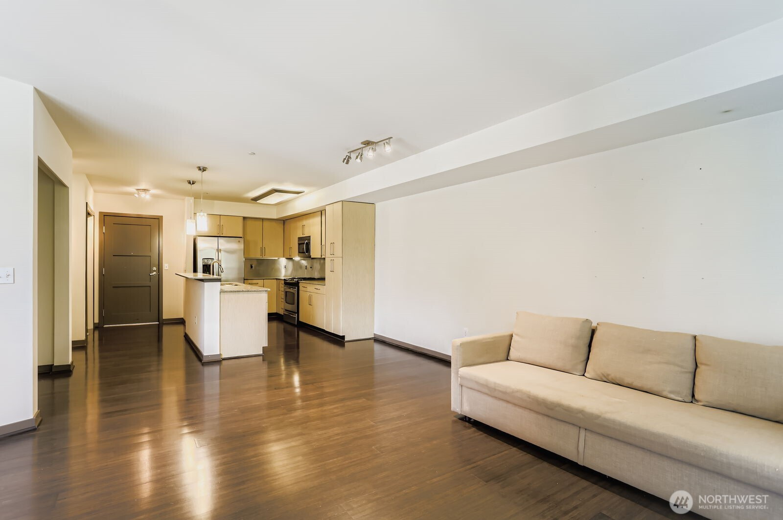 Experience luxury and convenience in this move-in ready condo located in the heart of Green Lake! Unit 207 features a functional, spacious kitchen with stainless steel appliances, gas stove, and breakfast bar—ideal for both cooking and entertaining. The open layout includes easy maintenance flooring, a bright living/dining area, in-unit washer/dryer, and generous storage throughout. The building offers secure entry, a community room, rooftop deck, and garage parking. Just steps to Green Lake, PCC, cafes, shops, and light rail—this location truly has it all. No rental cap and up to 2 pets allowed. Don’t wait—this one won’t last! Future update project fully funded.