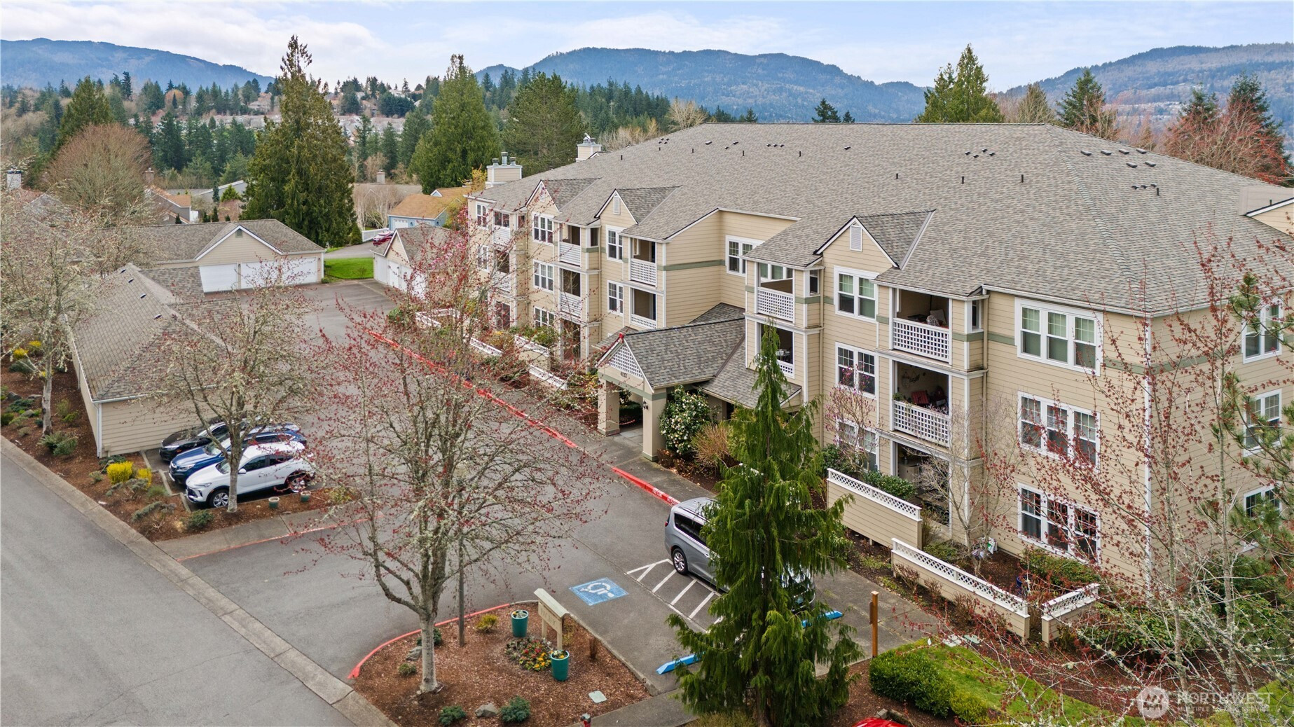 Care-free living awaits in this beautifully remodeled top-floor condo featuring 2 bedrooms, 2 baths, and two private covered balconies in the premier 55+ Providence Point community in Issaquah. The dreamy kitchen shines with stainless steel appliances, quartz countertops, RO system, under-cabinet lighting, and classic shaker cabinetry. Enjoy an open-concept living and dining area with access to an east-facing balcony—perfect for morning coffee and cool afternoon shade. The spacious primary suite offers a second covered balcony, a generous walk-in closet, and an updated bath with a step-in shower. A thoughtful split-bedroom layout places the second bedroom and bath on the opposite side of the home for added privacy. Smart storage solutions include custom pull-out shelves in the hall closet, a space-saving spice rack, and an additional storage room just down the hall. A convenient 1-car garage adds ease to daily living. The Pacific Building—Washington Village’s newest—offers guest parking, inviting gathering spaces on every floor, and a west-facing patio ideal for enjoying afternoon sun and friendly conversation. Experience independent living surrounded by vibrant amenities: indoor pool, clubhouse, fitness classes, tennis, pickleball, putting green, pea-patch gardens, scenic walking trails, and a full calendar of social, cultural, and recreational events.