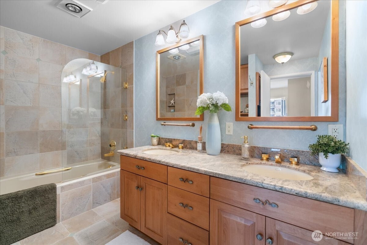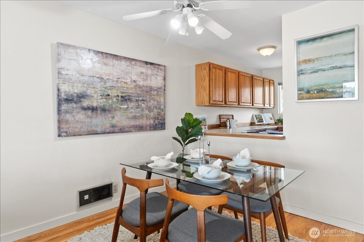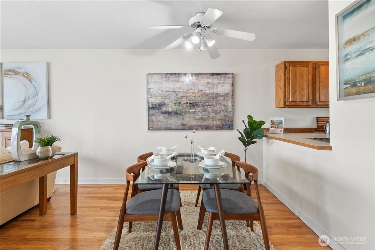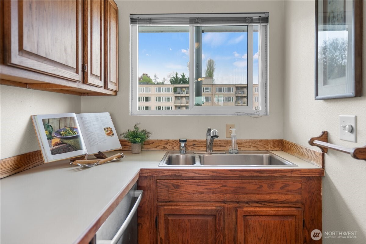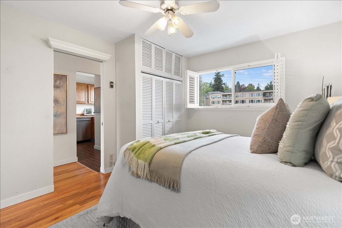 Lakefront living at its finest! Stunning unobstructed views of Lake WA & Mt Rainier from top floor. Seafair + Blue Angels fly overhead. Light-filled rooms, hardwoods throughout, & exquisite custom built-ins & cabinetry. Second open bedroom w/ Murphy bed for convenience, easily convertible w/ built-in flat screen, perfect for entertainment & extended living space. Beautiful kitchen w/ breakfast counter & SS appliances. Love the sliding glass doors onto large deck, great for relaxation, watching boats pass by &soaking in city &sound views. Cool off on hot days w/ SUP , kayaking or swimming off private dock. In-unit laundry. Controlled access entry. 1 dedicated parking space. Prime location, steps from Leschi Market, BluWater, & Daniel's Broiler. No Rental Cap. Welcome Home!