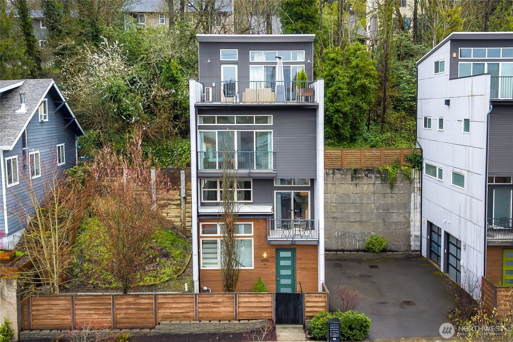 Rare standalone home with a coveted two-car garage, generous lot, and an abundance of natural light—designed for modern city living. Expansive floor-to-ceiling windows flood the home with sunlight, enhancing the open-concept main level and creating bright, inviting spaces that feel both airy and grounded. The layout flows effortlessly, anchored by a sleek and functional kitchen with gathering spaces designed for how you actually live: cooking, hosting, working, and unwinding with ease. Step outside and choose your setting—morning coffee on the deck, fresh air on a private balcony, or evenings on the patio or in the yard. With three distinct outdoor spaces plus a generous side yard, there’s truly a place for every moment. Upstairs, the bedrooms feel private and serene, featuring two ensuite layouts with spacious walk-in closets. A third bedroom offers flexibility for a home office, guest room, or additional living space. With rapid transit at your doorstep and seamless access to downtown Seattle, this home offers convenience without compromise. Close to Amazon and Starbucks HQ, under 10 minutes to Lumen Field and T-Mobile Park—ideal for game days, concerts, and the upcoming FIFA World Cup 2026—this is a home that delivers comfort, flexibility, and city access in one compelling package.