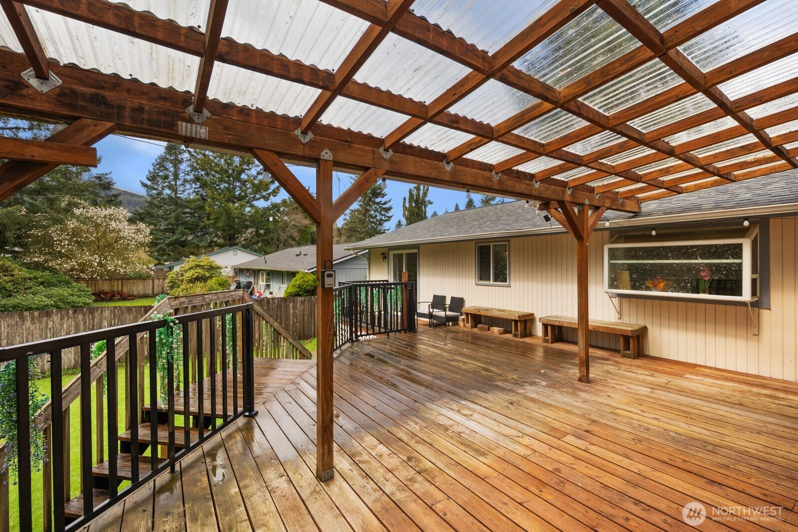 Exceptional opportunity in desirable North Bend! This versatile property offers two separate units, each with its own private entrance, making it ideal for multi-generational living, rental income, or Airbnb potential. Both units feature comfortable and functional 2-bedroom, 1-bathroom layouts, with Unit 2 enhanced by a newly updated kitchen. Major system upgrades include a newer roof, newer furnace, and central A/C, providing year-round comfort and peace of mind. Step outside to enjoy the spacious deck with beautiful mountain views, perfect for relaxing or entertaining. The quiet, mostly flat yard offers easy maintenance and excellent usability for gardening, pets, play, or outdoor gatherings. Conveniently located with easy access to town amenities, commuter routes, and endless outdoor recreation, this home combines flexibility, comfort, and investment potential in one of North Bend’s most desirable settings. Conveniently located with easy access to local amenities, outdoor recreation, and commuter routes, this property is ideal for Airbnb, investment, or multi-generational living.