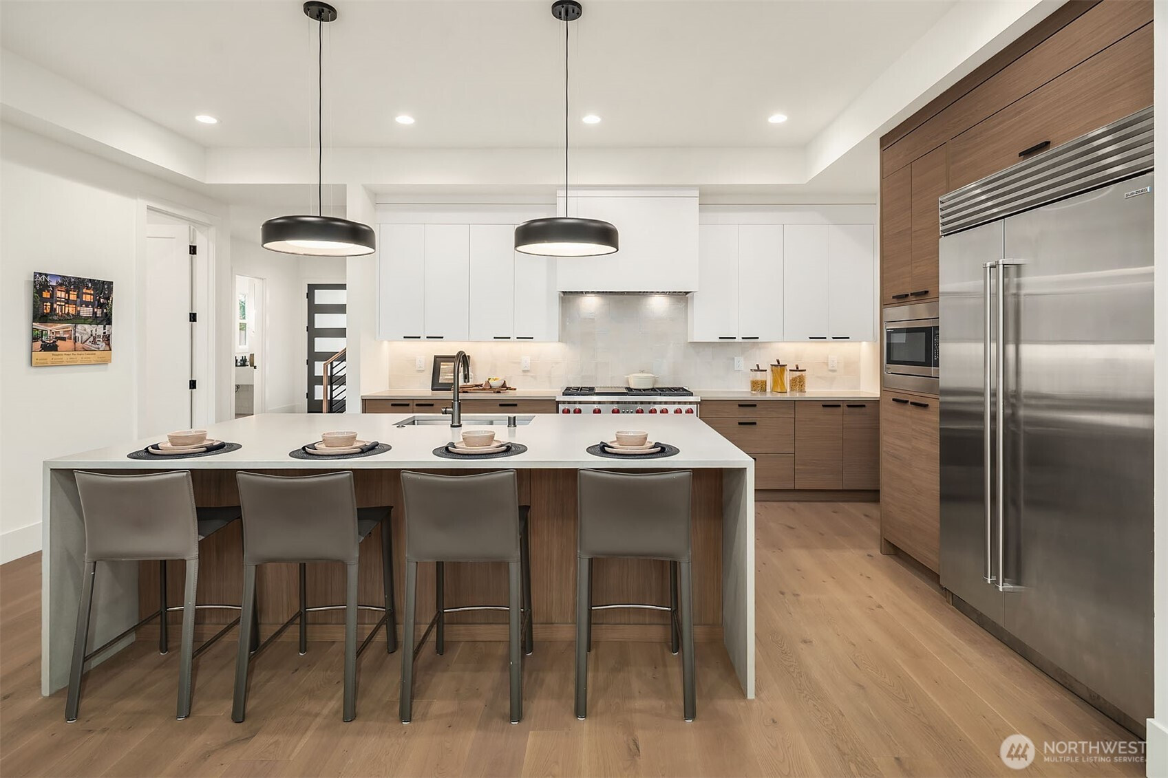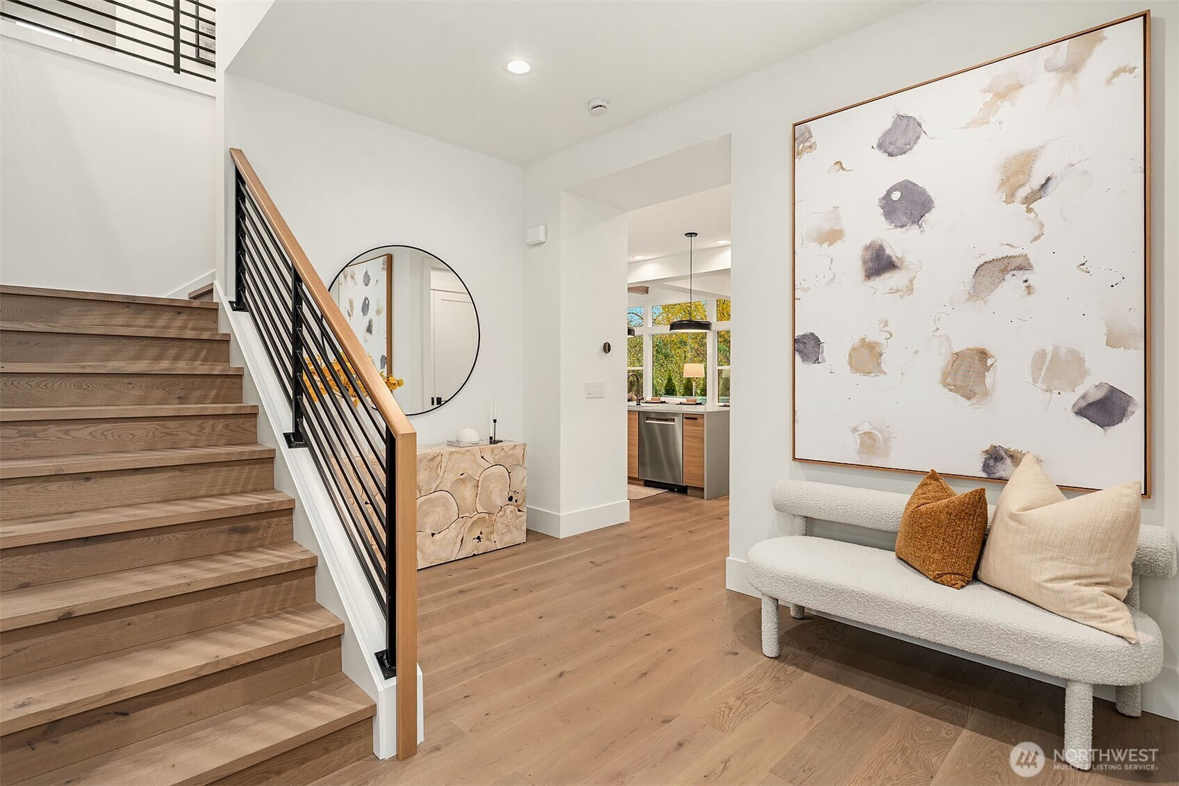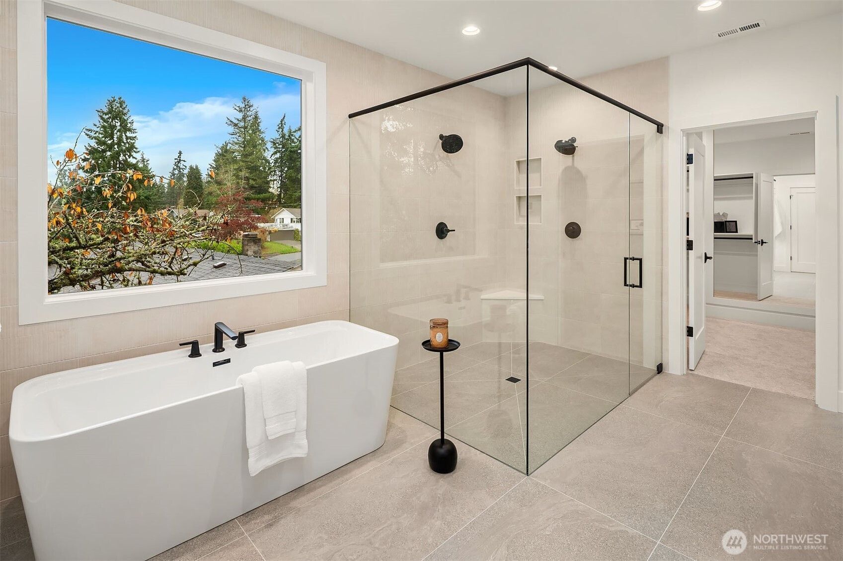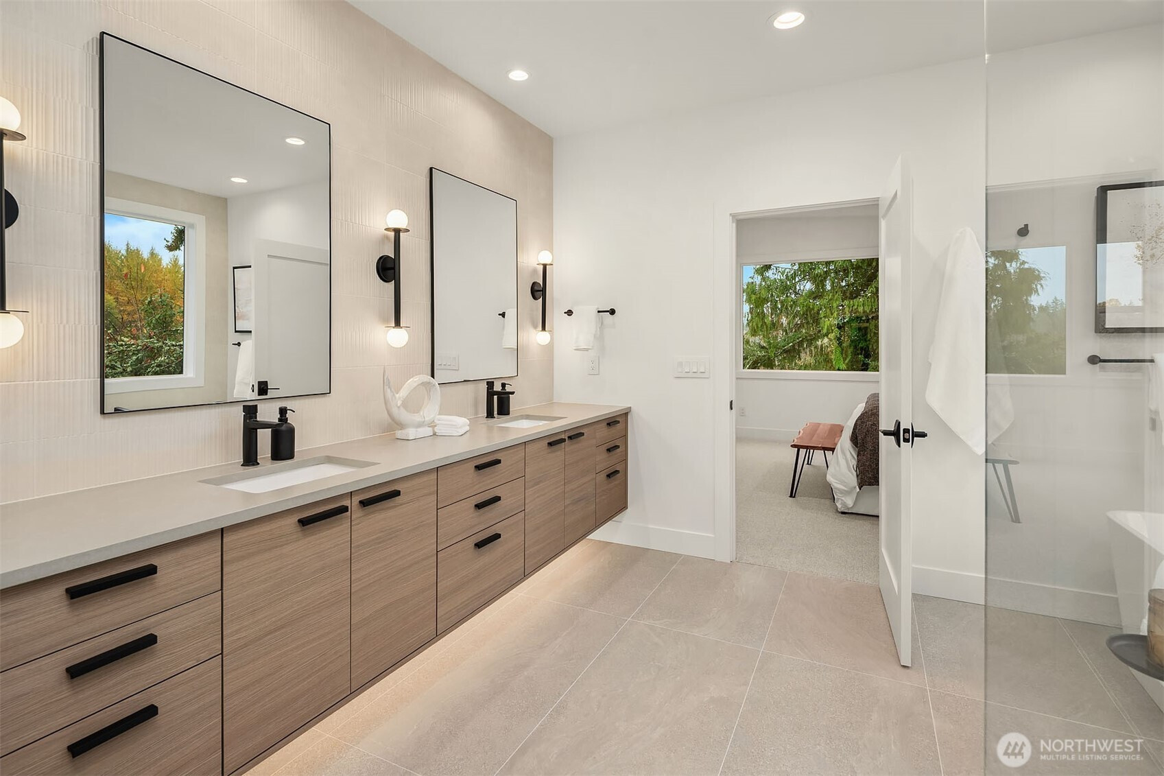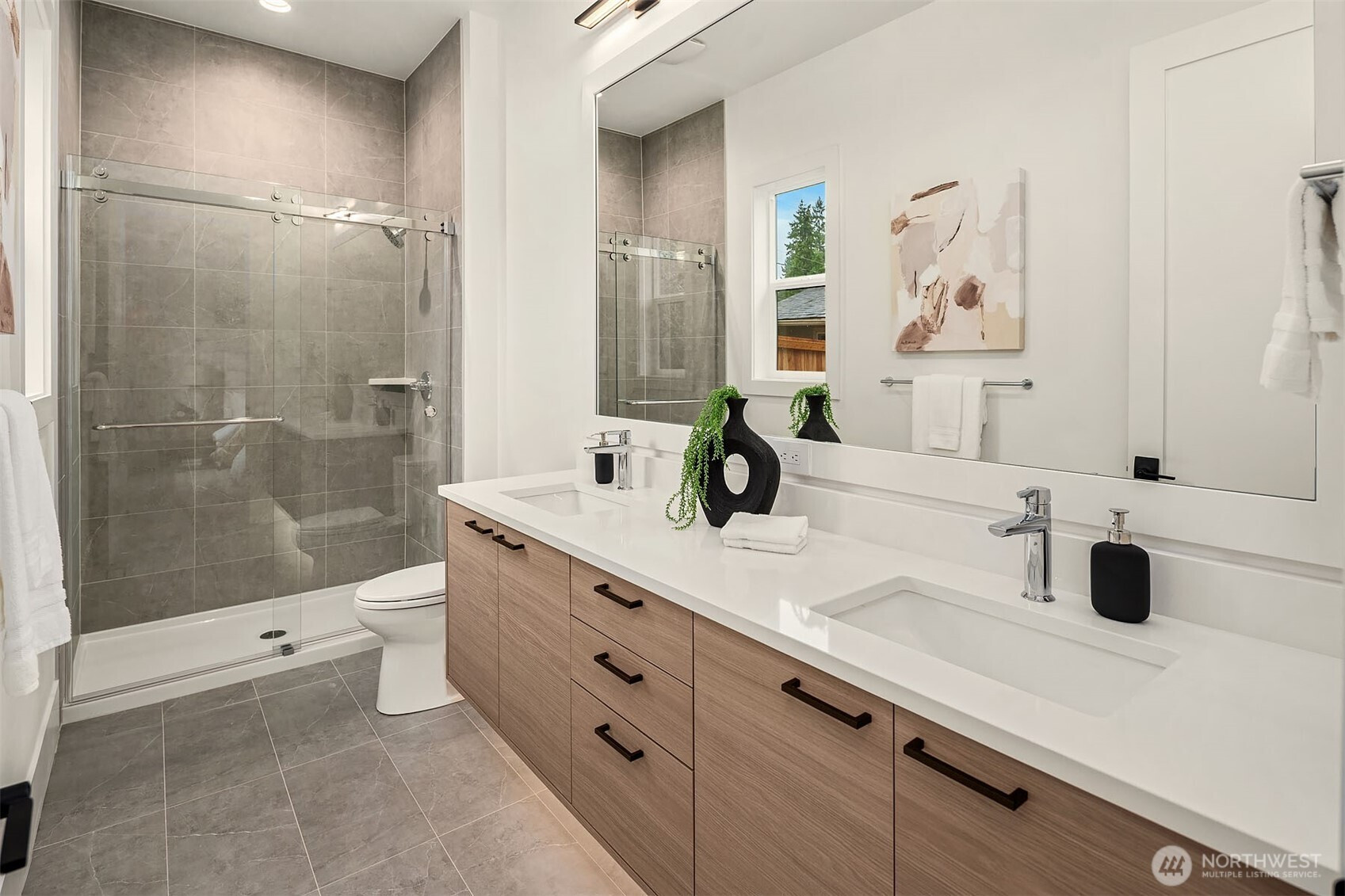 MN Custom Homes releases a transitional design in the convenient Lake Hills neighborhood. Chef's kitchen with high-end appliances and entertaining island. Vaulted great room with extensive use of windows. Secluded upstairs bonus room & covered outdoor living area are ideal for entertaining fun. Primary suite with heated bathroom floors & stunning 5-piece bath. Private main floor guest suite. Dedicated home office. Private backyard. East facing front door. Smart Home and green features throughout, including solar panels. Nationally ranked Bellevue Schools. Located just minutes from MSFT, shopping, trails, and parks.