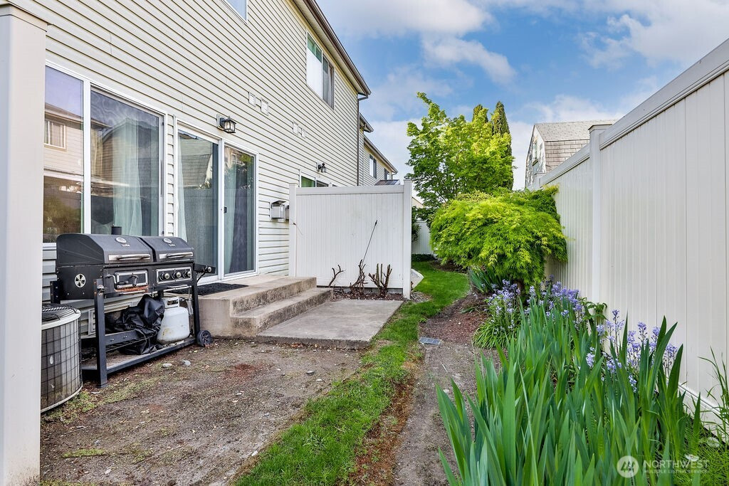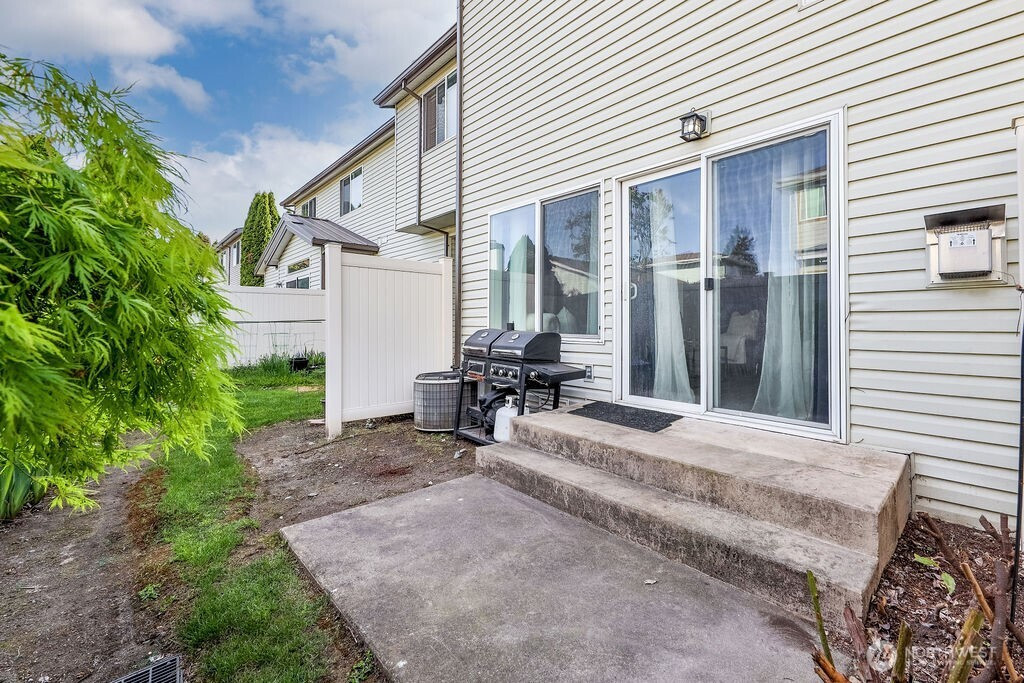 Beautifully maintained 2-bedroom, 2.5-bath townhouse in a quiet gated community, offering comfort, style, and low-maintenance living. Laminate plank flooring runs throughout the main level, creating a warm and cohesive feel. The living room features a gas fireplace, while A/C keeps the home comfortable year-round. Sliding glass doors open to a private patio, ideal for relaxing or entertaining. The kitchen is designed for both function and gathering, featuring white cabinetry, slab countertops, stainless steel appliances, gas cooktop, peninsula with eating bar, and a generous pantry. Full-size washer and dryer with additional storage included. Upstairs, enjoy brand new carpet and two spacious primary suites, each with its own full en-suite bath, offering privacy and flexibility. A main-level powder room adds convenience. Attached one-car garage provides parking and storage, with additional ample guest parking available throughout the community. Low HOA dues include water, sewer, and garbage, making for an easy ownership experience. Conveniently located near everyday amenities and commuter routes