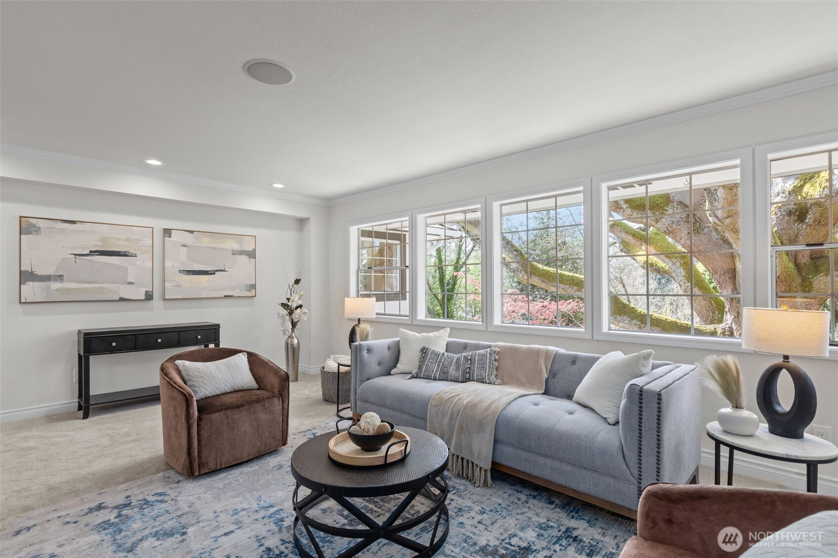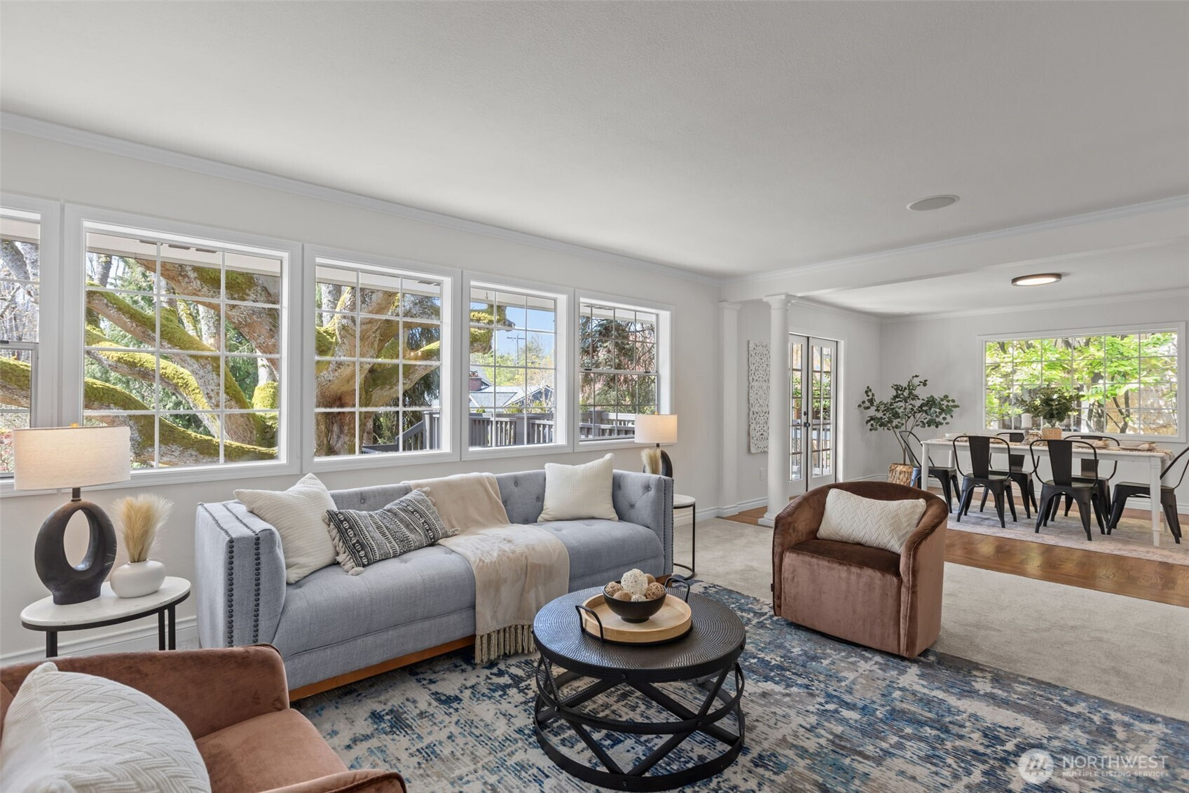 Rare double-lot turnkey home in the heart of Laurelhurst! This meticulously updated 4 bed, 2.75 bath rambler with a daylight basement offers the perfect blend of classic Seattle charm and modern luxury. Freshly painted inside and out, the home features a light-filled main floor with a chef’s kitchen flowing seamlessly into the formal dining and living rooms. The primary suite is a true retreat, boasting a spa-like 5-piece ensuite with heated floors. A second main-floor bedroom is uniquely appointed with a cozy fireplace and easy access to the updated full hallway bath. The lower level expands your living space with two large bedrooms, an updated ¾ bath and a spacious rec room for media, play, or a home gym. The outdoor space is unmatched: expansive grounds anchored by a grand Scarlet Oak that provides a canopy of shade in the summer and a breathtaking display of color in the autumn. Enjoy morning coffee on the back deck and let pets roam in the fenced-in portion of the yard. An oversized, detached, two-car garage sits conveniently off the alley, with easy access to a dedicated mudroom. Best of all, this property is Laurelhurst Beach Club eligible, with private waterfront access, docks, and a premier community lifestyle. Don't miss this rare opportunity to own in one of Seattle’s most storied neighborhoods.